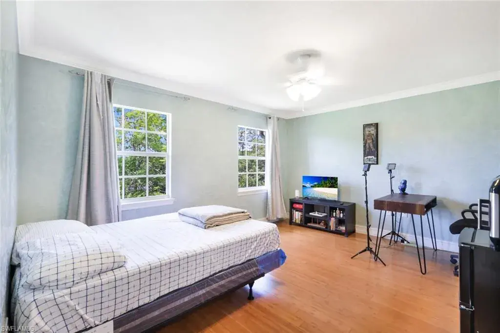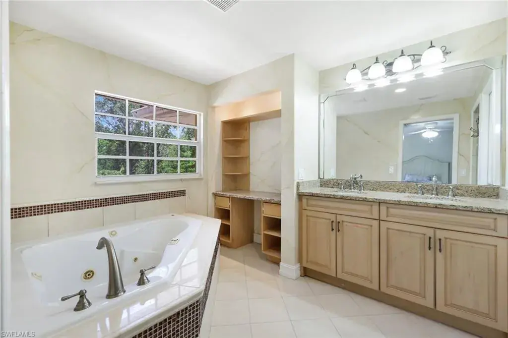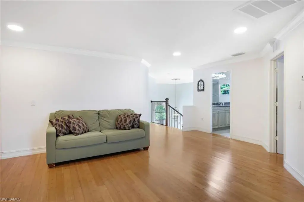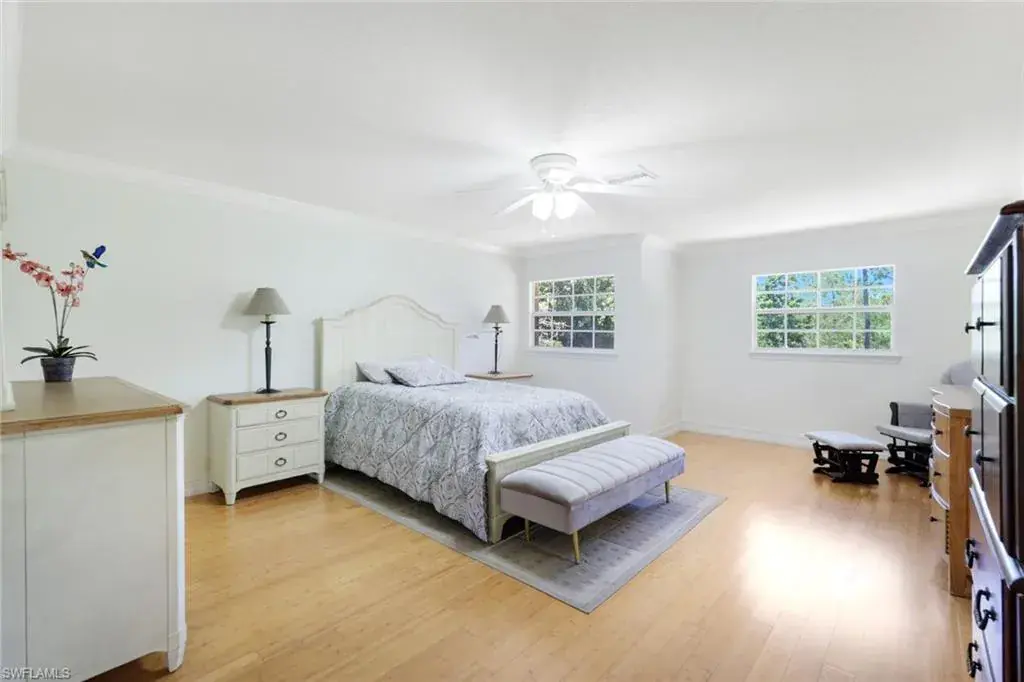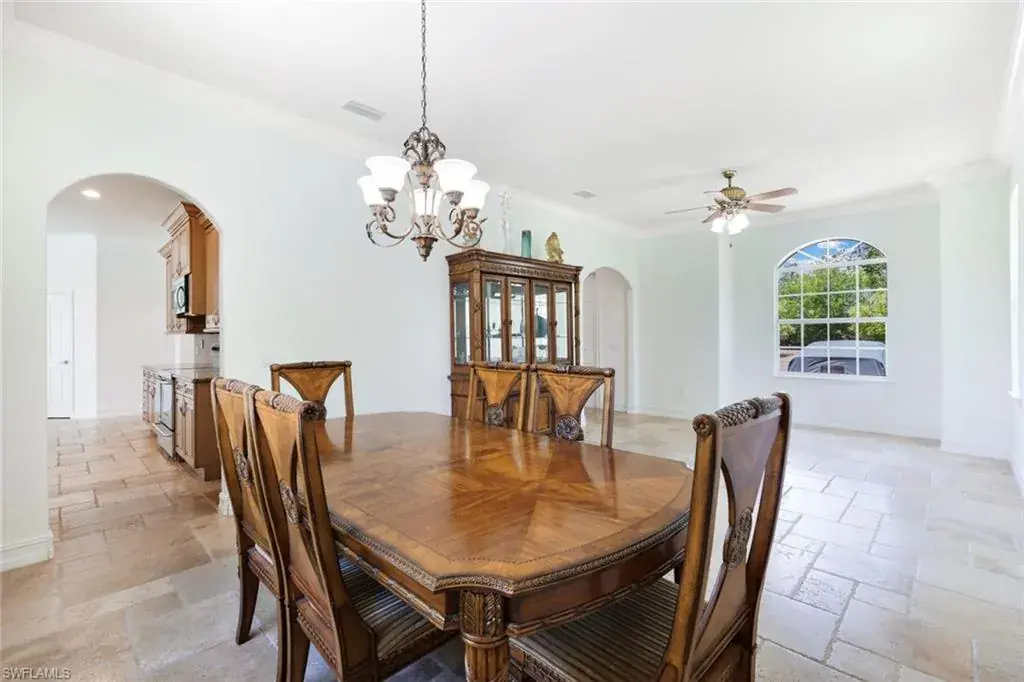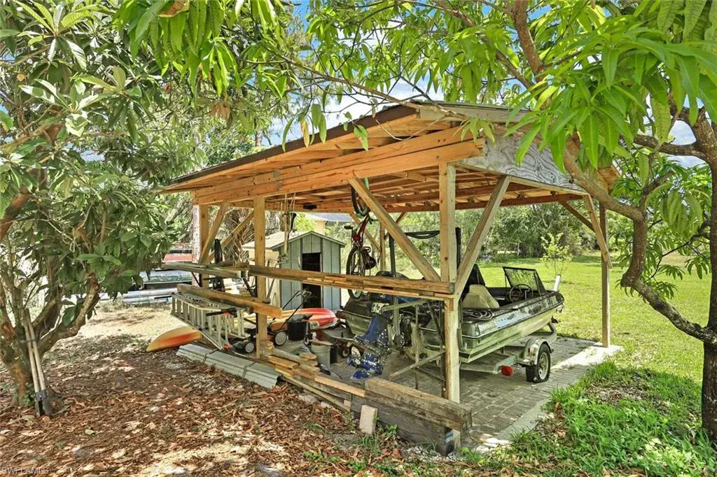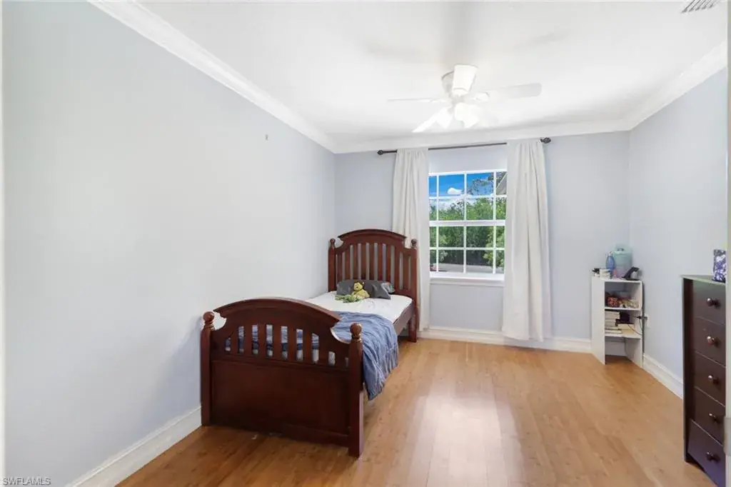 Large Estate in the Heart of Naples | This two-story residence sits on nearly three acres of land (100% Uplands); which includes over 240 feet of canal water frontage for those who enjoy boating or fishing. Upon arrival you are greeted by a large circular driveway (5,000+ sq. ft. of brick pavers) surrounded by numerous types of trees and fruit plants, including: mango, coconut, lemon, avocado, tangerine, tamarind, plum (ciruela), almond, guaba, eucalyptus, and tabebuia trees. As you enter the double-door front entrance you are in the grand foyer with an iron, wood, and travertine spiral staircase, the family room and formal dining area to your left and den/office to your right. The entire first floor features french pattern travertine flooring, 9′ 9″ ceilings, and crown molding. The kitchen has plenty of storage and granite countertop space, stainless steel appliances, and is perfectly located between the dining area and eat-in breakfast area. There is a walk-in pantry with wood shelving. There are plenty of windows to let in as much light as you want. The living room is spacious and perfect for entertaining. There is easy access to a full bathroom from the living room. The laundry room is large, with granite countertops, plenty of storage space and a sink. You can also access the garage from this hallway. The floor has epoxy coating and for those who like to work in the garage, and outside, you will love the half-bath inside the garage. As we go upstairs, there is a common sitting area that allows access to the master bedroom and bath, an ensuite, two additional bedrooms, and a full bathroom. The master easily allows for a king bed, nightstands, and chest. There is a walk-in closet and the bathroom has double sinks, a shower, and a jetted tub. The ensuite has a walk-in closet and an attached bathroom with gorgeous travertine shower walls. Two additional guest bedrooms share a full bathroom with dual sinks. The upstairs area also includes crown molding. As we head back outside there is over 700 sq. ft. of concrete padding to set up your dream outdoor entertainment area. The front and rear irrigation is sourced from the canal with a pump system inside a shed, for protection from the rain and sun. You also will love the covered concrete pad for additional storage. There are two HVAC systems for downstairs and upstairs as well as a tankless water-heater. The ground-level windows have manual hurricane protection and the upstairs windows have accordion shutters. All of this can be yours within the very peaceful and private Safe Harbor gates. There are only nine lots, eight homes, that were carved out of the surrounding Golden Gate Estates lots. Every lot here is over two acres and this property is the largest one! This is the lowest priced home in Collier County on over 2.75 acres, with over 3,200 sq. ft. of living area, west of Wilson Blvd.