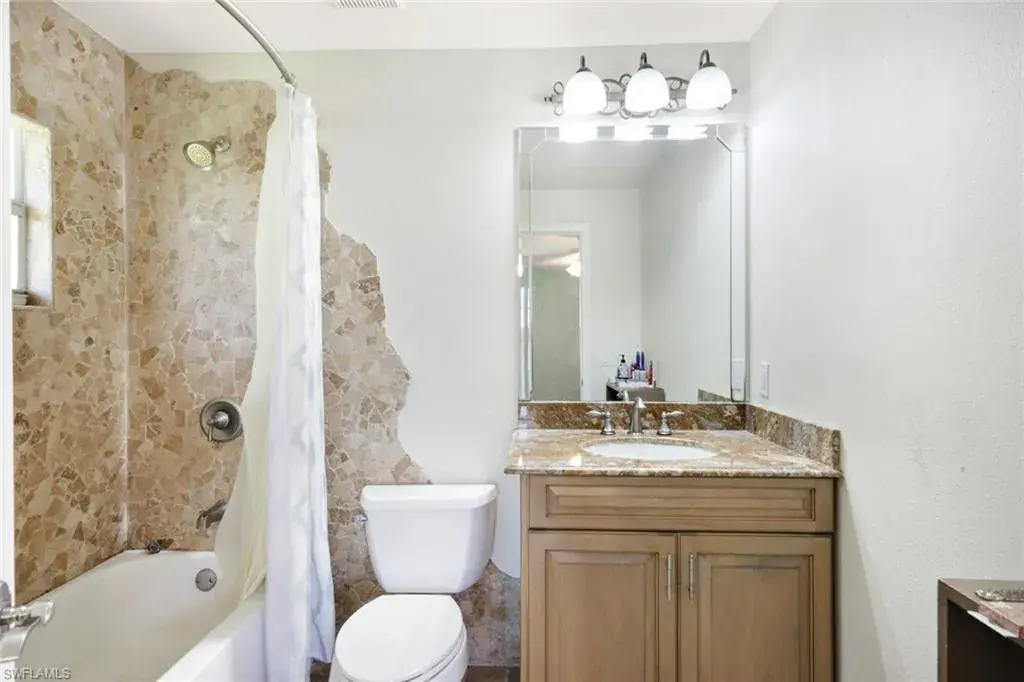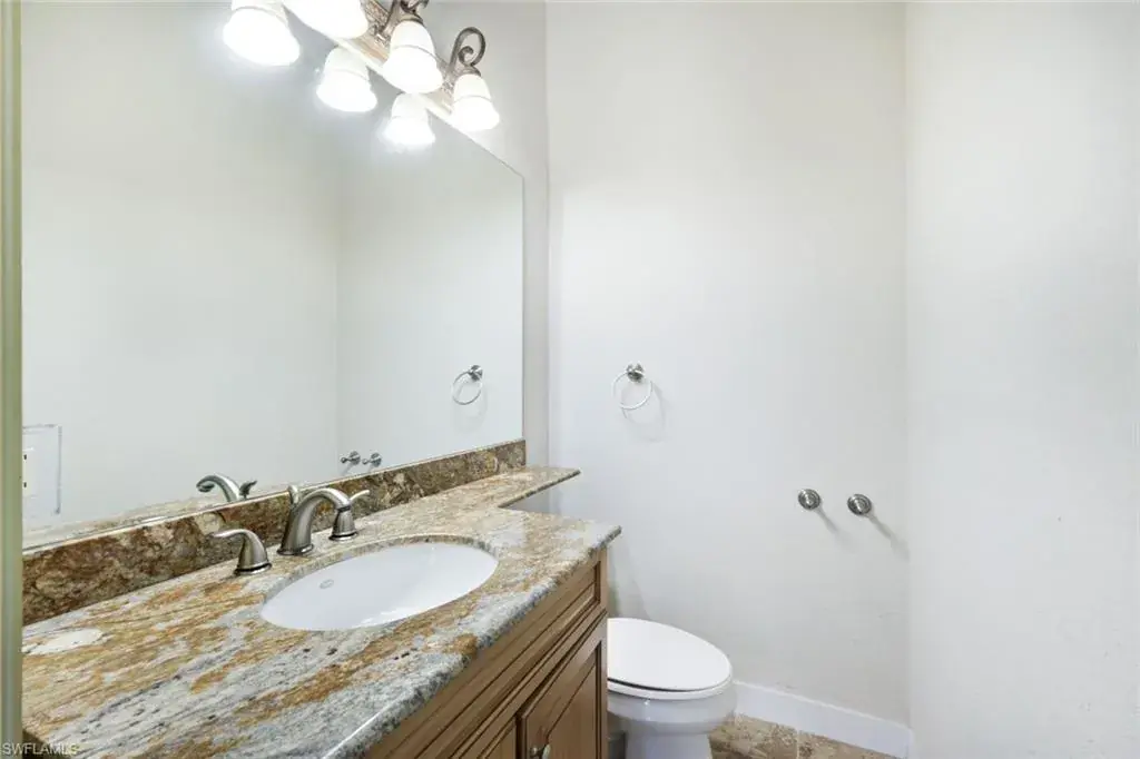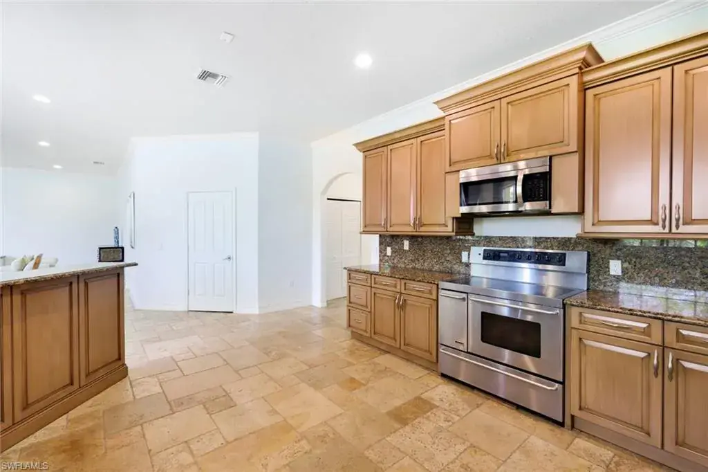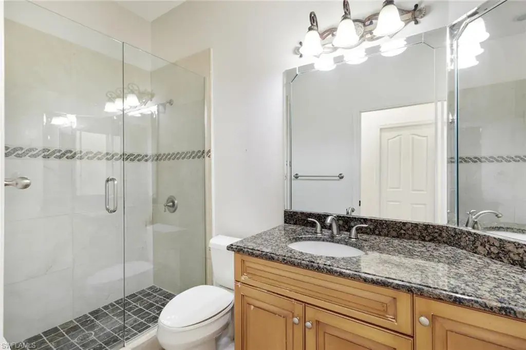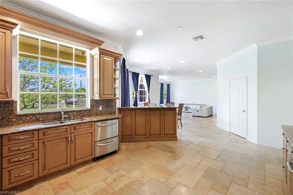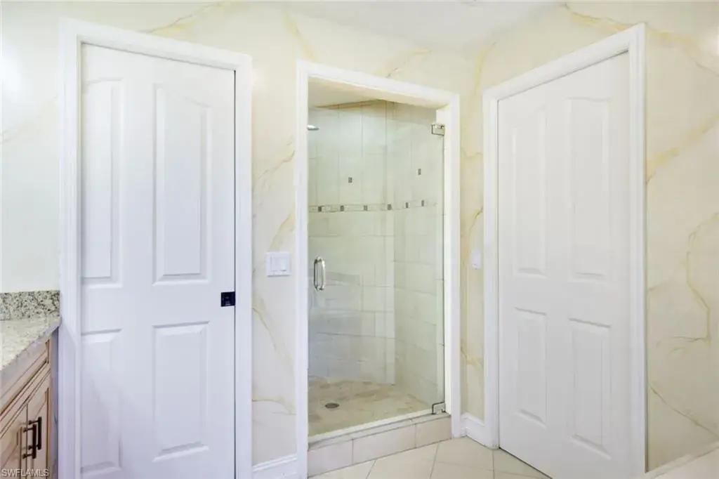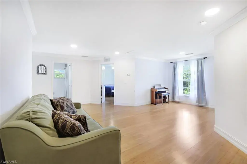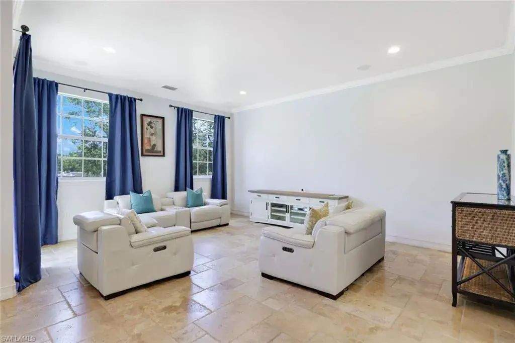 Large Estate in the Heart of Naples | This two-story residence sits on nearly three acres of land (100% Uplands); which includes over 240 feet of canal water frontage for those who enjoy boating or fishing. Upon arrival you are greeted by a large circular driveway (5,000+ sq. ft. of brick pavers) surrounded by numerous types of trees and fruit plants, including: mango, coconut, lemon, avocado, tangerine, tamarind, plum (ciruela), almond, guaba, eucalyptus, and tabebuia trees. As you enter the double-door front entrance you are in the grand foyer with an iron, wood, and travertine spiral staircase, the family room and formal dining area to your left and den/office to your right. The entire first floor features french pattern travertine flooring, 9′ 9″ ceilings, and crown molding. The kitchen has plenty of storage and granite countertop space, stainless steel appliances, and is perfectly located between the dining area and eat-in breakfast area. There is a walk-in pantry with wood shelving. There are plenty of windows to let in as much light as you want. The living room is spacious and perfect for entertaining. There is easy access to a full bathroom from the living room. The laundry room is large, with granite countertops, plenty of storage space and a sink. You can also access the garage from this hallway. The floor has epoxy coating and for those who like to work in the garage, and outside, you will love the half-bath inside the garage. As we go upstairs, there is a common sitting area that allows access to the master bedroom and bath, an ensuite, two additional bedrooms, and a full bathroom. The master easily allows for a king bed, nightstands, and chest. There is a walk-in closet and the bathroom has double sinks, a shower, and a jetted tub. The ensuite has a walk-in closet and an attached bathroom with gorgeous travertine shower walls. Two additional guest bedrooms share a full bathroom with dual sinks. The upstairs area also includes crown molding. As we head back outside there is over 700 sq. ft. of concrete padding to set up your dream outdoor entertainment area. The front and rear irrigation is sourced from the canal with a pump system inside a shed, for protection from the rain and sun. You also will love the covered concrete pad for additional storage. There are two HVAC systems for downstairs and upstairs as well as a tankless water-heater. The ground-level windows have manual hurricane protection and the upstairs windows have accordion shutters. All of this can be yours within the very peaceful and private Safe Harbor gates. There are only nine lots, eight homes, that were carved out of the surrounding Golden Gate Estates lots. Every lot here is over two acres and this property is the largest one! This is the lowest priced home in Collier County on over 2.75 acres, with over 3,200 sq. ft. of living area, west of Wilson Blvd.