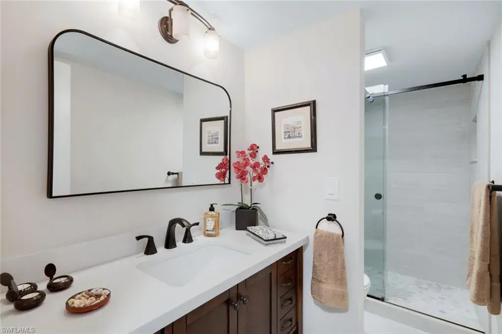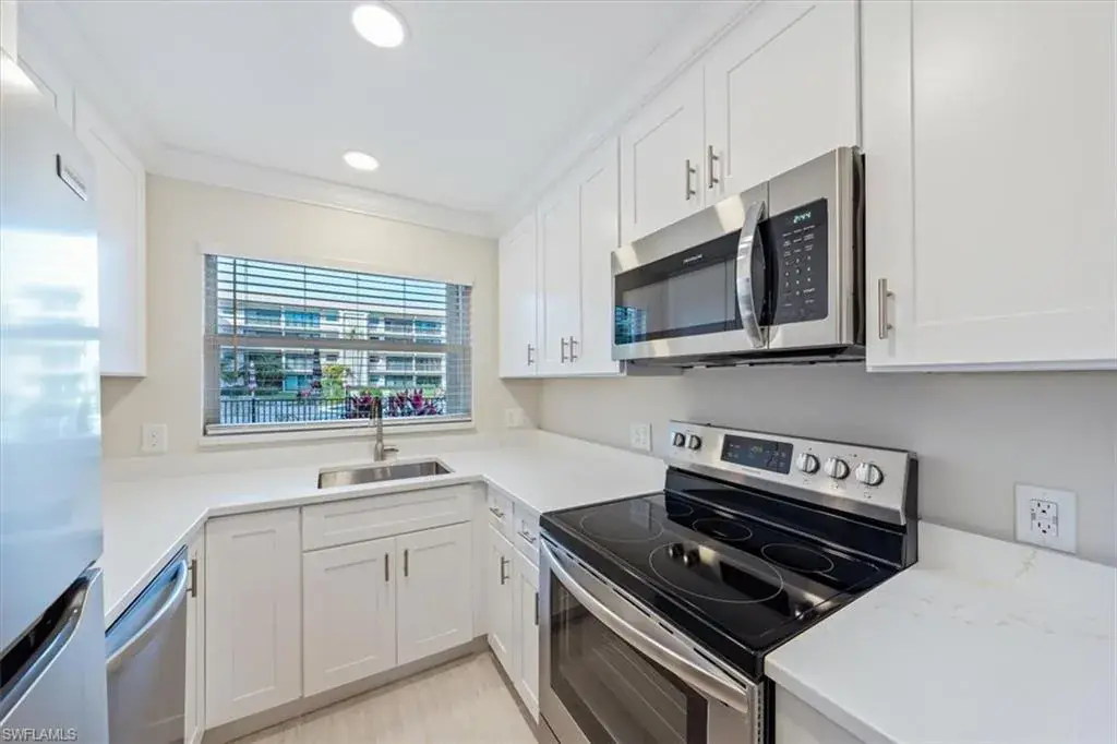 Welcome to this stunning, FULLY REMODELED two-bedroom, two-bath condo in the prestigious Coquina Club of Naples, where luxury and tranquility blend seamlessly with waterfront living. Nestled along the bay, this meticulously updated retreat offers the perfect combination of style and comfort. The BRAND-NEW kitchen showcases white shaker cabinets, quartz countertops, and state-of-the-art appliances, all complemented by upgraded tile flooring throughout. Both bathrooms have been elegantly redesigned with high-end finishes, adding a refined touch of sophistication. The bright and airy living space is designed for relaxation, with natural light streaming in and a seamless connection to the beauty of the bayfront setting. Step outside and immerse yourself in the exclusive amenities of Coquina Club, including boat slips and kayak racks for lease, a saltwater pool overlooking the bay, a scenic grilling area, a clubhouse, and an on-site manager. Additional perks such as shower facilities, extra storage, and a designated covered parking space ensure effortless coastal living. Perfectly situated on the bay, this exquisite condo is just a short stroll from Naples’ white-sand beaches, upscale dining and shopping at Venetian Village, Waterside Shops, and a variety of entertainment options. Whether you seek relaxation or an active coastal lifestyle, this residence offers the perfect blend of luxury, convenience, and the best of Naples’ waterfront living.