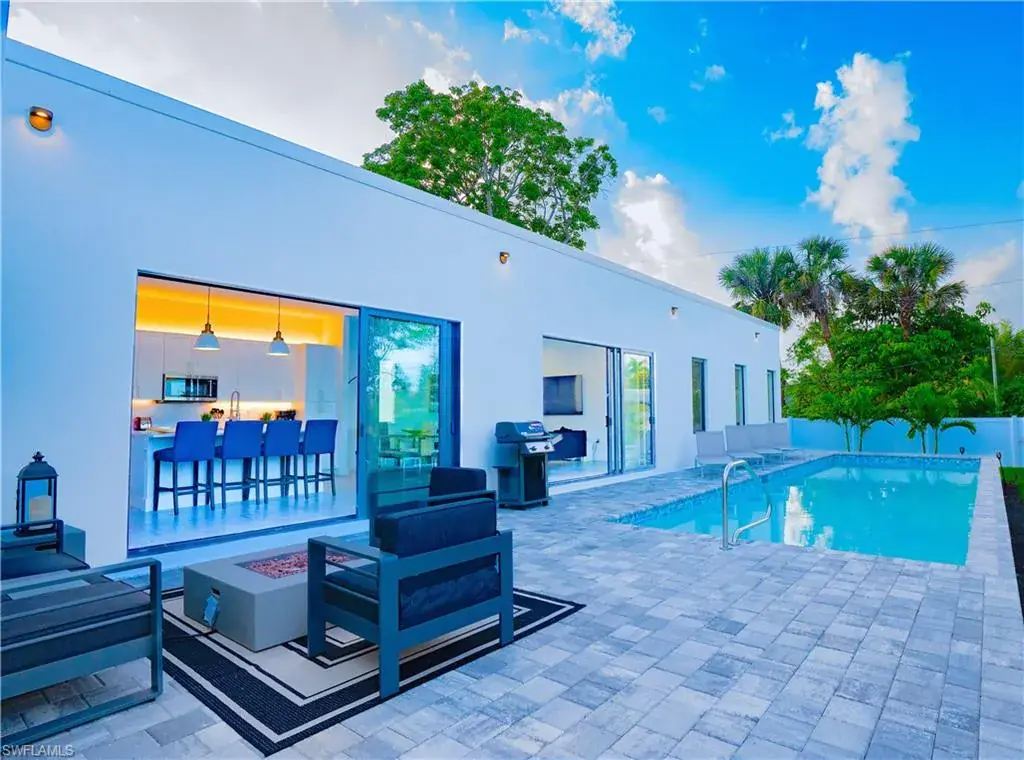 Extraordinary newly built 2023 and one of the kind, spectacular, open floor plan, modern style home with a large size heated lap pool equipped with LED lights.