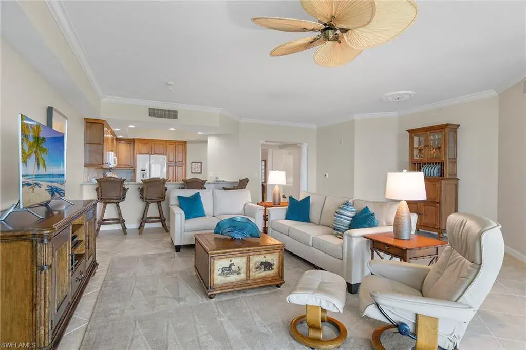 Some of the best views of Turkey Bay can be seen from this beautiful ’04 residence in the Cayman building.  The bathrooms, kitchen, interior paint, carpet, lanai screens, lighting and closet doors have all been updated. The home has never been rented and only used 2-3 months a year. Walk into the renovated baths with censored cabinet lighting and enjoy the overhead lighting in the foyer.