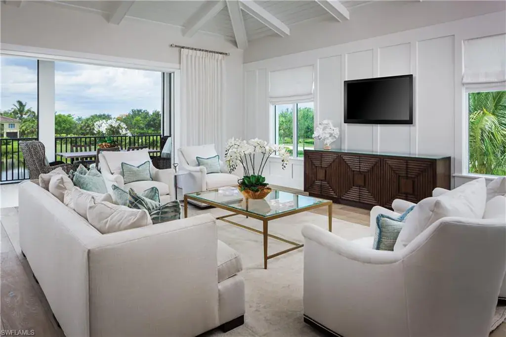 PRE-CONSTRUCTION. Luxurious coach home in Dorado at Fiddler’s Creek with coastal contemporary architecture designed exclusively for Gulf Bay Homes by MHK. Upper level Magnolia unit features include 42″ upper kitchen cabinets, oversized island, Bosch appliances, Grohe plumbing fixtures, Whirlpool laundry, Emtek door hardware, soft close cabinetry, laundry room cabinets and sink, 20″ porcelain tile, 8′ solid core doors, 8″ base molding, and numerous smart and efficient home features. Exterior offers all-concrete construction, flat profile concrete roof tile, 2-car garage with EV conduit, Marvin casement windows, private courtyard entry, covered & screened terrace with two 12′ wide center opening sliders, and lush landscaping. Dorado will offer a neighborhood pool complex. Fiddler’s Creek residents enjoy amenities that include the 54,000-square-foot Club & Spa, featuring a resort-style multi-pool complex, state-of-the-art fitness center, tennis, pickleball, and both casual and fine dining restaurants. Residents have the opportunity to join the award-winning Golf Club at Fiddler’s Creek; and the opportunity to enjoy a beach and boating lifestyle with an optional Tarpon Club membership.