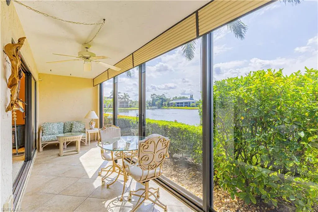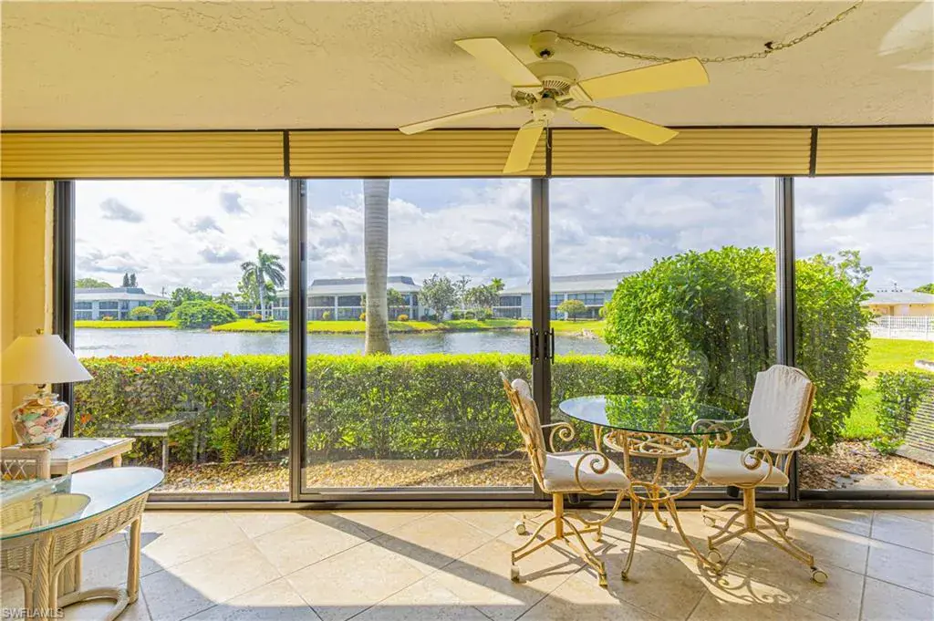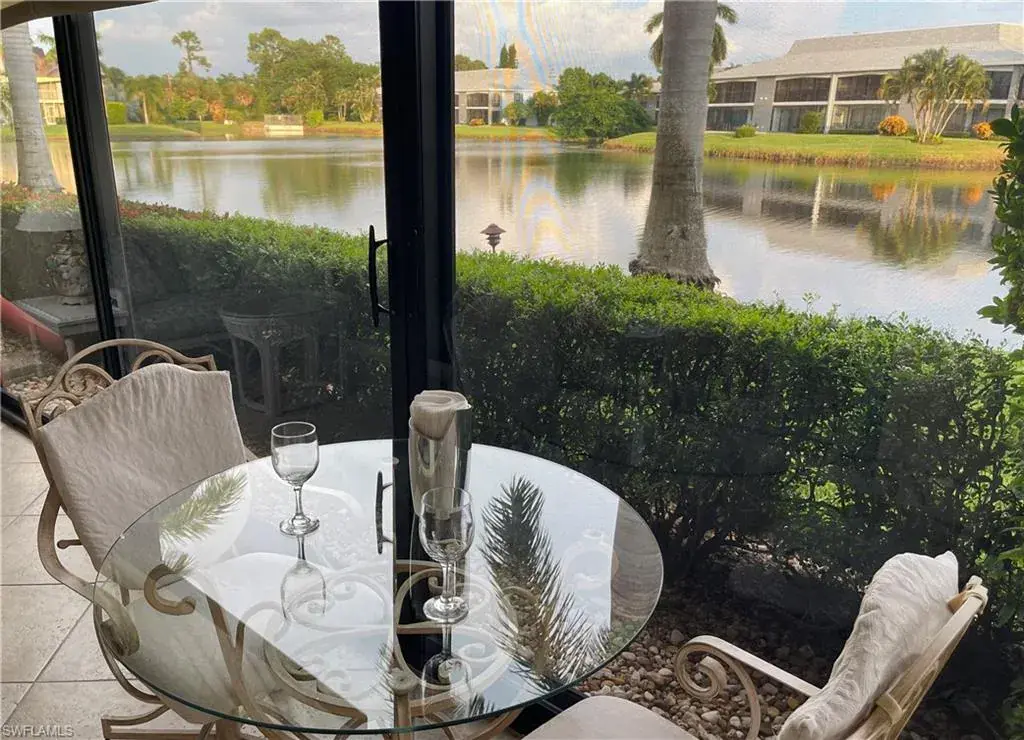 This desirable first floor condo offers fabulous views of the lake from the extended lanai and nearly every room! The condo is being sold Turnkey and has everything you will need to get started in your Paradise home! The lanai has sliders from the living space as well as impact resistant sliding doors and screens on the exterior of the lanai. This allows for extra protected living space as well as an opportunity to let the north-south breezes enter on cooler days. Additional outdoor space includes the extended patio with room for a bistro table and chairs. There is ample storage space in the customized kitchen, pantry and dry bar areas. The main living area is open-concept and spacious. The sizable owner’s suite has direct access to the lanai, and a lovely view of the lake. In addition, there is a large walk-in closet with an extensive organizational system. Nestled in a quiet neighborhood, Fountains II has beautiful grounds, a community pool and numerous social activities. In addition, the HOA covers cable and water! Fountains II is a 55+ community. The condo is conveniently located, with Hibiscus Golf Course across the street, and less than one mile to US 41 and the Shoppes at Hammock Cove with many conveniences. Fountains II is located just 5 miles to downtown Naples which is well known for the white sugar-sand beaches, fine dining and upscale shopping.