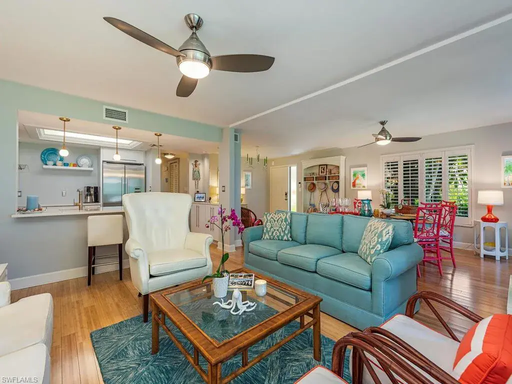 A wonderful opportunity in The Moorings offering a fully updated, turnkey, immaculate, open and airy residence with a mere 28 condominiums lending itself to a very quiet serene atmosphere. Upon entering you are greeted with a vibrant tropical take on coastal decor that’s bright and colorful with an iconic old Florida beach cottage ambiance! The outdoor screened lanai offers the perfect setting with long views of lush mature greenery complimenting the interior design perfectly! Motifs include all that is reminiscent of the ultimate beach chic retreat and is within minutes to the private Moorings pristine white sandy beach and sparkling Gulf Of Mexico! The location is the most centrally located west of 41 between the Ritz Carlton/ Mercato Shops and downtown Naples 5th Avenue! Neighboring Park Shore offers the Venetian Village and Shops at Waterside offering fine and casual dining with an abundance of boutiques and high end stores for your shopping pleasure. The location is fabulous for walking, biking, heading to the beach to enjoy a day of paddle boarding, kayaking, or simply relaxing along the shore! The Moorings Golf and Country Club is also fantastic for the golf enthusiasts.