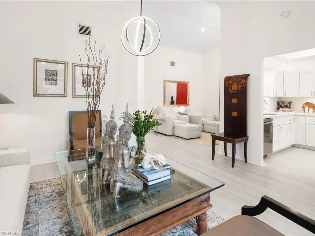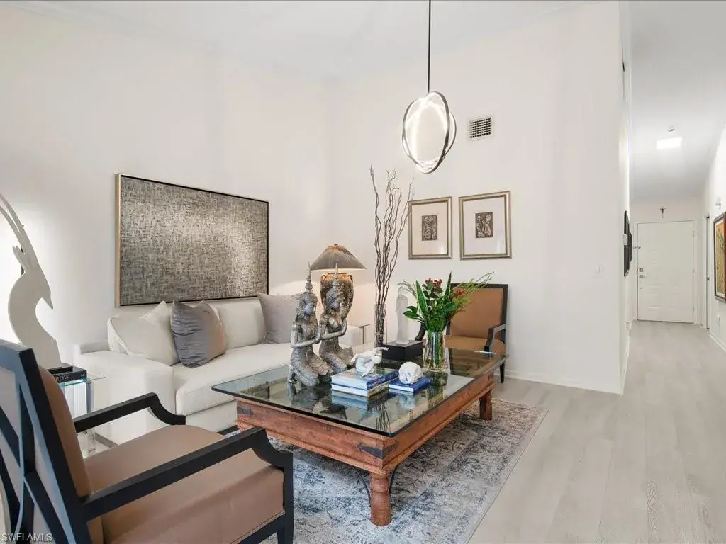 DECORATOR’S OWN HOME. This END UNIT is quite possibly the most heavily upgraded villa ever to come to market in Regent Park. Everything has been updated with no stone left unturned. There is a long list of extensive updates and high-end finishes from the gorgeous kitchen to the beautifully updated bathrooms. Also, newer appliances, HVAC, hot water heater as well as crown molding, plantation shutters, custom closets and luxury plank vinyl and wood flooring throughout. The lanai has been enclosed providing for additional air-conditioned living space and opens to a charming brick patio. There are electric storm shutters for every window as well as the rear sliders and front lanai. Security system, covered parking and extra storage. These villas live like a single-family home but without all the maintenance. The low HOA fee includes water, sewer, lawn care, irrigation, roofs and insurance, maintenance and painting of the buildings. Steps to the heated pool and owners also have use of the Regent Park Master Association pool and tennis courts. Not located in a flood zone and prime North Naples location close to everything. Pet friendly too!
