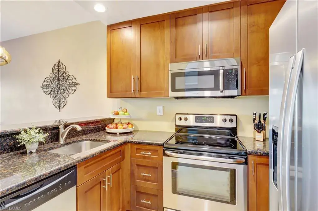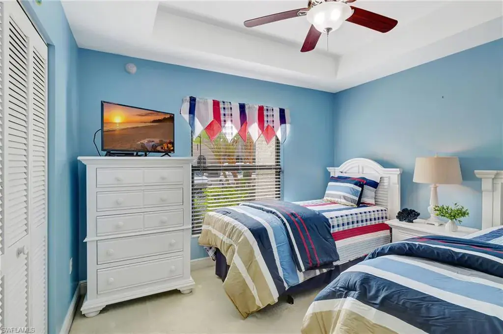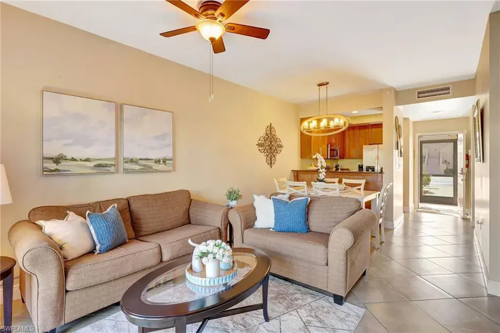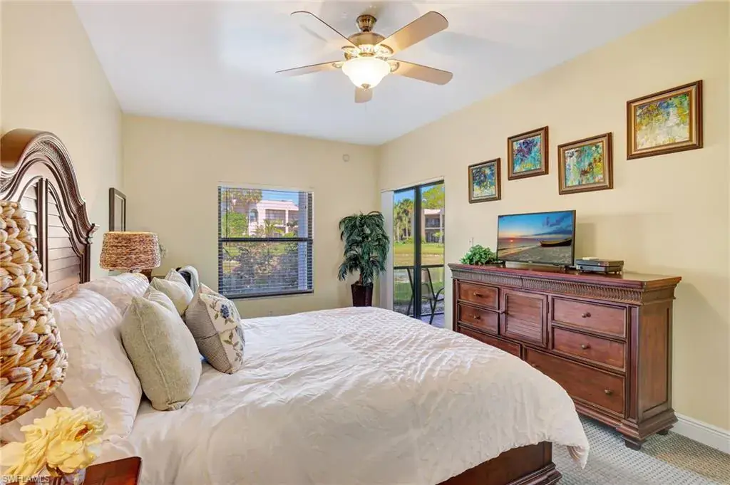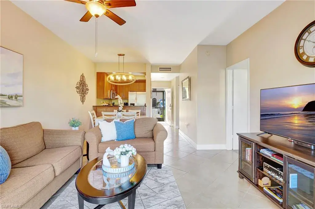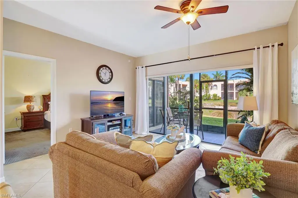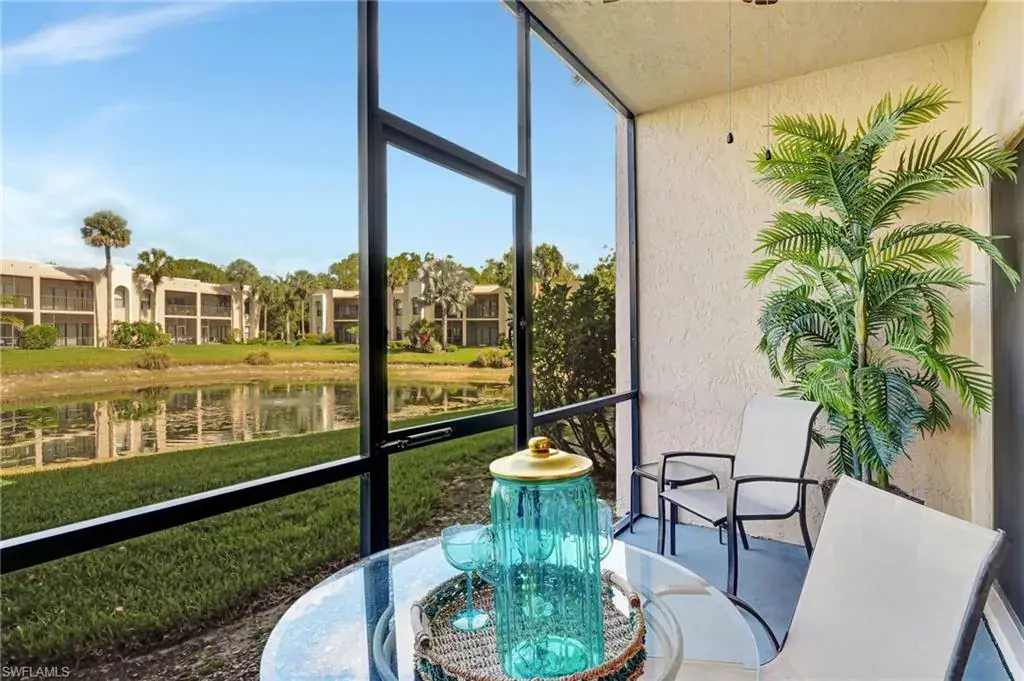 Attention tennis players, investors, and vacationers! Discover this turnkey condo nestled in the gated community of World Tennis Center, right in the heart of Naples. This charming residence features two bedrooms and two baths, offering tranquil water views from the screened lanai. Recent updates include tile flooring throughout, granite countertops in the kitchen, stainless steel appliances, shaker cabinetry, stacked washer & dryer, and a newer air conditioning unit. The home also boasts ample storage including a huge walk in closet in the primary suite, walk in closet in the guest bedroom, and an outdoor storage unit. Enjoy the convenience of your own reserved parking spot along with plenty of guest parking. This property represents an incredible investment opportunity with flexible rental policies, or it can serve as the perfect second home within a community brimming with resort-style amenities. The Club offers 14 tennis courts, 4 pickleball courts, bocce ball, two pools and hot tubs, a poolside bar and café, a fitness center, a pro shop, a clubhouse with locker rooms, private meeting rooms, a guest suite, playgrounds, basketball courts, and walking trails throughout the 82.6 acre community. Tennis is at the heart of WTC, featuring a comprehensive racket sports program that includes free clinics, private lessons, various tournaments, club teams and round-robins, exhibitions, and a tennis matchmaking service. Located just minutes from Naples’ stunning beaches, grocery stores, restaurants, and the upscale shops and dining of downtown 5th Avenue. Condo fees encompass cable, internet/Wi-Fi, irrigation water, lawn and landscape maintenance, legal/accounting services, management, exterior pest control, recreational facilities, sewer, trash removal, and water, ensuring a low-maintenance lifestyle in a prime Naples location.
