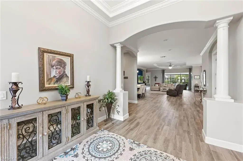 BEST VALUE IN OYSTER HARBOR…NOW PRICED AT $526.40 PER SQUARE FOOT! This Beautiful WATERFONT Home is Located in a Private Cul-de-Sac on an Oversized 1/4 Acre Lot with Water views, and a 12×26 Swimming Pool. This Spacious Home is the PALLAZIO Model with 2954 Square Feet built by Taylor Morrison. The CDD Capital Balance IS PAID IN FULL which will SAVE approximately $2700 PER YEAR as compared to the other houses for sale in OYSTER HARBOR. Custom White Kitchen Cabinets with High Level Quartz Countertops and High End GE Monogram Appliances. Neutral Wood Grained Ceramic Tiles in All main Areas of the Home, 3 Bedrooms, 3 Bathrooms and an Office with Glass French Doors. The Garage was Extended by 4 Feet for Extra Space. The SCREENED LANAI features an OUTDOOR KITCHEN including Bar Seating, which is Very Private and Secluded. Enjoy Resort Living within the Famous Fiddler’s Creek Community. The Unique Community Offers Optional Golf,