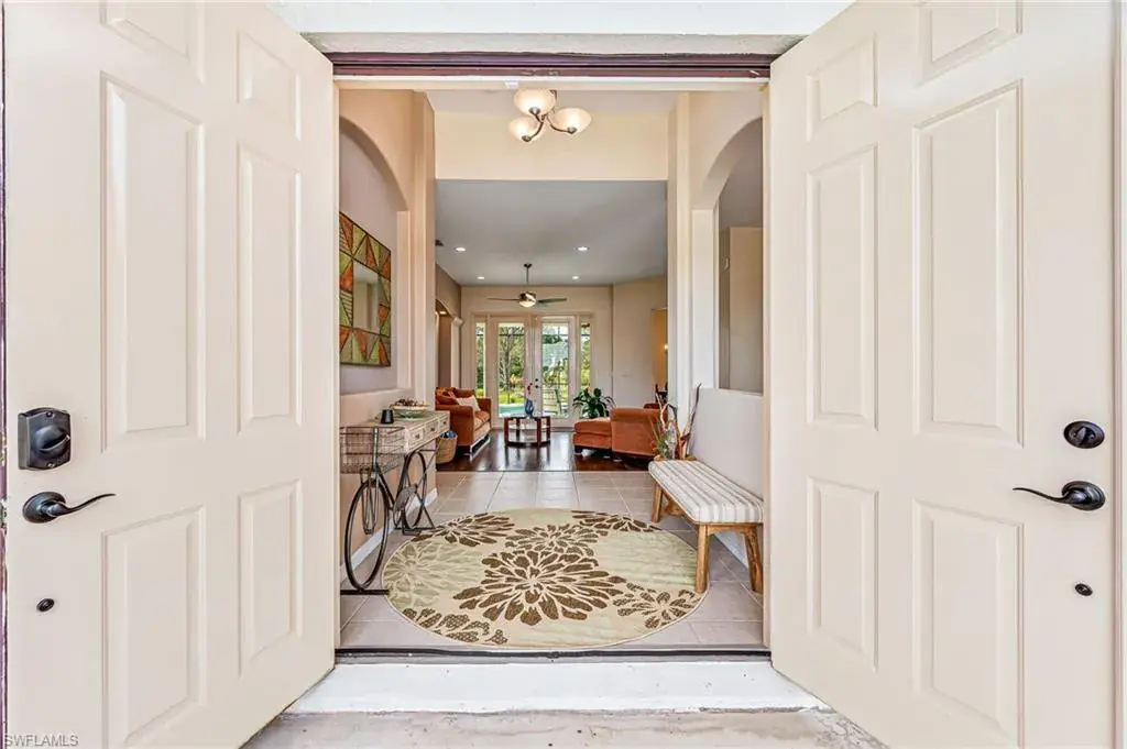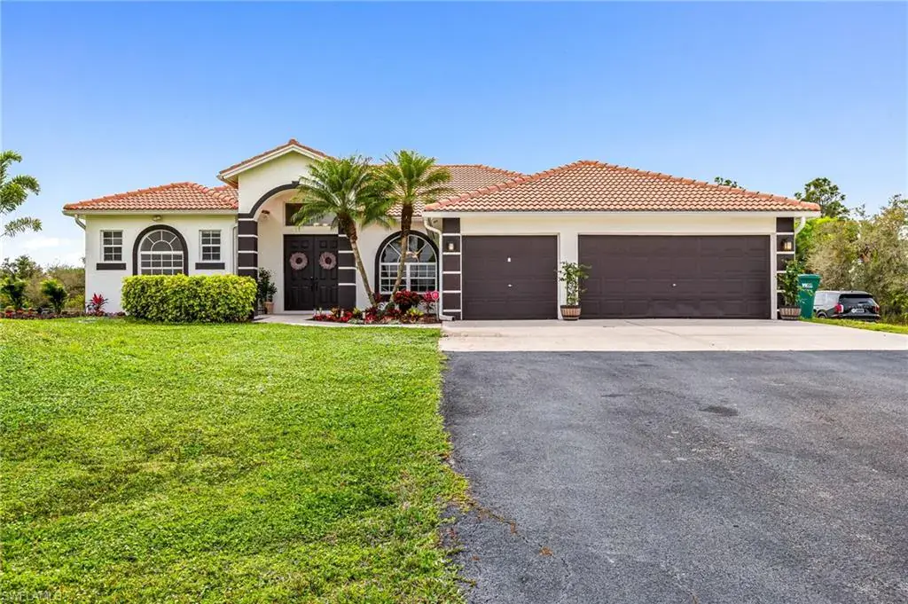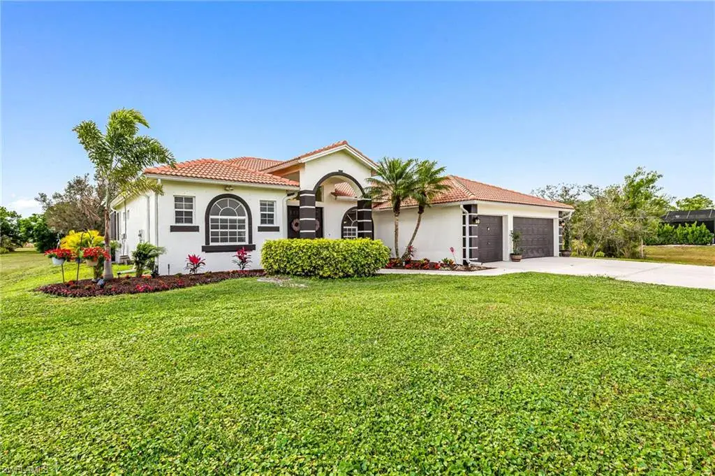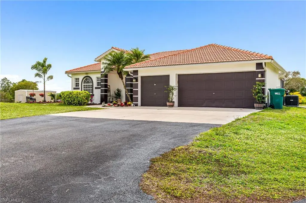 Nestled within the burgeoning enclave of Golden Gate Estates, this expansive four-bedroom abode stands as a beacon of contemporary luxury. Situated amidst a street adorned with picturesque homes, its grandeur is immediately apparent. Boasting a three-car attached garage and paved side driveway, ample space is provided for RV or boat parking, catering to the adventurous spirit. Inside, a sleek stainless steel appliance package gleams in the modern kitchen, while the tranquility of impact windows and manual storm shutters ensure peace of mind during inclement weather. Outside, a shimmering pool beckons with a variable speed pump, offering a respite from the Florida sun, while the 2019 AC system maintains comfort within. Beyond the manicured lawn lies a serene pond teeming with fish, inviting angling enthusiasts to cast their lines and bask in the beauty of Nature’s bounty. This resplendent residence seamlessly blends luxury and functionality, promising a lifestyle of unparalleled refinement.