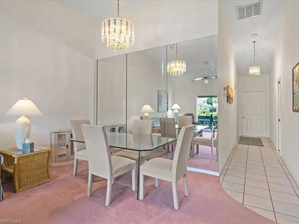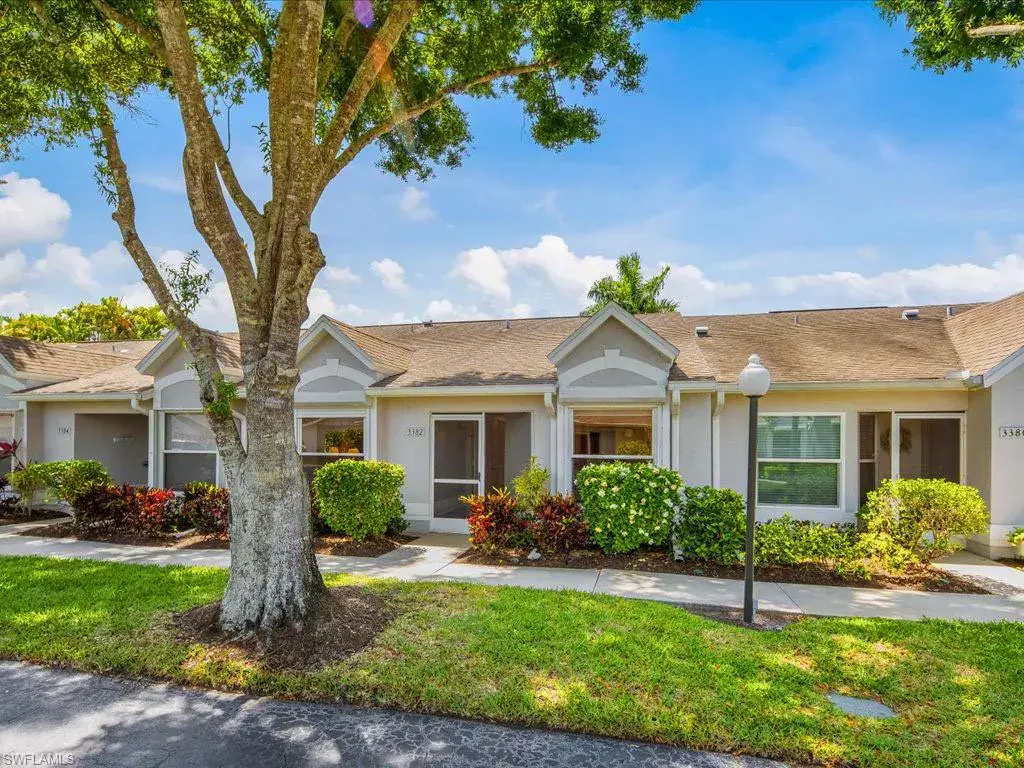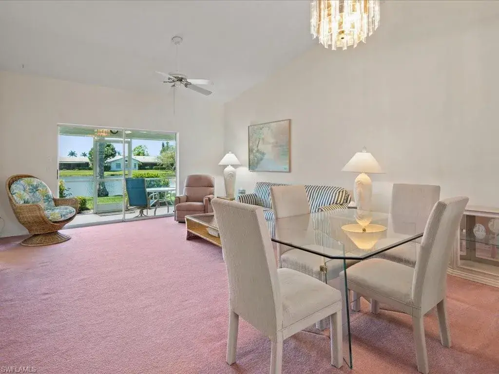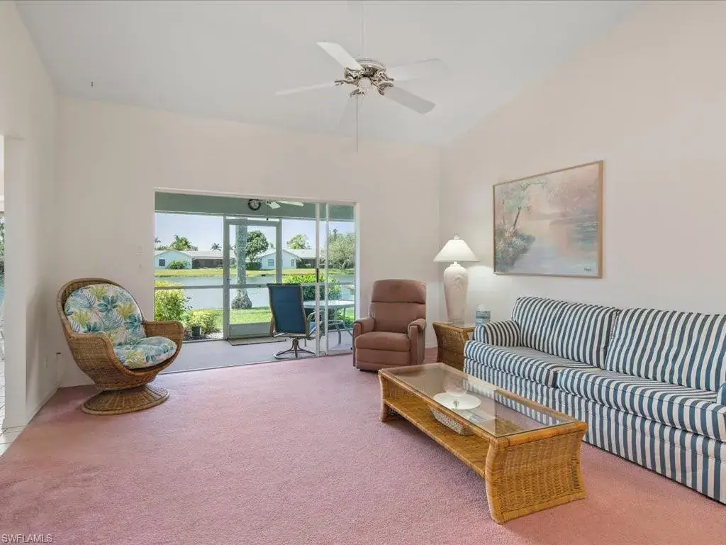 RARELY AVAILABLE DIRECT LAKEFRONT VILLA IN REGENT PARK NORTH NAPLES. It has been over three years since a DIRECT facing lakefront villa unit has come to the market in this unique, low-density community. This 2 plus den unit has been very well maintained and is full of possibilities. It lives like a single family home without all the maintenance. Light and bright with lake views and Southern exposure. Great room with volume ceilings. Eat-in kitchen as well as formal dining area. Both bedrooms have walk-in closets, window seats and direct access to a full bath. New in the past two years: water heater, garbage disposal, two king size beds and toilets. The low HOA fee includes water, sewer, lawn care, irrigation, insurance on the building as well as use of three pools. There’s also a lighted tennis/basketball court. Never any flooding and there are electric shutters on the lanai and front windows as well as manual roll down shutters for the breakfast nook. Covered parking (carport space) included as well as extra storage. Pet friendly and gas BBQ grills are allowed.