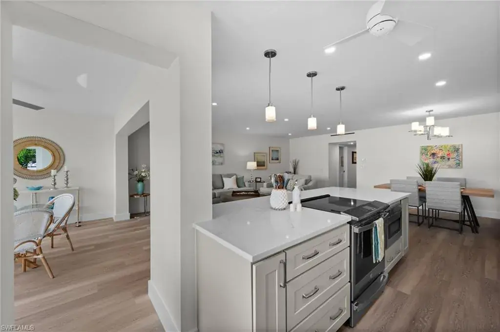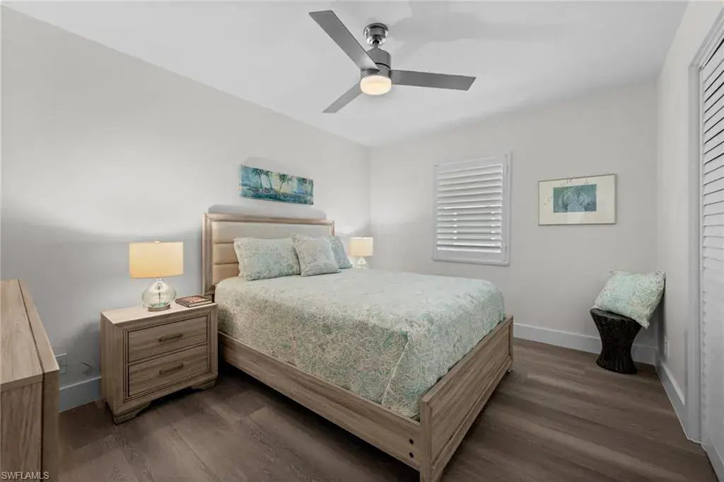 This rarely available, completely renovated 3-bedroom residence offers 1 covered parking space and the ease of a first-floor walk-out and the feel of a private single-family home. Every inch has been thoughtfully reimagined—from the concrete up—with sophisticated, coastal-inspired finishes throughout, giving it a charming coastal flare. This condo is perfect as a vacation getaway or a primary residence. Step inside to an open, light-filled layout that frames unobstructed views of Moorings Bay. The stunning kitchen features quartz countertops, a generous island with seating, top-tier stainless steel appliances, and custom cabinetry—perfect for entertaining or everyday living. The primary suite boasts dual closets and a beautifully appointed en-suite bath, while the additional bedrooms and bath provide comfort for guests. In unit laundry room adds convenience. Enjoy your morning coffee or host sunset gatherings at the waterfront pavilion just outside your door. Residents have access to Moorings Beach Park for a nominal annual fee, or you have beach access just across the street for a day on the sand, or explore the boutiques and dining at Venetian Village nearby. Located on the prestigious Gulf Shore Blvd, this is Naples waterfront living at its best—close to world-class shopping, dining, and the sparkling Gulf beaches.
