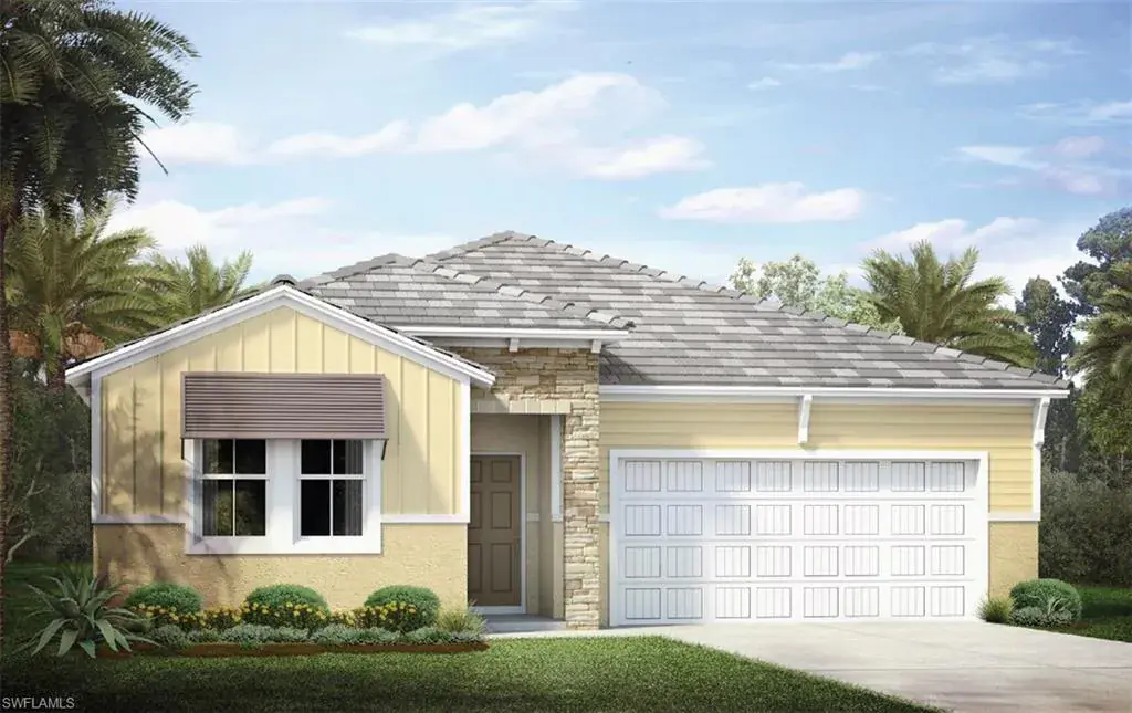 NEW CONSTRUCTION estimated completion November 2022! Highly sought-after one-story Clifton floorplan in a new GATED community. OPEN CONCEPT great room/kitchen/eating area that is perfect for everyday living & entertaining. Huge yard with ROOM FOR A POOL! This home has 3 Beds, 2 Full Baths & a 2-Car Garage! IMPACT GLASS throughout! Special features include high-end, SOFT-CLOSE cabinets with several upgrades such as wastebasket cabinet, under cabinet lighting & slide out shelves, UPGRADED faucets/hardware, single bowl kitchen sink, STAINLESS-STEEL appliances, QUARTZ counters throughout, laundry cabinet package w/sink, crown molding, UPGRADED TILE, FRAMELESS shower enclosure & more! PRIVATE heavily-landscaped yard with brand new, beautiful 12′ Fishtale Palms. Community highlights include: Beautiful Clubhouse w/Social & Game Room, Resort Style Pool, Lap Lanes, Fitness Center, 4 Pickleball Courts, 3 Bocce Ball Courts, Sidewalks on Both sides of the street, Gated Entry, 4 Lakes, Waterfall Monument Sign, Convenient to shopping, Restaurants, Stores & a Short Drive to the Beach & all that Naples and Marco Island have to offer!