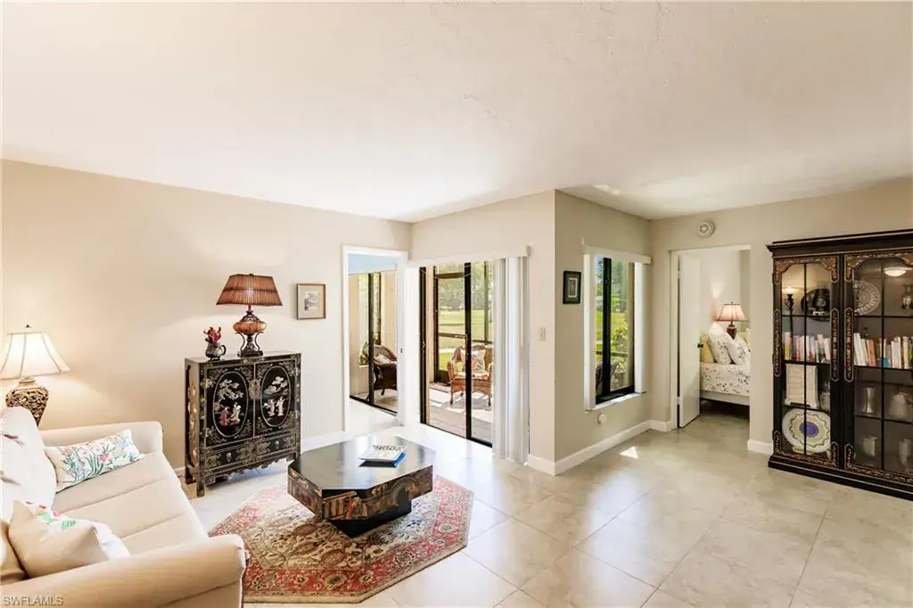 Gorgeous 2-bedroom and 2-bathroom condo in the perfect Naples Location, close to everything you could need! The unit is located on the first floor of the building on a corner and offers a beautiful screened lanai overlooking the 6th hole on this par 60 golf public golf course with an impeccable 18-hole course, built to USGA specifications with four fresh water lakes and abundant wildlife, you can walk or ride and play in 3.5 hours or less! The living room is large and comfortable with plenty of space for lounging. The dining area provides a comfortable amount of space for you to enjoy lovely dinners! Two spacious bedrooms and bathrooms and plenty of storage space inside and additional outside complete this near perfect home! Just steps away from the pool and spa with a beautiful view of the golf course. Lakewood condo has been recently updated with a new roof replaced in 2017. The condo also runs a tankless water heater 6 months old and A/C was replaced in 2017. A short walk to shopping, dining and parks such as Sugden park, East Naples Community Park for Pickleball and Baker Park and less than 5 miles drive to Naples Beaches, attractions, downtown Naples high-end shopping, and 5th avenue dining.
