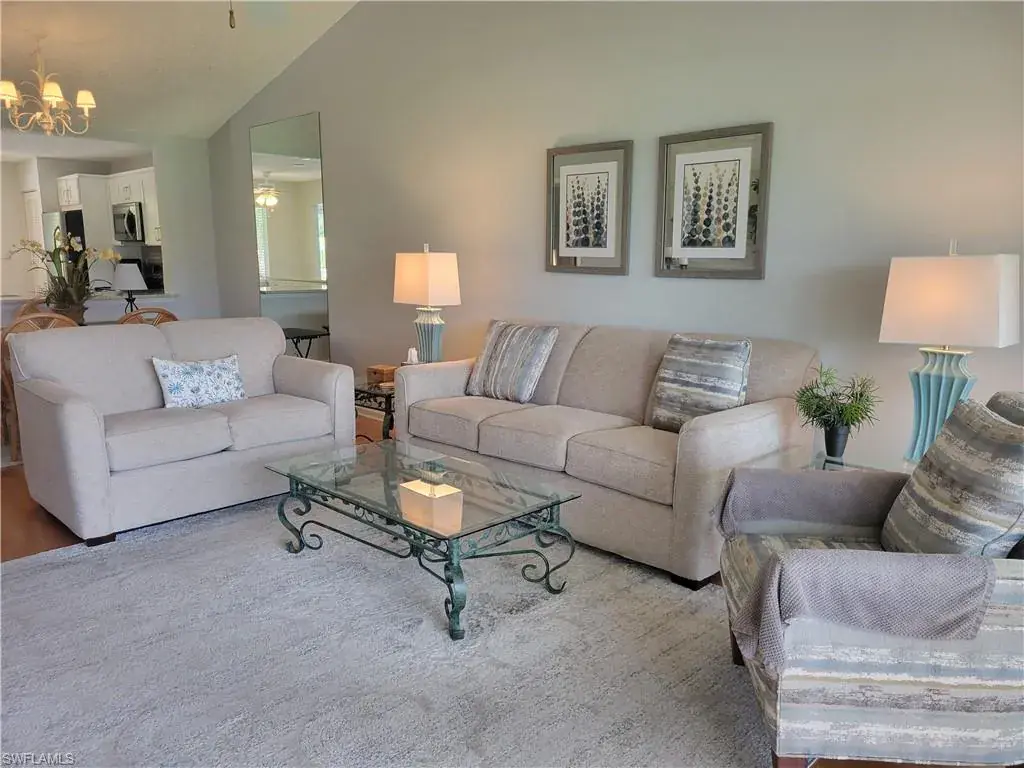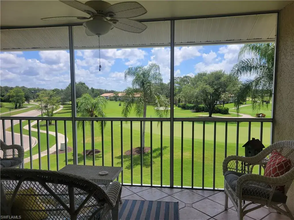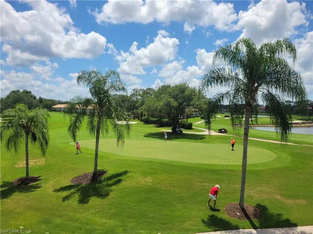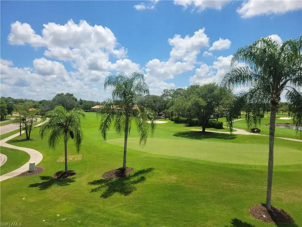 Royal Wood Golf Club-Amberly Village-One of the best views of all! Third floor condo with cathedral ceilings. Lanai with eastern exposure has water view and also overlooks several holes. 2BR/2BA. New white Shaker style cabinets with quartz counter tops, SS appliances, glass tile backsplash and recessed can lighting. Open concept in kichen. Extra bank of cabinets on wall by table. Living room features wood floor. Both baths have been updated