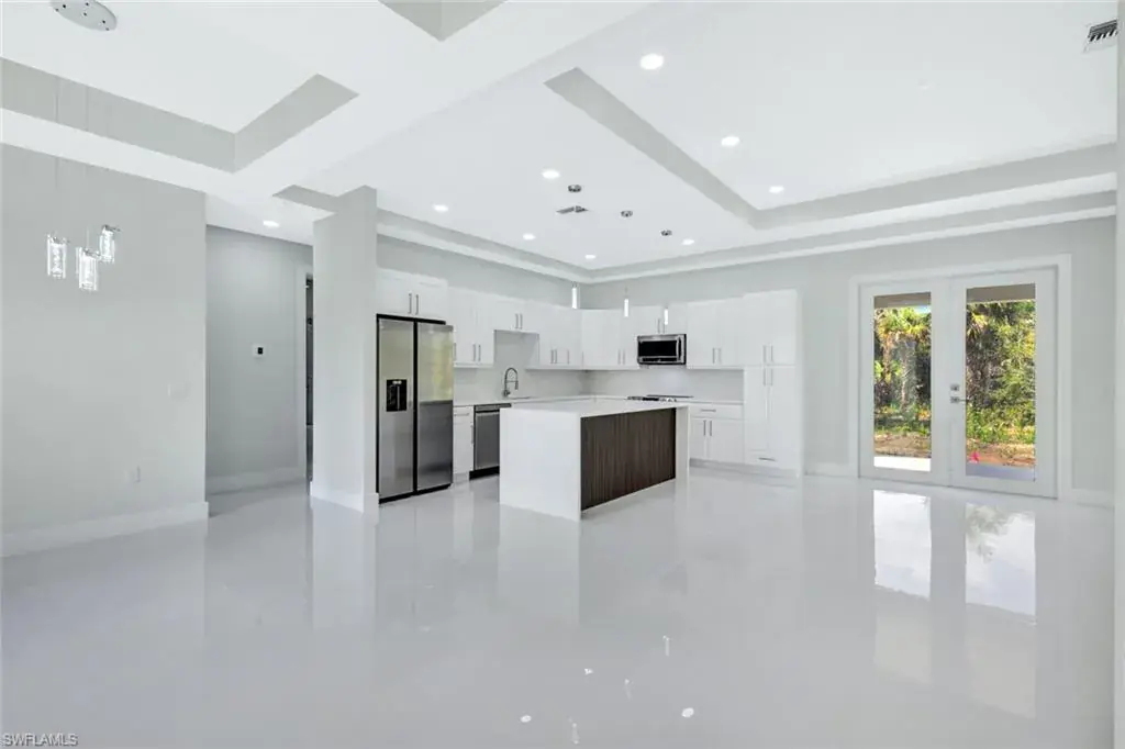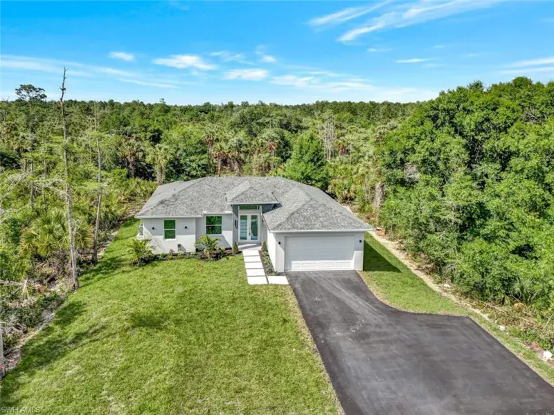 Enjoy Aurora, an outstanding home that perfectly combines comfort and luxury. This property is located at the serene Golden Gate Estates, Naples, FL. Spacious open floor plan with 3-bedroom, 2-bathroom and 2 cars garage, home features a state-of-the-art kitchen equipped with stainless steel appliances, high-quality cabinetry, quartz countertops and backsplash, and a waterfall edge island. Blending modern design with high-end finishes. Situated on 1.14 acres. The master suite offers comfort with the spacious master bathroom providing an elegant retreat with a double sink vanity and a frameless glass shower, complementing the home’s refined aesthetic. Imported oversize porcelain flooring, dual walking closets and lofty ceilings flow throughout, elevating the modern feel of the property. Outdoors, the house boasts hurricane impact windows and doors, a beautifully landscaped garden with a covered lanai. The driveway goes all the way down to the double garage entry door. Extra Space in the Driveway that serves double function making it simple to reverse in the car or as an extra parking space. This street has a dead end road which offers peace and quiet along with added safety for the family. Plenty of space to park your toys in the backyard. This house is a great choice for anyone looking for a harmonious blend of modern design and comfortable living, in the beautiful Golden Gate Estates Naples FL. This property is just what you’re looking for. Don’t miss the opportunity to own a house for only minutes away from Ave Maria University & the Naples beaches. Come see this beautiful property. Make this your dream home now. The builder has more homes being built at this time.