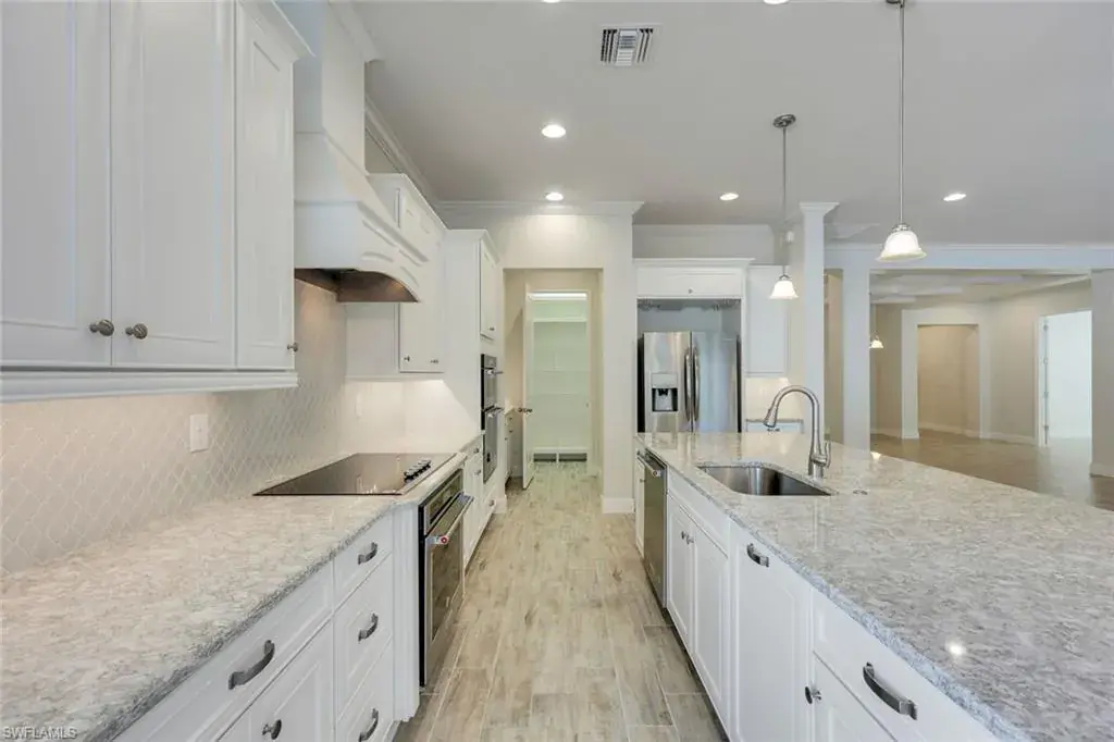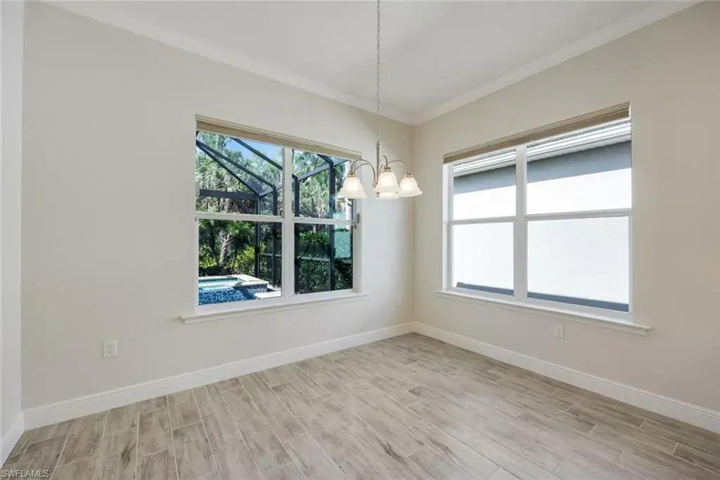 Wonderful opportunity for a Spacious 4 Bedroom Plus Den Pool and Spa Home offered in Desirable Compass Landing! Complete Interior Painting recently completed! Beautiful Tile Flooring flows seamlessly throughout the Great Room and Main Living areas of the One Story, Open Concept plan. Generous Kitchen that includes Informal Dining Area, Quartz Countertops and Stainless-Steel Appliances along with a Formal Dining Room with Coffered Ceiling and Butler’s Pantry is perfect for family and entertaining. A Private Preserve View with Northern Exposure creates a tranquil setting from the Picture Window Screened Pool, Spa and Outdoor Living Space. Compass Landing is a vibrant gated community with Clubhouse, Pool and Spa, Fitness Room, Play Area and is located close to North Naples’ latest dining and shopping offerings.