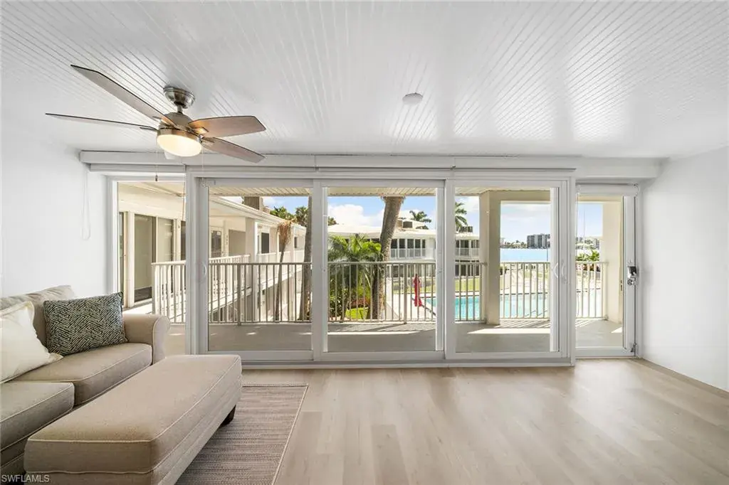 Enjoy your million-dollar view of Moorings Bay and Doctor’s Pass from this ideal Harbour Lights condominium. Beautiful 2023 renovation including luxury vinyl wood flooring, recessed lighting, new modern doors and trim throughout, shiplap touches and gorgeous baths with lighted mirrors and handheld showers. New water heater in 2022, impact sliding glass doors and windows in 2018, air conditioner in 2018 and kitchen in 2015. Harbour Lights boasts all new property-wide electric in 2024, underground water pipes in 2023, painting in 2022 and roof in 2019. Condo Association dues include basic cable, internet, water & sewer, storage room, common insurance and a spectacular resort-style, bay-side heated pool. Additional amenities include community boat slips, kayak berths and tiki hut. Eligible for optional membership in Moorings Beach Club. Amazing location on the bay, two blocks to the beach, and close to Old Naples and Venetian Village shops and restaurants.