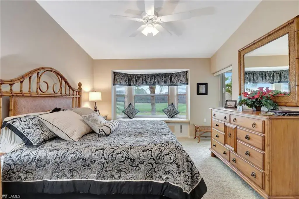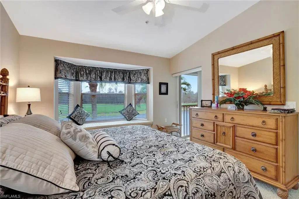 Amazing location. Enjoy sun all day long with southern exposure from this second-floor veranda. Panoramic and unobstructed lake and golf course views. One of the nicest sites in the community. Property equipped with updated kitchen cabinets, countertops, and stainless appliances. Dry bar with wine rack in great room. Primary and guest bathroom thoughtfully updated including new countertops and shower. Additional storage with bench in primary bedroom. Storm shutter for protection and convenience. Cathedral ceilings and very tastefully furnished for your immediate enjoyment. Full golf membership included. Recently completed amenities project includes a brand-new veranda area added to restaurant with additional outside seating and fire pits. New state of the art fitness center along with outdoor tiki bar and resort style pool. Cedar Hammock is conveniently situated just minutes away from downtown’s fine dining, shopping, and beaches.