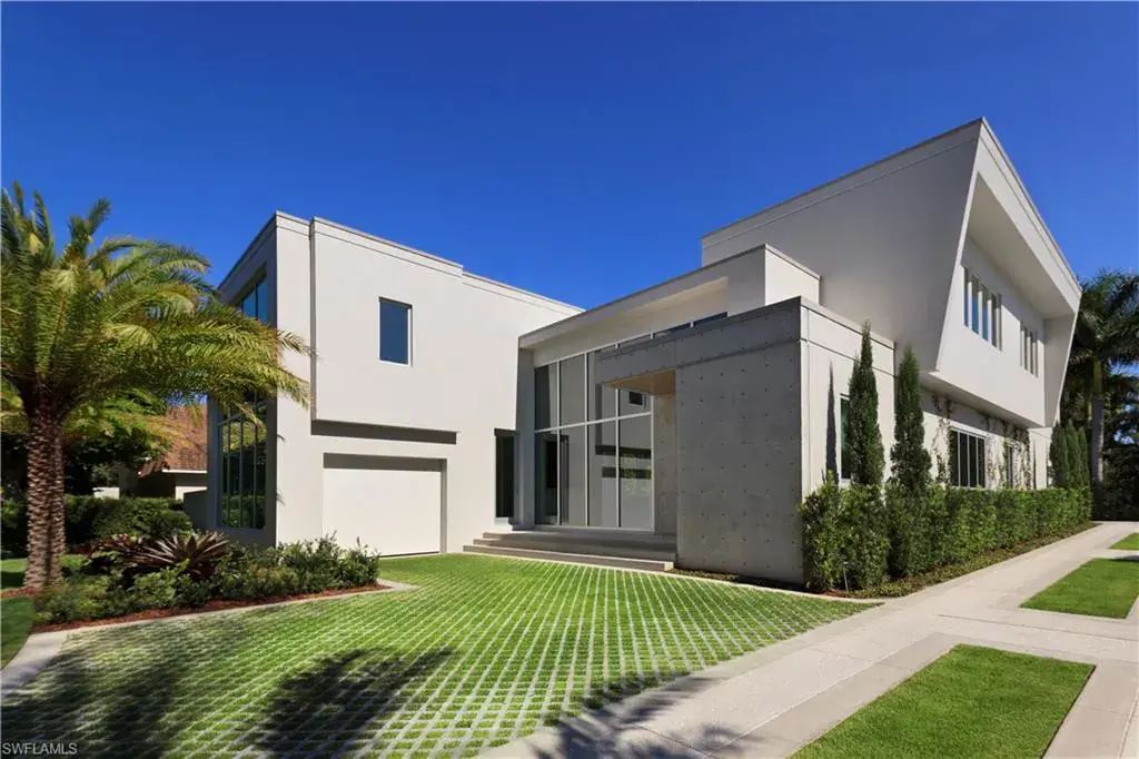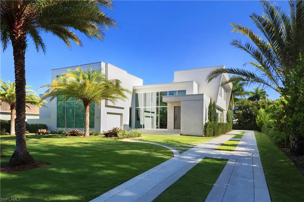 Masterfully designed Contemporary home by Harrell & CO, built by Naples Redevelopment, the developer’s personal family home. Exposed concrete board form walls, beautiful glass and marble wine cellar, a chefs paradise with all Miele appliances imaginable, multiple outdoor cooking areas and a woodturning pizza oven plus fire pit sitting area. The 3 car garage is fully finished with AC in front, full home automation with audio, video, security, custom sheers, blinds and pool patio screening and full lighting control. Beautiful tree lined street with city-maintained green space across the street. Membership to the Moorings Beach Park nearby offers great amenities. The owner/developer spared no expense in building their custom home which has been meticulously maintained and featured in several magazines including Architectural Digest.