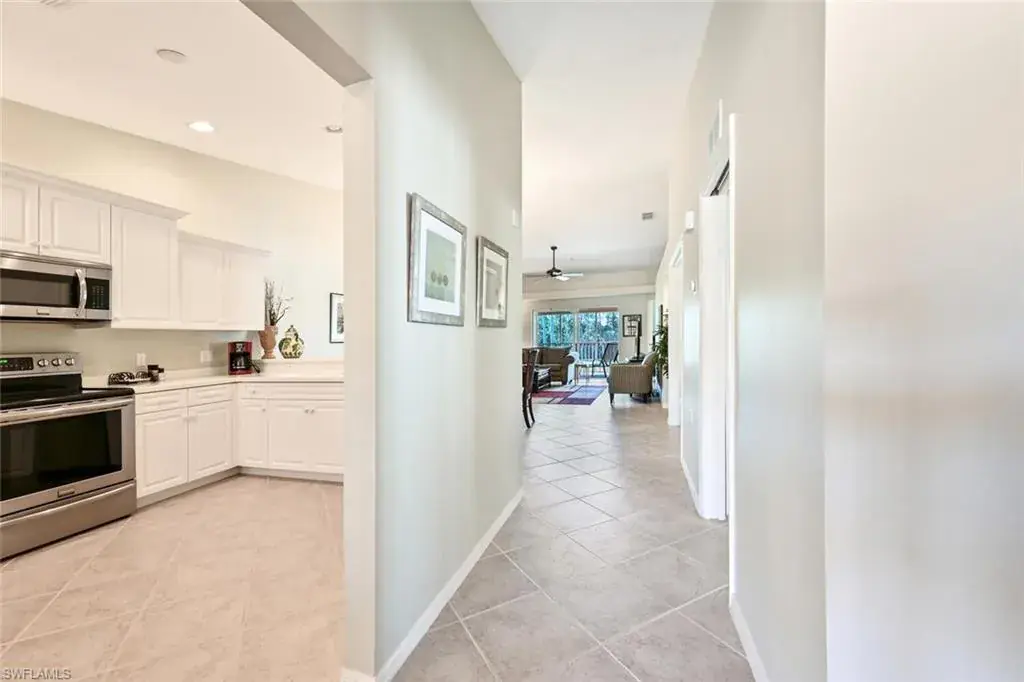 Highly sought after second floor Abbey end unit, boasting 1660 square feet under air. Two bed two bath and den veranda with two screened lanais and a one car un-attached garage. This is the unit many Buyers are looking for! You will not believe all this property has to offer including vaulted ceilings and a fabulous view of the eighteen hole championship golf course. Just furnish and move in, no additional work required in this tiled and neutral decor end unit veranda. The Abbey is the preferred model boasting an extra two hundred square feet and a window in the den compared to other veranda models. Cedar Hammock is undergoing significant changes to enhance the community with a new state of the art two story fitness center and a resort style pool with bar area all to be completed in 2023! Welcome to the resort style living you have dreamed of with a championship 18 hole golf course ! Fitness class in the morning or a round of golf, take the short drive to downtown Naples for an afternoon of shopping or the beautiful beaches, before returning home for happy hour at the pool and dinner at the club! Cedar Hammock offers you the complete Naples lifestyle with its new facilities!