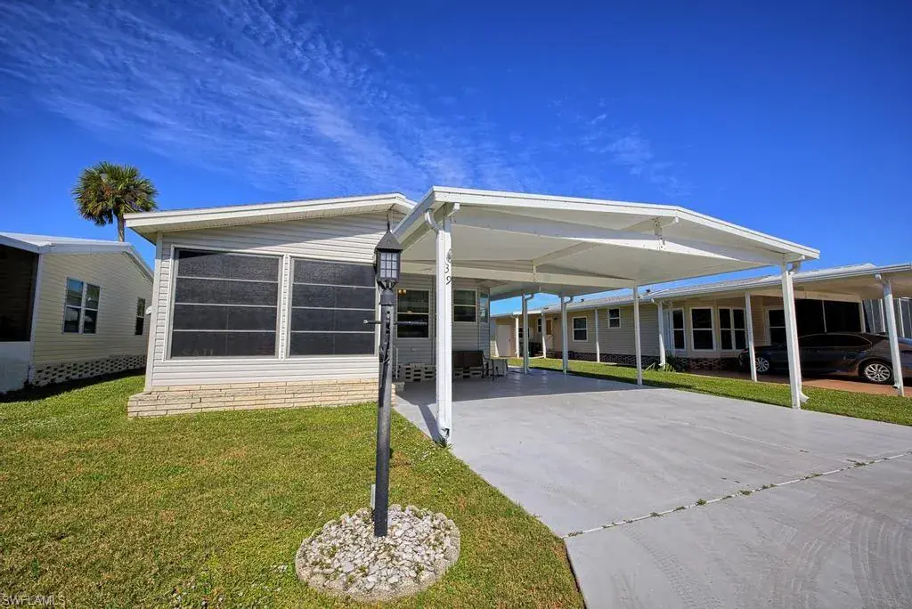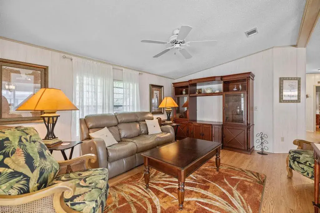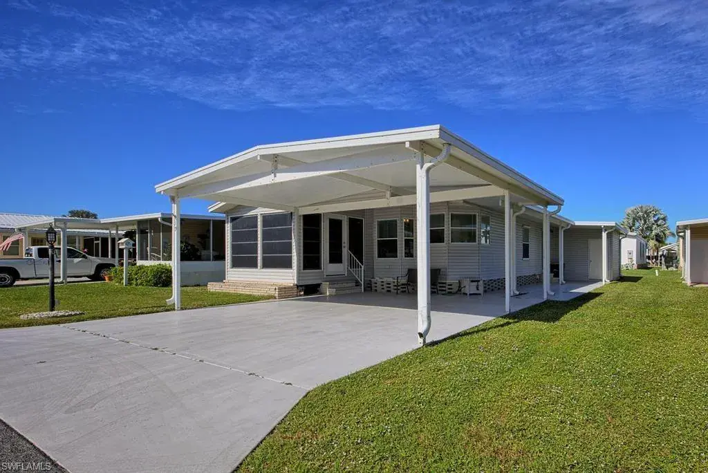Experience a relaxing lifestyle in coastal living with this charming manufactured beach cottage home in an active, vibrant 55+ community. In the heart of Naples, you will be beachside in less than 15 minutes! Head over the bridge right onto Marco Island OR to Downtown Naples all within about a 15 min drive. This lovely home boasts a prime location in a very active park with lots of events and activities evey week! Extremely low fees and sold turn key with beautiful furnishings! The cottage itself is a picture of charm, with its breezy open floor plan, vaulted ceilings, and bright and airy interior including a spacious sun filled kitchen. The front offers a sunny lanai to greek your neighbors as they pass by on bicycles or drop by for a game of cards. This home offers very wide hallways,wood flooring in almost every room. No carpet! Spacious laundry room you can enter from the side of the home along with an extra storage shed! With the community offering a plethora of amenities for residents to enjoy, including a clubhouse, pool, boat storage and boat ramp, plus regular social events you cant go wrong! Its the perfect blend of coastal living and an active lifestyle. Roof is about 2018 and the A/C is newer. Seller believes around 4 yrs old. CASH ONLY -Make offer!