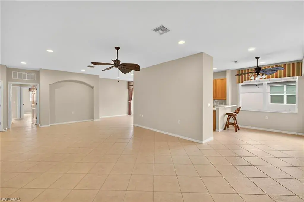 Set within the gated Forest Glen Golf & Country Club, this spacious 3-bedroom, 2-bath carriage home offers nearly 2,200 square feet of comfortable living with serene golf and landscaped views. A thoughtfully designed open floor plan includes both a dining area and breakfast nook, plus a breakfast bar for casual meals. Tile flooring throughout, luxury vinyl on the stairs and lanai, a new HVAC system in 2022, roof replacement in 2023, and full storm protection add comfort and peace of mind, while a rare 2½-car garage provides space for a golf cart or extra storage. Just steps from the Bishopwood West pool, the home also connects you to the vibrant Forest Glen lifestyle. The community is anchored by a newly redesigned 6,820-yard championship golf course, complemented by an upgraded practice facility, while off the course residents enjoy pickleball, tennis, bocce, biking and walking trails. Social life flourishes with a poolside bar and restaurant, casual and elegant dining venues, a fitness center, and a wide range of clubs and activities from cards and book groups to holiday events. Ideally located just east of Collier Boulevard, Forest Glen offers quick access to I-75, downtown Naples, pristine Gulf beaches, Marco Island, shopping, and dining—making it both a convenient year-round residence and a welcoming seasonal retreat.