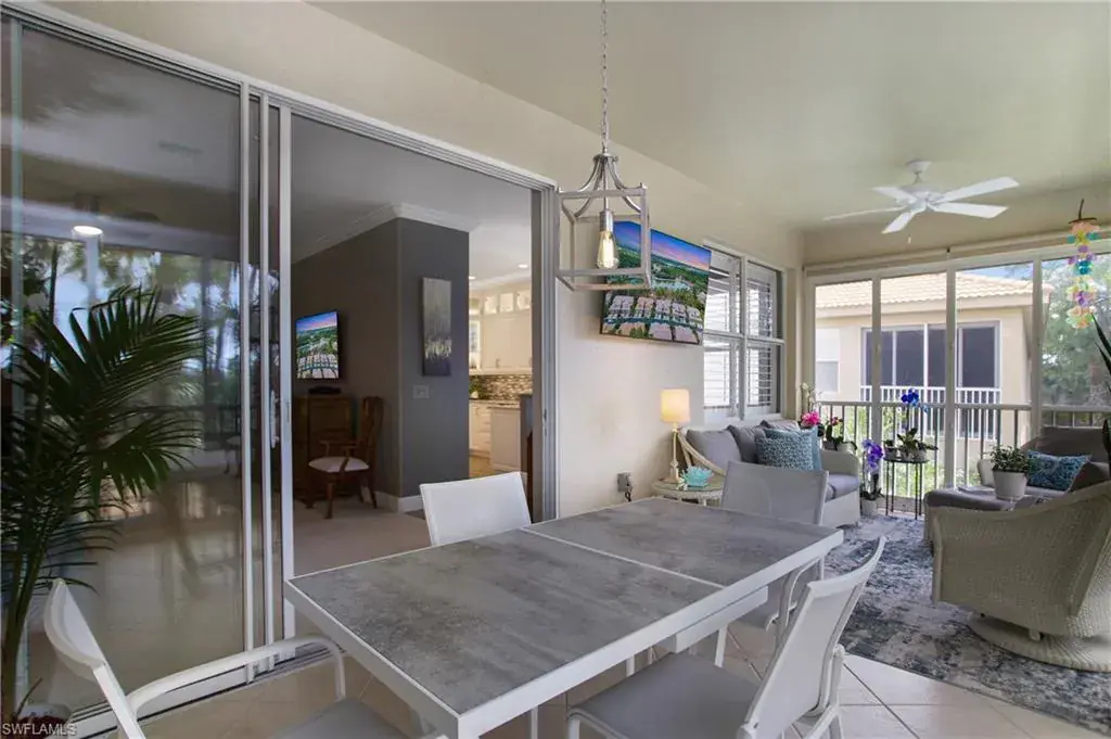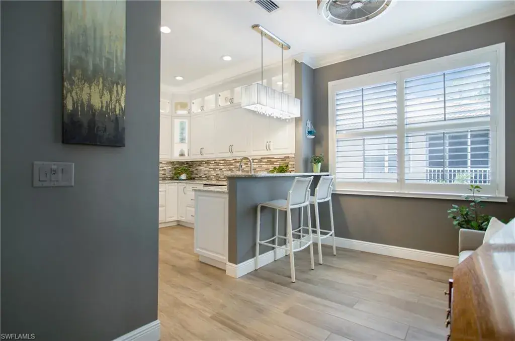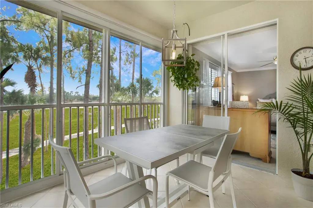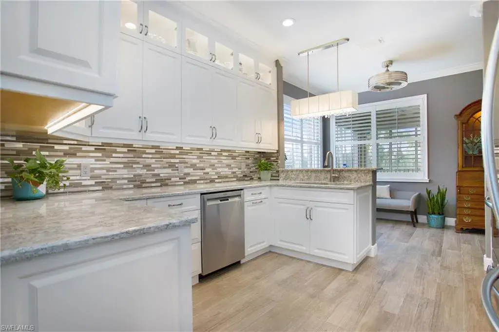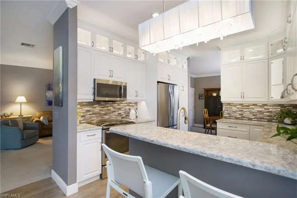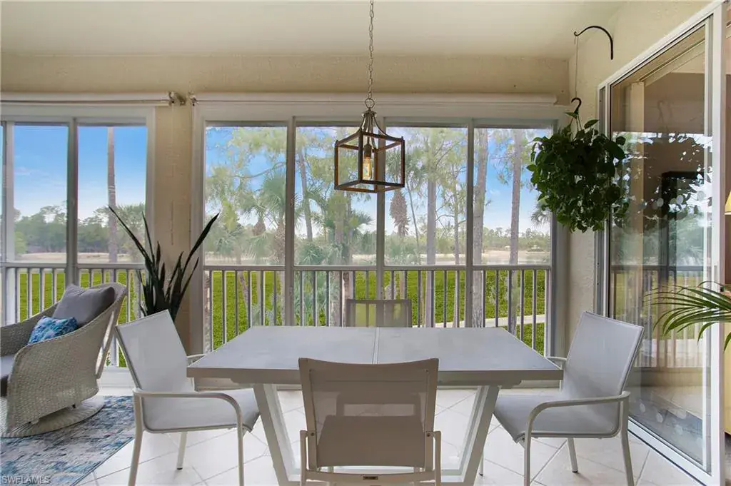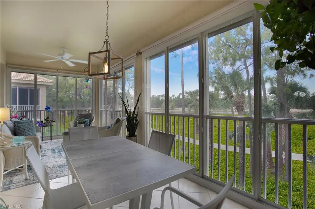 GOLF INCLUDED!!! Welcome to luxury living in the prestigious bundled golf community of Forest Glen, where this beautifully renovated 3 bed/2 bath Bishopwood COACH HOME awaits! With only 4 units per building, this home offers privacy and exclusivity. This property is being offered furnished with few exclusions; golf cart is negotiable. A two-car garage with epoxy floor, paver driveway, and tropical landscaping greet you at the front of the property. Step inside to discover an open floor plan with a gorgeous kitchen boasting high-end custom cabinets, perfect for the discerning chef. Sophisticated details abound, including wood plank tile flooring, crown molding throughout, stylish light fixtures, tons of closet space, and plantation shutters, adding elegance and charm to every corner. Many recent upgrades are found throughout, including appliances (2019), A/C (2017), roof (2023), and new automatic hurricane shutters. Another highlight of this home is the screened-in lanai, accessible from both the main living area and the primary bedroom. Here, you’ll enjoy breathtaking views of the golf course and serene lake, creating a peaceful retreat for relaxation and entertainment. Forest Glen offers a country club lifestyle with world-class amenities, including golf, both indoor and outdoor dining, fitness center with instructional classes, tennis, bocce, pickleball, and more. Residents enjoy access to a resort-style club pool and separate neighborhood pool. Many social activities and clubs are on offer at the community clubhouse. Whether you’re seeking an active lifestyle or a tranquil escape, this community has something for everyone. Some photos include virtual reality staging.