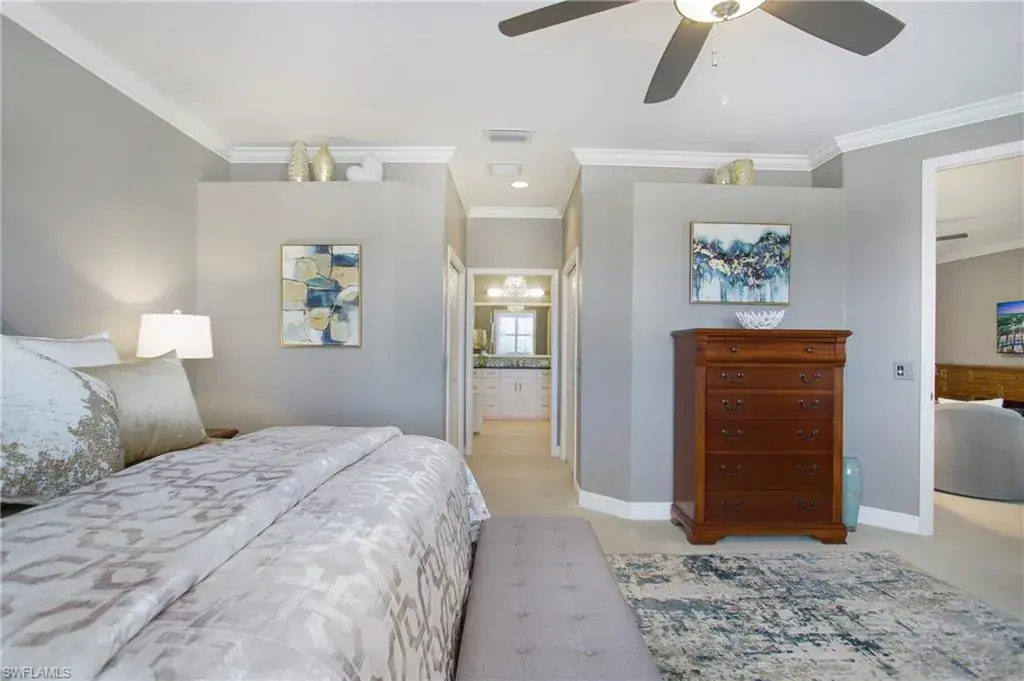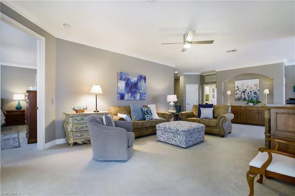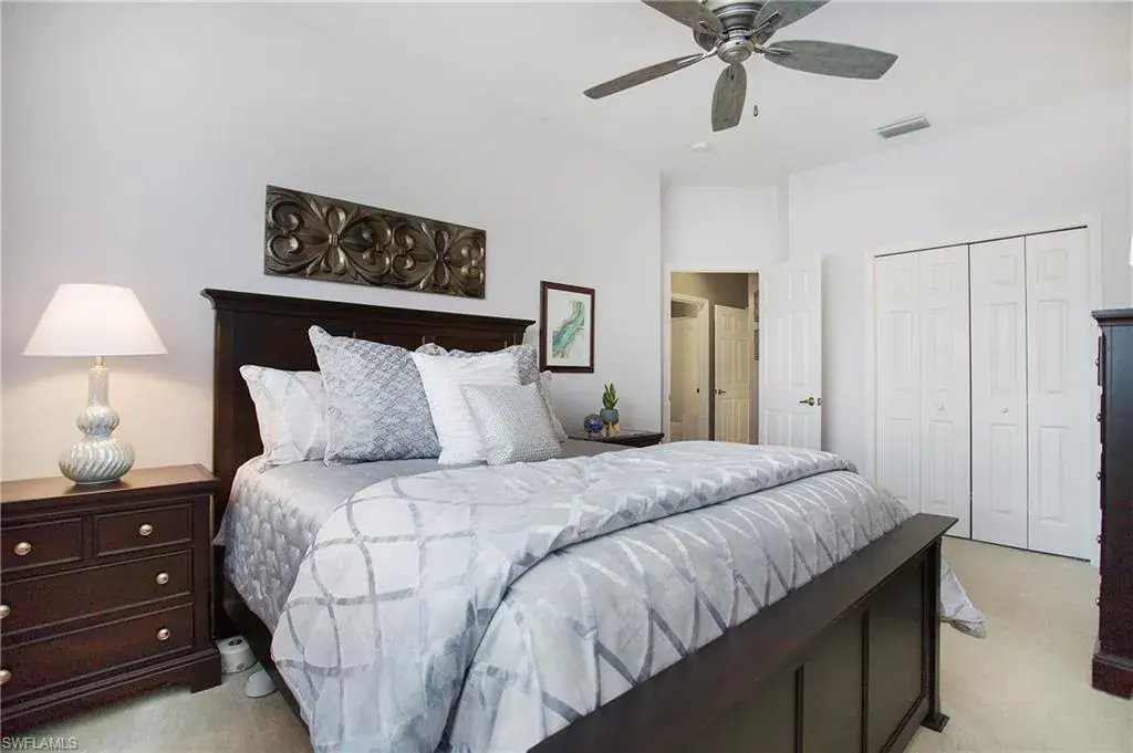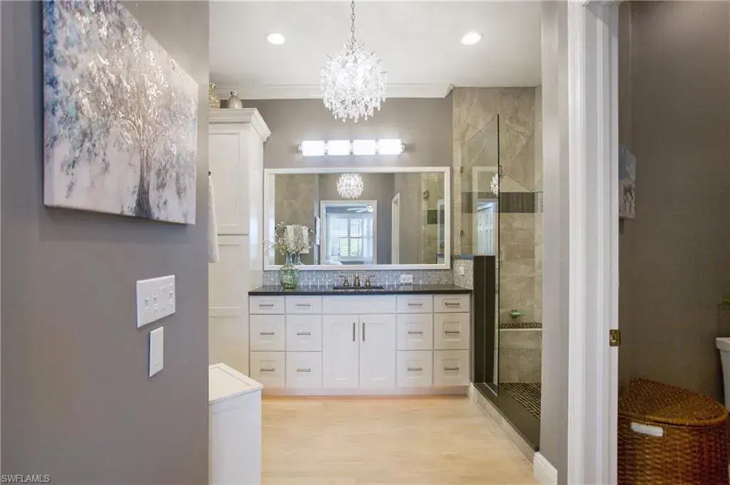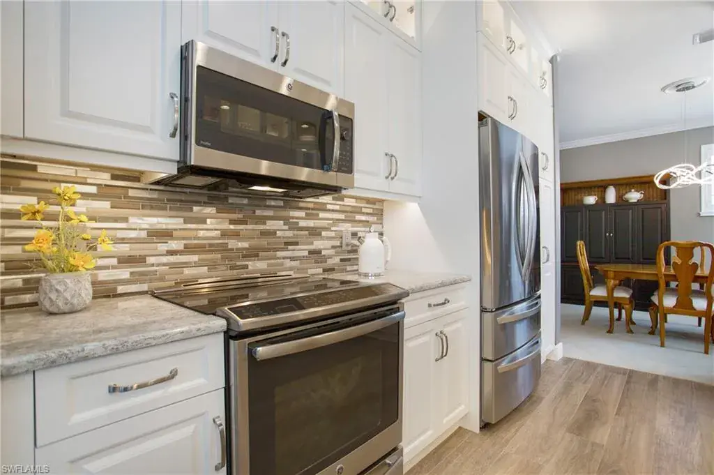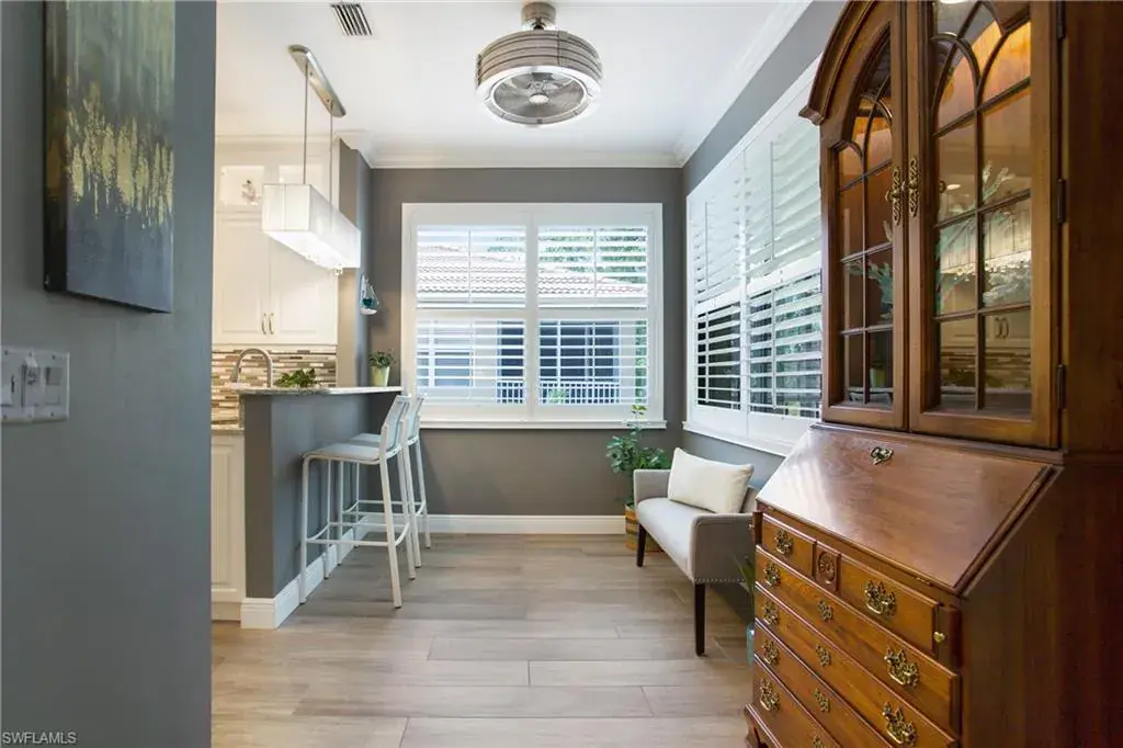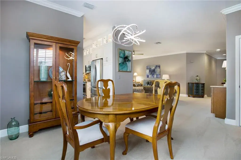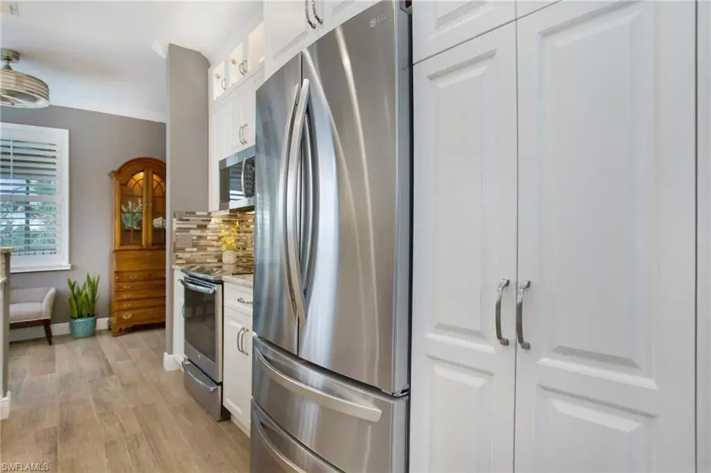 GOLF INCLUDED!!! Welcome to luxury living in the prestigious bundled golf community of Forest Glen, where this beautifully renovated 3 bed/2 bath Bishopwood COACH HOME awaits! With only 4 units per building, this home offers privacy and exclusivity. This property is being offered furnished with few exclusions; golf cart is negotiable. A two-car garage with epoxy floor, paver driveway, and tropical landscaping greet you at the front of the property. Step inside to discover an open floor plan with a gorgeous kitchen boasting high-end custom cabinets, perfect for the discerning chef. Sophisticated details abound, including wood plank tile flooring, crown molding throughout, stylish light fixtures, tons of closet space, and plantation shutters, adding elegance and charm to every corner. Many recent upgrades are found throughout, including appliances (2019), A/C (2017), roof (2023), and new automatic hurricane shutters. Another highlight of this home is the screened-in lanai, accessible from both the main living area and the primary bedroom. Here, you’ll enjoy breathtaking views of the golf course and serene lake, creating a peaceful retreat for relaxation and entertainment. Forest Glen offers a country club lifestyle with world-class amenities, including golf, both indoor and outdoor dining, fitness center with instructional classes, tennis, bocce, pickleball, and more. Residents enjoy access to a resort-style club pool and separate neighborhood pool. Many social activities and clubs are on offer at the community clubhouse. Whether you’re seeking an active lifestyle or a tranquil escape, this community has something for everyone. Some photos include virtual reality staging.