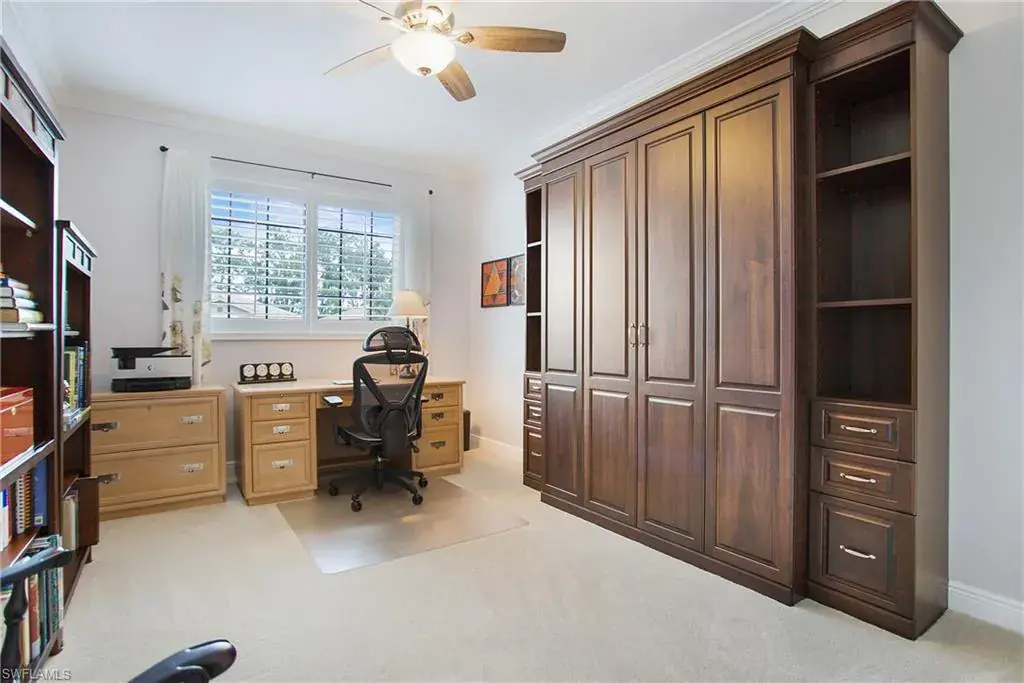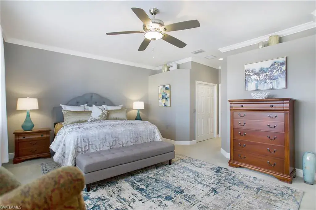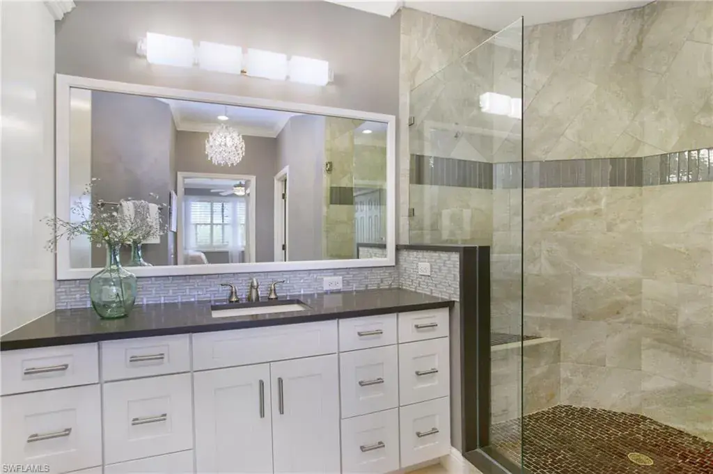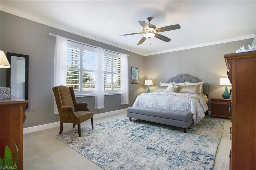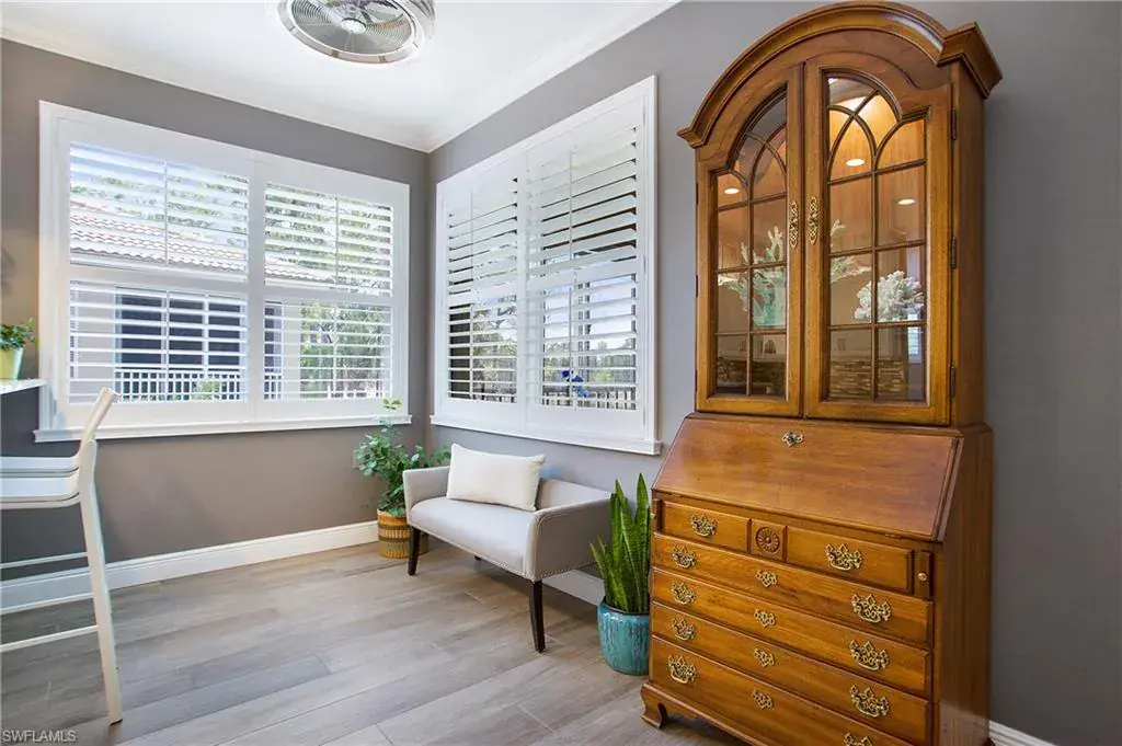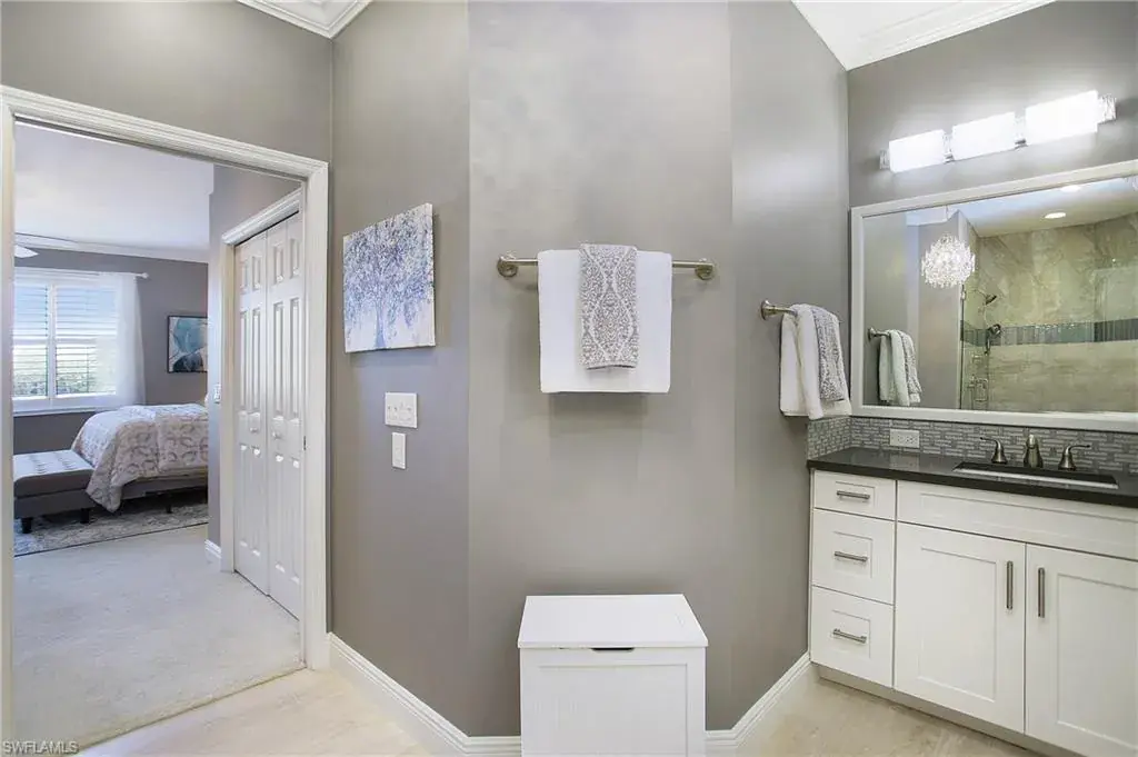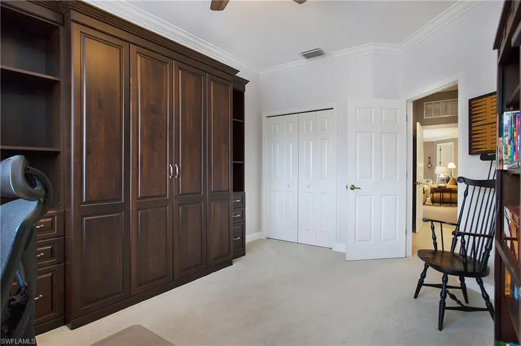 GOLF INCLUDED!!! Welcome to luxury living in the prestigious bundled golf community of Forest Glen, where this beautifully renovated 3 bed/2 bath Bishopwood COACH HOME awaits! With only 4 units per building, this home offers privacy and exclusivity. This property is being offered furnished with few exclusions; golf cart is negotiable. A two-car garage with epoxy floor, paver driveway, and tropical landscaping greet you at the front of the property. Step inside to discover an open floor plan with a gorgeous kitchen boasting high-end custom cabinets, perfect for the discerning chef. Sophisticated details abound, including wood plank tile flooring, crown molding throughout, stylish light fixtures, tons of closet space, and plantation shutters, adding elegance and charm to every corner. Many recent upgrades are found throughout, including appliances (2019), A/C (2017), roof (2023), and new automatic hurricane shutters. Another highlight of this home is the screened-in lanai, accessible from both the main living area and the primary bedroom. Here, you’ll enjoy breathtaking views of the golf course and serene lake, creating a peaceful retreat for relaxation and entertainment. Forest Glen offers a country club lifestyle with world-class amenities, including golf, both indoor and outdoor dining, fitness center with instructional classes, tennis, bocce, pickleball, and more. Residents enjoy access to a resort-style club pool and separate neighborhood pool. Many social activities and clubs are on offer at the community clubhouse. Whether you’re seeking an active lifestyle or a tranquil escape, this community has something for everyone. Some photos include virtual reality staging.