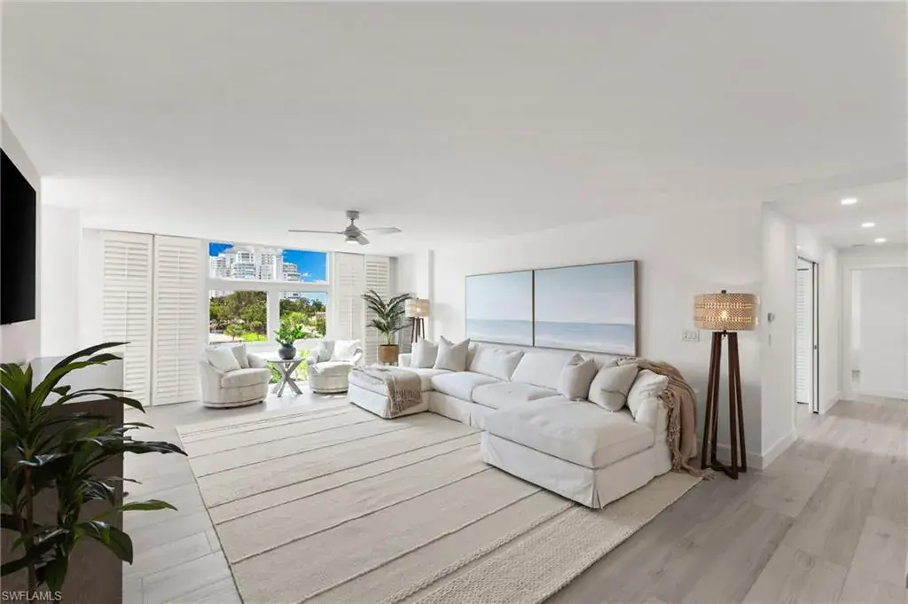 Poised on the top floor of 400 Park Shore Drive, Unit 502, this elegant residence offers breathtaking bay views from every room as well as sunrise views off the front balcony. An enviable location close to shopping, restaurants, and stunning sunsets. This corner unit features 3 bedrooms, 3 full bathrooms, and spans 2066 square feet of luxurious living space. Enjoy private beach access and captivating water views, creating an idyllic waterfront lifestyle. This penthouse is fully renovated and is pet-friendly. The building offers an elevator, guest parking, and a pool. Revel in the Naples lifestyle with this exceptional waterfront home. Park Shore is an ideal location, minutes away from Venetian Village, Waterside Shops and iconic 5th Ave as well as 3rd St. offering all types of dining as well as a shoppers dream. The swimming pool and grill area look onto the bay with updated boat docks. *Bock docks available for lease