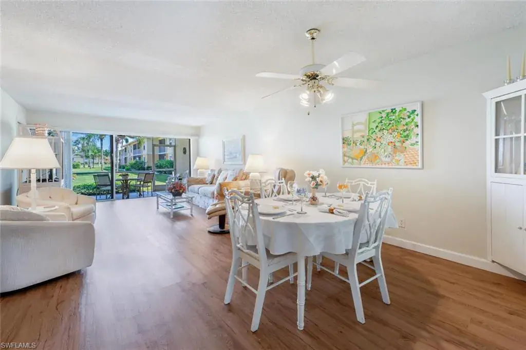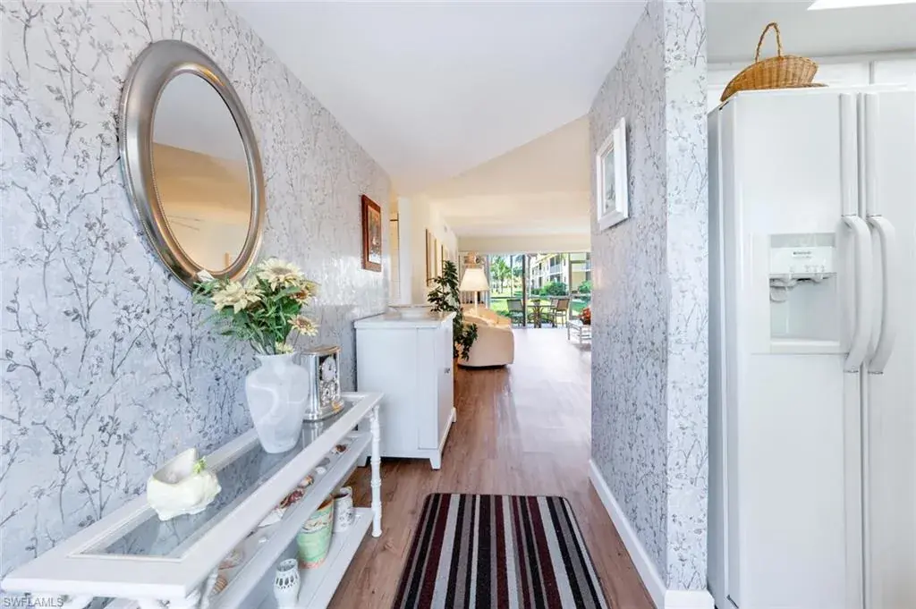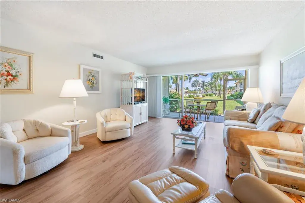 Just say “welcome home” to this attractive and well maintained 2BR/2BA TURNKEY condo, located in a private and quiet section of the Riviera Golf Estates condominium community, and enjoy the great landscaped view from the spacious screened lanai. Both bathrooms have been stylishly updated with new tile flooring, new vanities, new granite countertops, tiled shower/tub areas (glass doors), and new light fixtures. The high traffic areas of the home have new waterproof vinyl plank flooring and the lanai has a tile floor. The windows have impact resistant glass, providing you with added protection during inclement weather. To top it all off, the A/C was just replaced in 2022 and the old, traditional water heater has just been replaced with a 2024 instant hot water system. In the kitchen you can’t help but notice the spotless, white refaced cabinets. Need a place for those beach chairs, no problem – this home comes with an extra storage locker. This small, intimate 55+ community has a heated pool and a chickee hut for social gatherings. The closeness to downtown Naples, absolutely gorgeous beaches and great shopping, make this a perfect location whether you’re looking for a seasonal home or a place to call home year round!