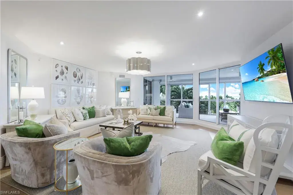 C13120 This extraordinary beachfront residence has been beautifully updated and fully furnished by Joy Tribout Interiors of St Louis. Beginning with enhancements to the original floorplan to complement today’s beach lifestyle, the design team has brought together the highest level of finishes and fixtures to deliver the epitome of luxury and elegance. Encompassing 3,944 total sq ft, the spacious floorplan offers 4 ensuite bedrooms, two covered lanais, and a large great room with adjoining den, well equipped kitchen and dining area which are perfect for entertaining family and guests. The updated kitchen features custom cabinetry with brass pulls, F. Bertazonni stove, and upgraded appliances with extra beverage drawers. With a sweeping view to the Gulf, the primary suite enjoys a spacious and beautifully appointed bath and grand walk- in closet. An added benefit are the extra storage rooms and 2 assigned underground garage spaces. The Brittany offers an updated fitness center, 4 quest suites, tennis courts, beach side lap pool with barbecue pavilion and 24 hour security. Perfectly located within a short stroll to the wonderful restaurants and shops at Venetian Village.