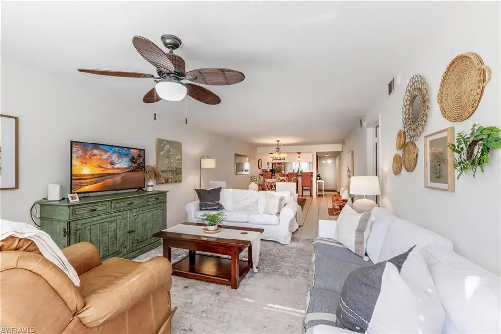 Stunning Designer Renovated And FURNISHED!!!! Large 2/2 1246 sq ft,MOST DESIRED 1st floor Chic Beach Coastal Condo TURNKEY in the very Desirable Winterpark community. Proudly having one of the Larges Resort Style Swimming Pools in Naples,with tennis courts,bocce, and walk to Publix,Starbucks,restaurants,and downtown 5th ave is all close by.Airport 25 min away. Kitchen has beautiful white shaker cabinets,SS Farmers Sink, SS appliances, French SS Refrigerator. Designer Furnished. Walk in closets in Master, and plenty of extra storage and closets, great enclosed lanai with light sand cascading white long drapes making a Coastal Breeze so refreshing,and you don’t want to leave. Low Assc fees.Just bring your toothbrush and beach towel and live the Florida lifestyle.