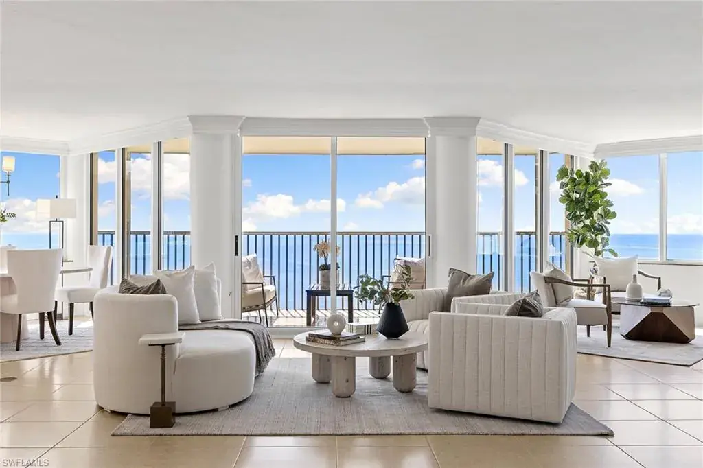 Breathtaking views of the Gulf of Mexico captivate you the minute you enter this elegant coastal retreat. Situated on the 12th floor in the coveted 01 stack of Savoy at Park Shore, this stunning condominium offers endless direct views of the beach and gulf from every window. Featuring two ensuite bedrooms with open air balconies, a den that was originally the third bedroom, three full baths, a large, screened balcony and two parking spaces. Savoy is a luxury high rise with an unparalleled location on the Park Shore beach across from the restaurants and shops of Venetian Village. Savoy amenities include 24-hour security, large pool and spa overlooking the beach, fitness center, tennis and pickleball courts, rooftop sun deck and two guest suites. Stroll along the Park Shore beach and boardwalk or walk across the street for dinner or shopping. Live the Naples beach lifestyle!