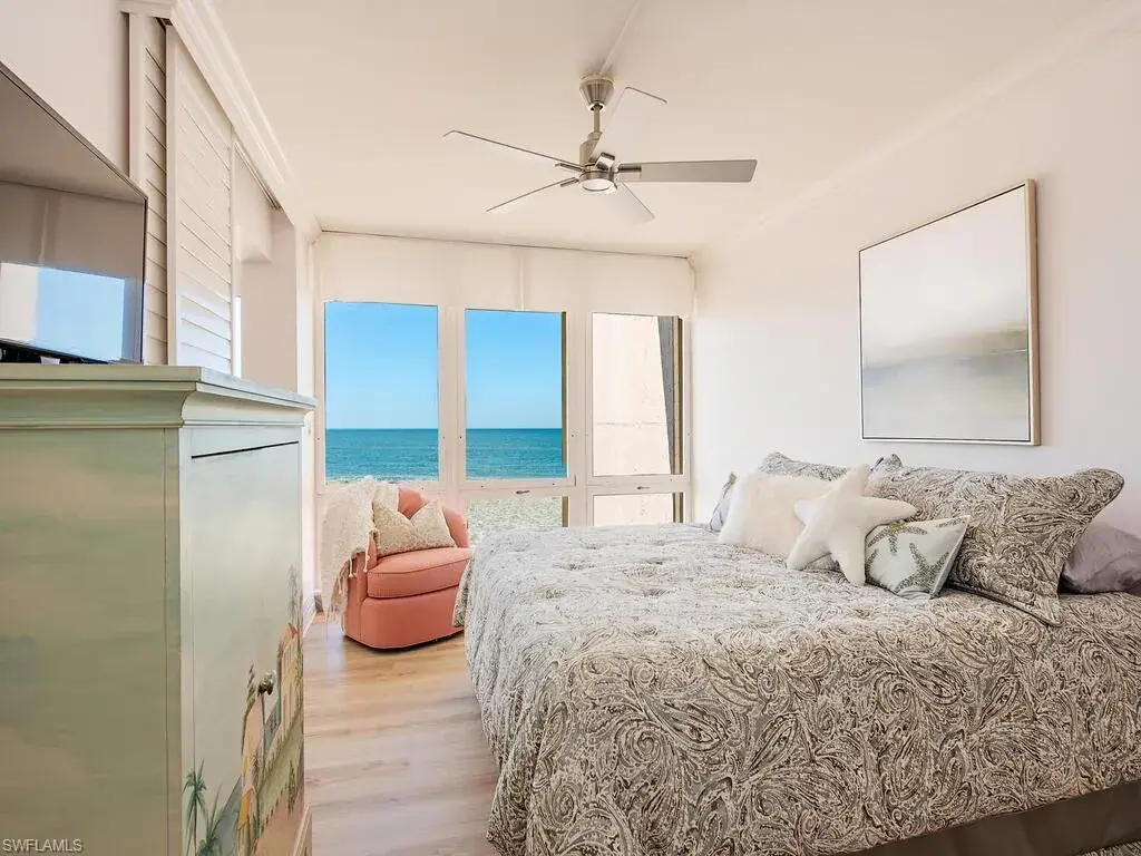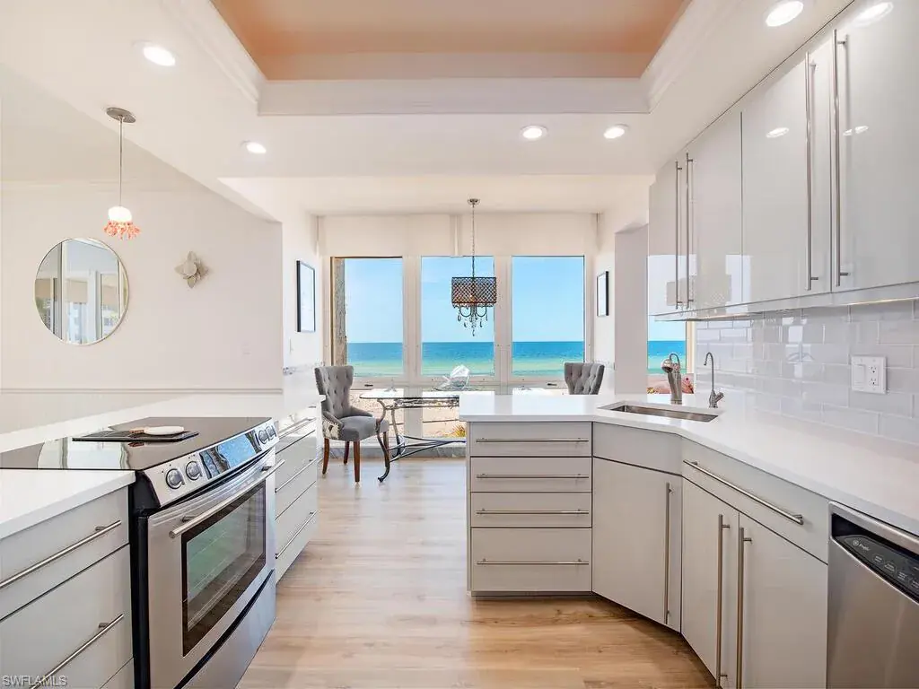 Welcome to La Mer, THE Gulf-Front Park Shore and Venetian Village boutique waterfront SWEET SPOT! Be spoiled by both the wonders of beachfront living, plus the added luxury of having Venetian Village, the neighborhood’s charming upscale European-Style shopping and fine dining destination, be just steps away. Not only is La Mer a SWEET SPOT, but so is this SW corner “04”, well renowned for its highly preferred location, location, location within the tower. Happily, this Sunny, bright, cheerful, comfortably generous residence showcases lovely improvements, whether it be the removal of walls to open up the crisp, sleek chef’s kitchen, the update flooring, fresh paint, or updated baths. Also unique to this residence is its immediate easy access to two of La Mer’s three guest suites, plus newly Re-Mastered Fitness, all located on the second floor too! Unique to La Mer Tower is an owner’s rooftop gathering area, along with a very special rooftop guest suite, and 24-hour security. Owners further enjoy the oversized upscale south-facing pool, spa, open-air and covered patio, and direct access to the Park Shore Beach-Front 1.5 mile walking and jogging path. ATTENTION Boaters … Feel free to inquire about the Seller-owned 12’6″ wide, 35’+ in length B13 boat slip with new remote controlled 16,000 lb. dual motor lift, available separately at the newly refurbished Venetian Bay slips, located just north of Venetian Village!