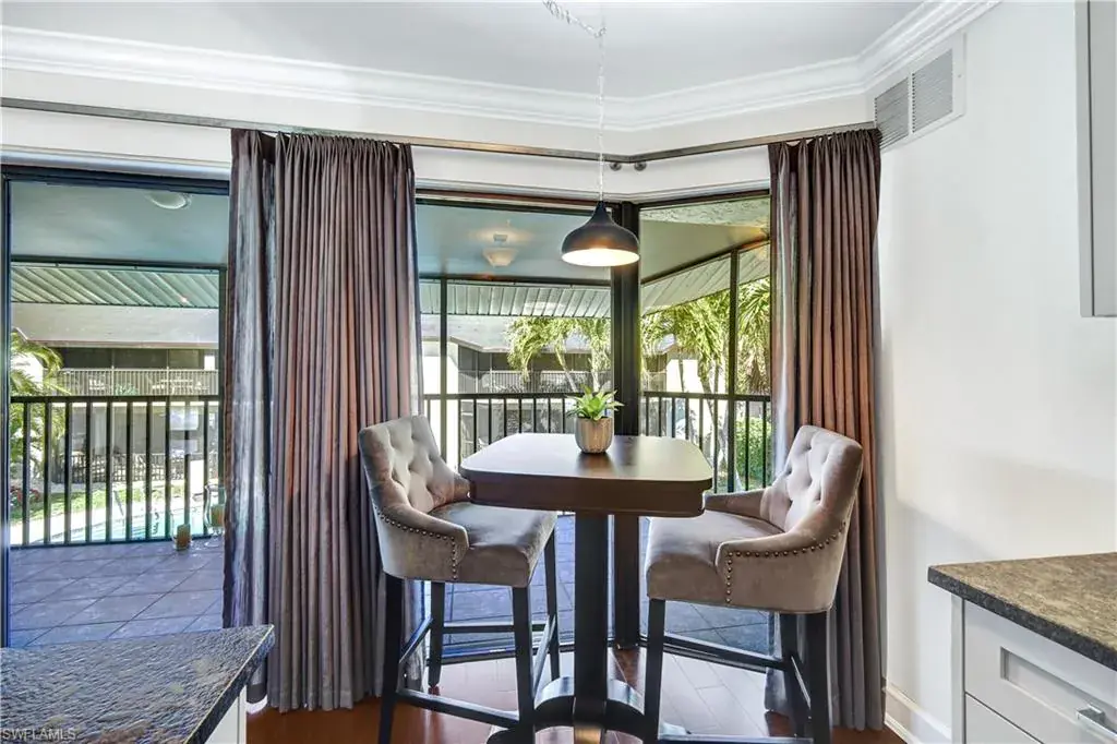 Every detail of this home exudes artistry. The turnkey-furnished top-floor unit’s stunning kitchen boasts leathered granite countertops and a tumbled marble backsplash, and throughout the home you will find engineered hardwood floors, solid core doors, crown and base molding, and walk-in closets. Attention to detail abounds, and sliding glass doors provide access to the lanai from every room. Just outside, find deep relaxation poolside surrounded by lush gardens, as well as a carport to protect your auto and keep you dry from the rain. Winterport is a gem of just twelve units tucked into the heart of Park Shore. A place you will be proud to call “Home”. It is just up the street from the Park Shore residents’ beach and The Village on Venetian Bay, which offers waterfront dining and upscale shopping, as well as the Venetian Bay Yacht Club, with boat docks for lease or purchase. And just around the corner is Starbucks, Fresh Market, The Yard House, and many great local restaurants like Alexander’s, USS Nemo, and Swan River. Centrally-located, you are just minutes to the lovely downtown districts of 5th Ave S and 3rd St S, as well as North Naples’ Waterside Shops, Artis and Mercato.