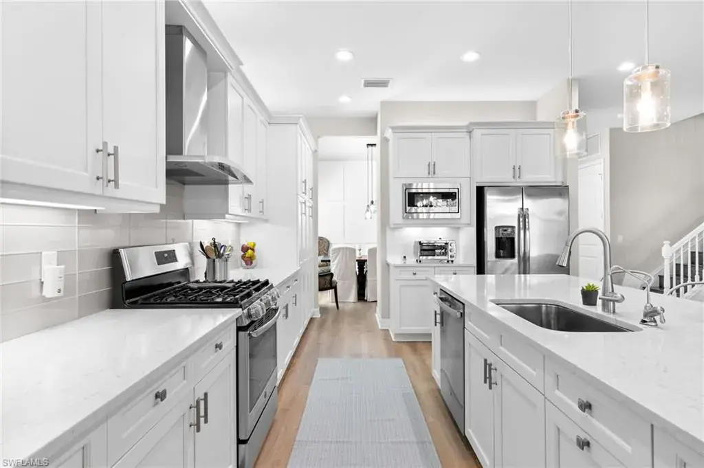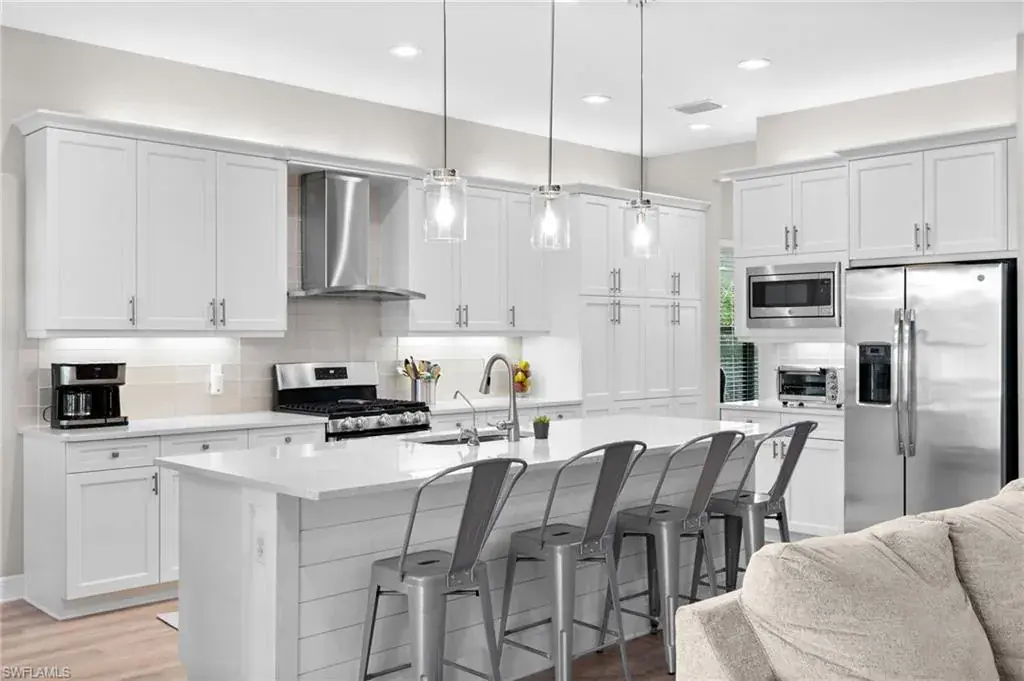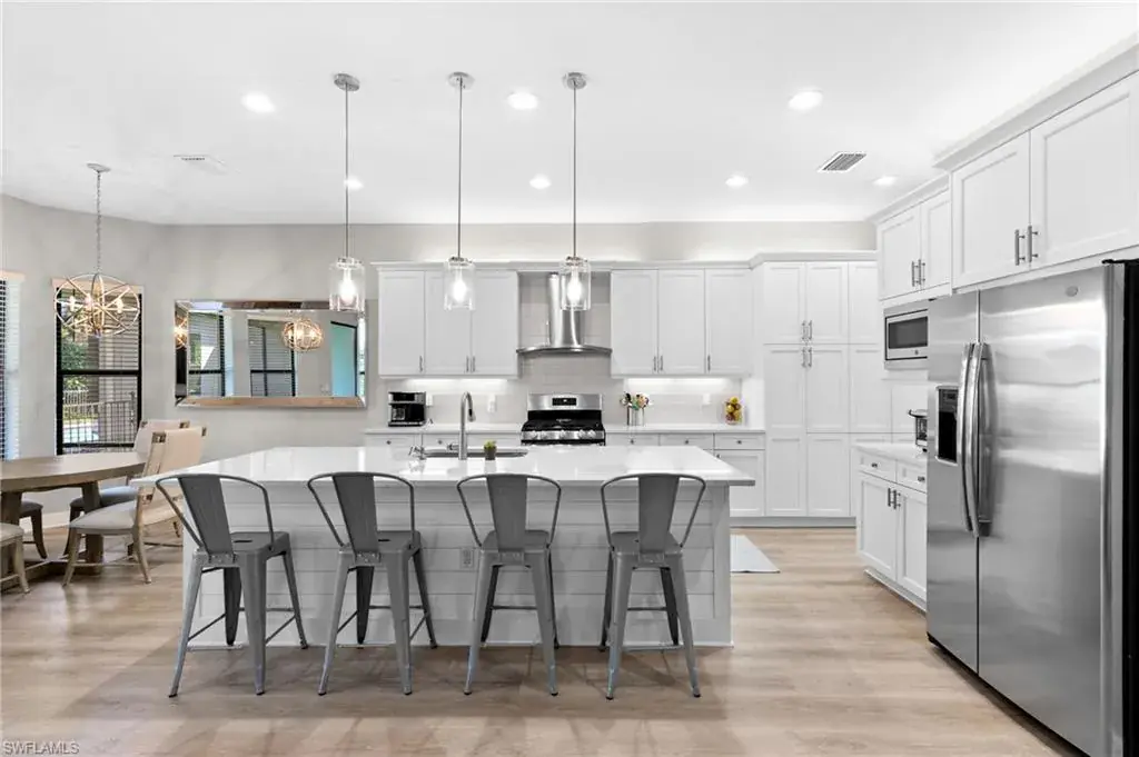 LOWEST PRICE PER SQUARE FOOT IN STONECREEK! MOTIVATED SELLERS! Welcome to your dream home in the sought after Stonecreek community of North Naples! This meticulously maintained Rose Model is one of the most desired floor plans offering over 3500 sq ft. The home features 5 bedrooms including a main floor master bedroom, formal dining room, large upstairs loft, 4 1/2 baths and a spacious 3-car garage. Beautiful white kitchen cabinets, stainless steel appliances, reverse osmosis, quartz countertops, and an eat in kitchen! The additional four bedrooms are generously sized, providing versatility for guest accommodations, a home office, or a fitness room. Whole house water softener and filtration system, both AC units have UV lights, laundry chute from upstairs into the laundry room featuring quartz countertops, cabinets and sink! Step outside to the lanai, surrounded by lush landscaping with room for a pool! Stonecreek is known for its exceptional amenities, including a clubhouse, resort-style pool, tennis courts, pickle ball, splash pad, fitness center, indoor sport court, playground and so much more!! This home offers a prime location, providing easy access to fine dining, shopping, and pristine Gulf Coast beaches. Don’t miss the opportunity to make this stunning Stonecreek residence your own. Schedule a showing today and experience the epitome of luxury living in North Naples! Pool Renderings available!