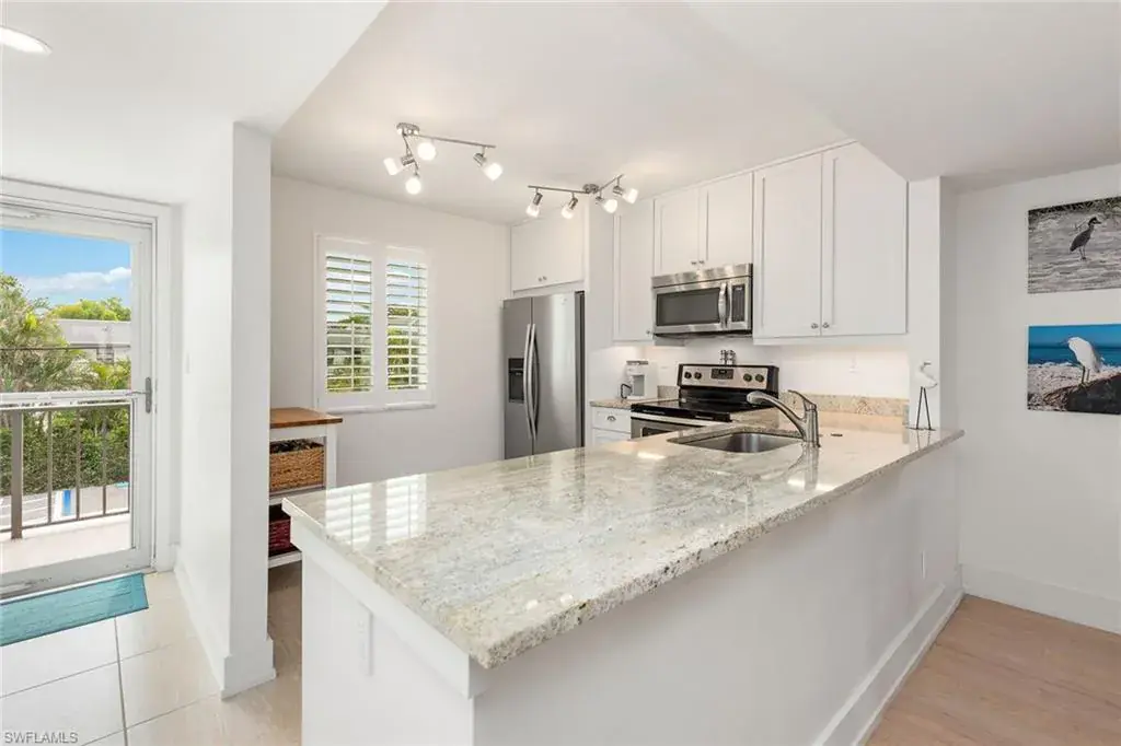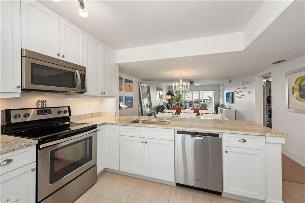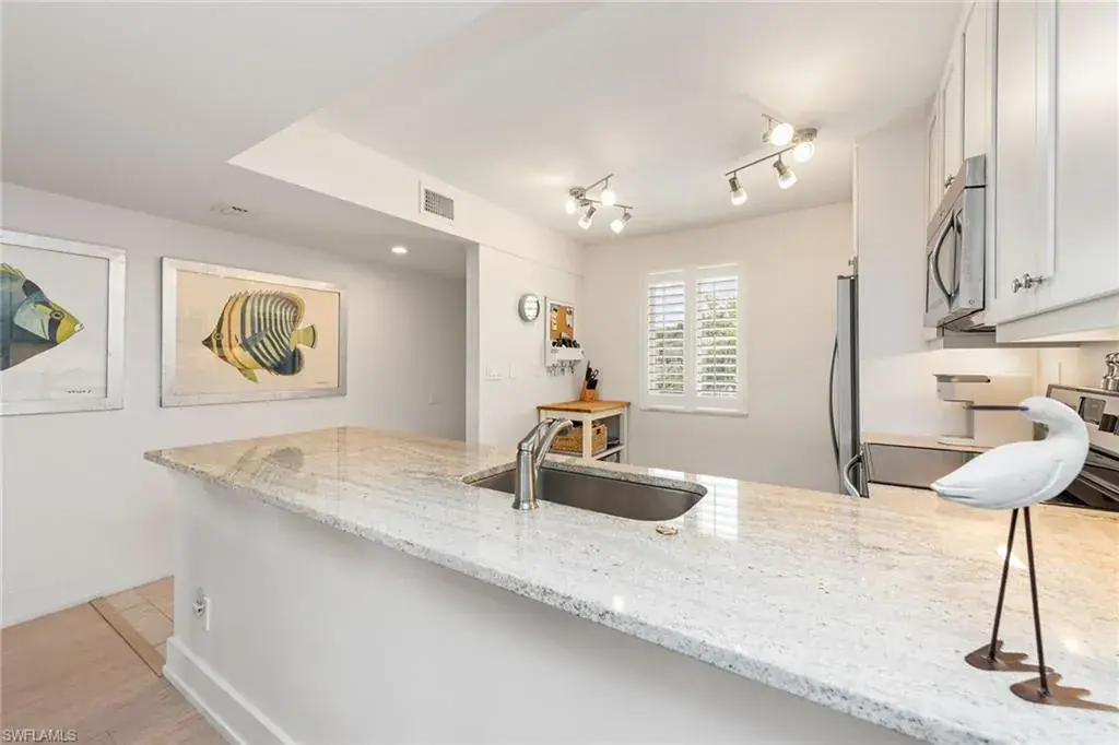 The pinnacle of exclusive coastal living. This stunning 2-bed, 2-bath residence boasts over 1,200 sqft of sophisticated living space. As you enter, you are immediately captivated by the open-concept layout that showcases floor-to-ceiling glass sliders. The kitchen features white shaker-style cabinets, granite counters and top-of-the-line stainless steel appliances. The living and dining areas effortlessly flow together, creating the perfect setting for both entertaining and intimate gatherings. An en-suite bath with frameless shower and a walk-in closet with built-ins complete the primary suite, while the spacious guest bedroom is equally impressive. The screened-in lanai and expansive terrace offer breathtaking panoramic views of the iconic Park Shore skyline, inviting you to indulge in the idyllic Naples lifestyle. The residence also comes with covered parking, private storage locker, washer/dryer, plantation shutters and impact-resistant windows/sliders throughout. Harborside Terrace residents enjoy luxury amenities, including a swimming pool, shuffleboard, outdoor grill area, a social room and easy access to pristine beaches, world-class golf courses and fine dining.