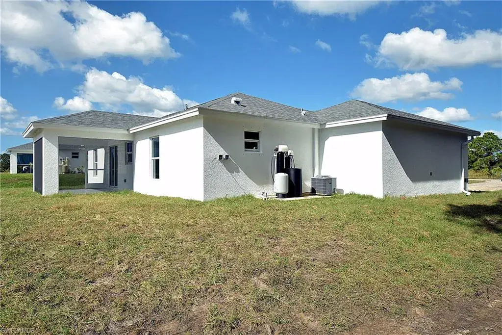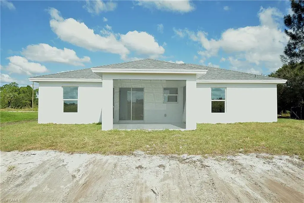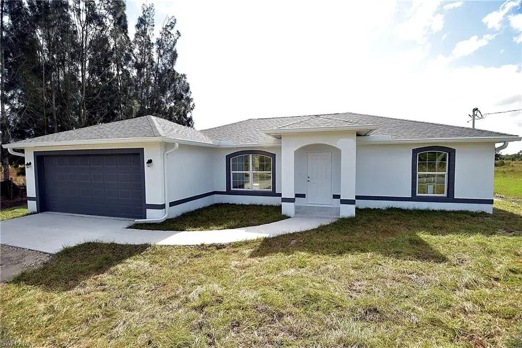 Charming, New construction home located in the northern area of Golden Gate Estates. The house features: 3 bedrooms, split floor plan, two bathrooms, Tile floors throughout the house. Double pane windows, great for energy efficiency. Two car garage. Washer and dryer are included!. Lanai enclosed with screen. The home sits in a 1.59 acres upland parcel and has an approximate distance to each side to the lot line of 26 feet. Quick access to Immokalee Rd. Close to Sheriff’s office gun range; The Seminole casino Hotel; Ave Maria hometown and Artrex manufacturing buildings. Many other businesses and entertainment like: Collier fair grounds, Big Corkscrew island regional park and more!. House is under construction and is set to be completed in approximately 3 months.