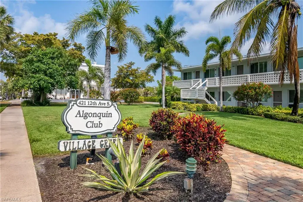WELCOME TO YOUR SLICE OF PARADISE IN OLDE NAPLES, JUST 4 BLOCKS FROM THE PRISTINE SHORES OF NAPLES. NESTED IN ONE OF NAPLES MOST COVERTED NEIGHBORHOODS. STEP INSIDE THIS 2 BEDROOM  TOTALY REMODELED UNIT IN 2021 WITH BRIGHT SUNLIGHT STREAMING IN FROM EVERY ROOM IN THIS CORNER UNIT. IT HAS ALL NEW APPLIANCES, NEW CUSTOM TILE, NEW BATHROOM,AND FLOORING. THE ALGONQUIN HAS ESTENSIVE IMPROVEMENTS INCLUDING PAVER WALKWAYS, PARKING AREA, NEW COMMON LAUNDRY WASHERS AND DRYERS GRANITE Y AND TROPICAL LANDSCAPING. THERE WAS NO DAMAGE FROM IAN BECAUSE  THE ALGONQUIN  HAS A HIGHER ELEVATION THEN THE NEIGHBORING PROPERTIES. BEYOND THE DOORSTEP, EXPLORE THE VIBRANT NEIGHBORHOOD OF OLDE NAPLES.  INDULGE IN WORLD-CLASS DINING ALOND 3RD ST AND 5TH AVENUE, WHERE GOURMET RESTAURNATS  AND QUAINT CAFES BECKON. STROLL DOWN HISTORICE STREETS LINED WITH BOUTIQUE SHOPS, ART GALLERIES,AND THEATERS. THE LIGHTED TREE LINED STREETS ARE A PERFECT PLACE TO STROLL FOR AN EVENING WALK. OF COURSE, THE CROWN JEWEL OF OLDE NAPLES IS ITS STUNNING BEACHES.SPEND SUN-KISSED DAYS LOUNGING ON SOFT SAND, SWIMMING IN TURQUOISE WATERS, OR SOAKING UP BREATHTAKING SUNSETS OVER THE GULF OF MEXICO.WITH BEACH ACCESS JUST A SHORT WALK FROM YOUR DOORSTEP, EVERY DAY FEELS LIKE A VACATION.