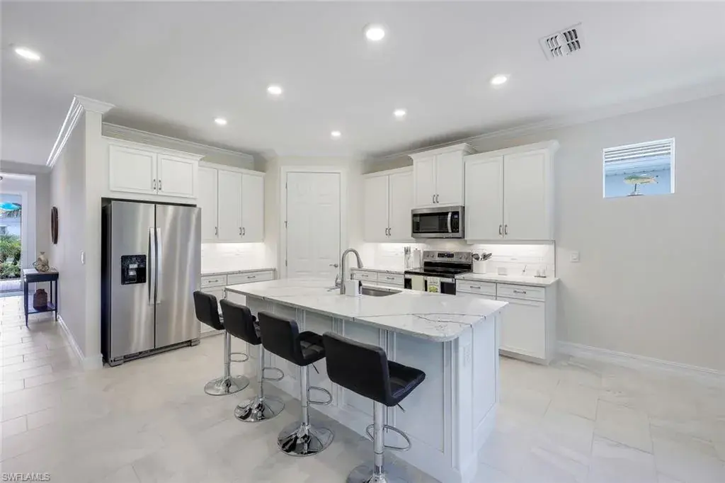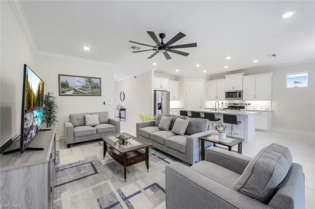 This beautify home is fully furnished that located in one of Naples’ rapidly growing areas. The property provides convenient access to a variety of amenities, including restaurants, upscale shops, and supermarkets. This Gated community is perfectly located between downtown Naples and Marco Island. Low HOA fees, with Community amenities which include clubhouse with social areas, game room, pool with lap lanes, bathrooms, fitness center, bocce and pickleball courts. Lot 72 is one of the quiet lot in the community. This 3 bedrooms DEN/OFFICE, 2 bath, 2 car garage and full of privacy! Kitchen features stainless steel appliance, upgrade 42″ soft-close cabinets, and a beautiful quartz countertop with a convent island and pantry. Spacious master bedroom, offers luxurious his and her walk-in closets, and a master bathroom with double sinks. This living room/dining room area opens up to a beautiful outdoor lanai. Don’t miss your chance to own this exceptional property in Tamarindo Community.