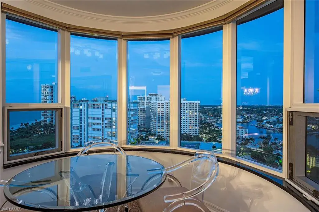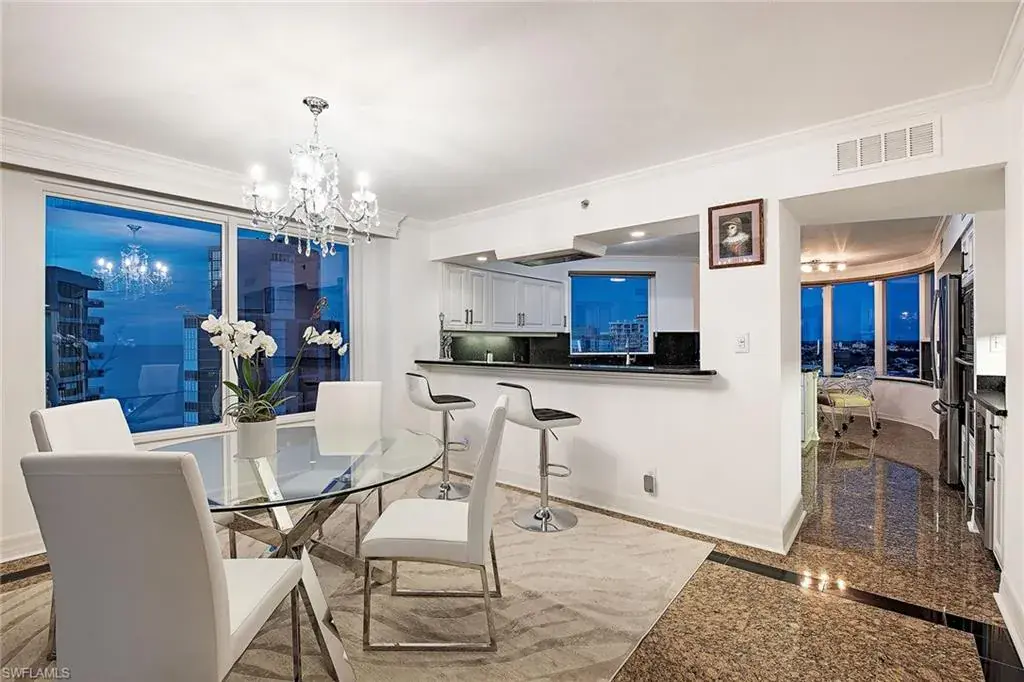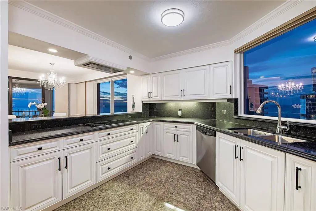 Life is better at the top! Azure Gulf blues and glamorous evening bay and city views highlight this renovated two-bedroom plus den 20th-floor residence. Sophisticated finishes, custom lighting and cabinetry along with rich granite flooring accent the soft, neutral white backgrounds. A spacious chef’s kitchen features expansive quartz countertops and stainless steel appliances surrounded by an abundance of windows bringing in the amazing outdoor setting of the “Park Shore lifestyle.” The primary bedroom includes a large custom walk-in closet, a luxurious bathroom with dual sinks and large soaking tub. The guest quarters enjoy beautiful views and have the added benefit of an en suite bathroom. Park Shore Tower’s stylishly renovated amenities include a fitness room, a resort-style pool with two Jacuzzis, a fire pit, a grilling area and elegant social room ideal for entertaining. 24-hour security and under-building parking add to the feeling of privacy. Perfectly located across from Venetian Village with world-class shopping, dining and a marina for boat and kayak rentals and docks for purchase or rent.