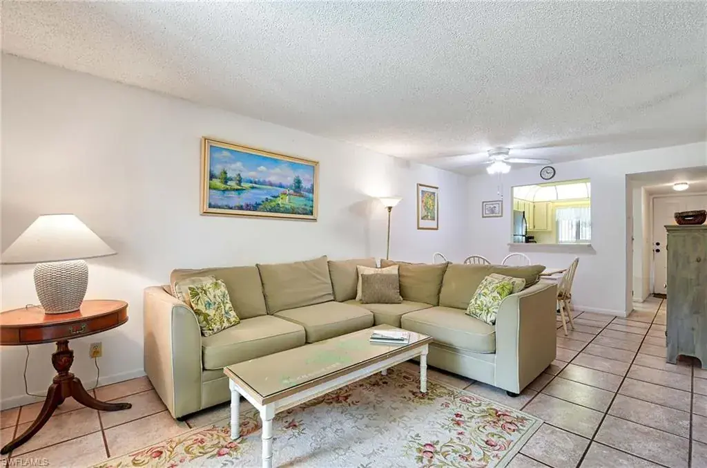 INVESTOR ALERT! Welcome to this charming first-floor, two-bedroom, two-bath condominium in a vibrant 55+ community in beautiful Naples, Florida.  This delightful home offers a perfect blend of comfort and active living, ideal for those looking to enjoy their golden years in paradise.  The open floor plan connects the living room to the dining area and a functional kitchen with a space-saving design featuring appliances and ample cabinet space.  The primary bedroom is a tranquil retreat featuring a walk-in closet and an en-suite bathroom with a walk-in shower and a large linen closet.  The second bedroom is cozy and functional, effectively serving its purpose.  It is perfect for guests or as a home office, with easy access to the second full bathroom.  A private screened lanai overlooking beautiful green space is just off the living room.  Residents of this lovely community have access to various amenities designed for an active lifestyle.  Enjoy a friendly game of tennis, bocce ball, or shuffleboard with your neighbors, or take a refreshing dip in the huge community pool.  The clubhouse is a social hub, offering various activities and events to keep you engaged and connected.  Located in the northeastern section of Naples, this condominium provides easy access to pristine beaches, world-class golf courses, and various dining and shopping options.  EXCITING NEWS! Abutting this property – coming soon, The Gate Golf Club Inc., will include a nine-hole course, driving range, short-game area, pro shop, event center and clubhouse with a 150-seat restaurant. This will be on County owned land with no impact on community residents’ fees. Embrace the Florida lifestyle in this exceptional 55+ community, where comfort, convenience, and recreation create the perfect home.