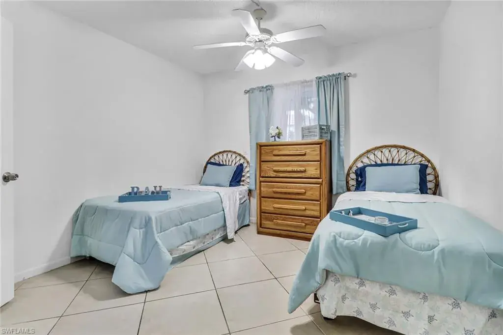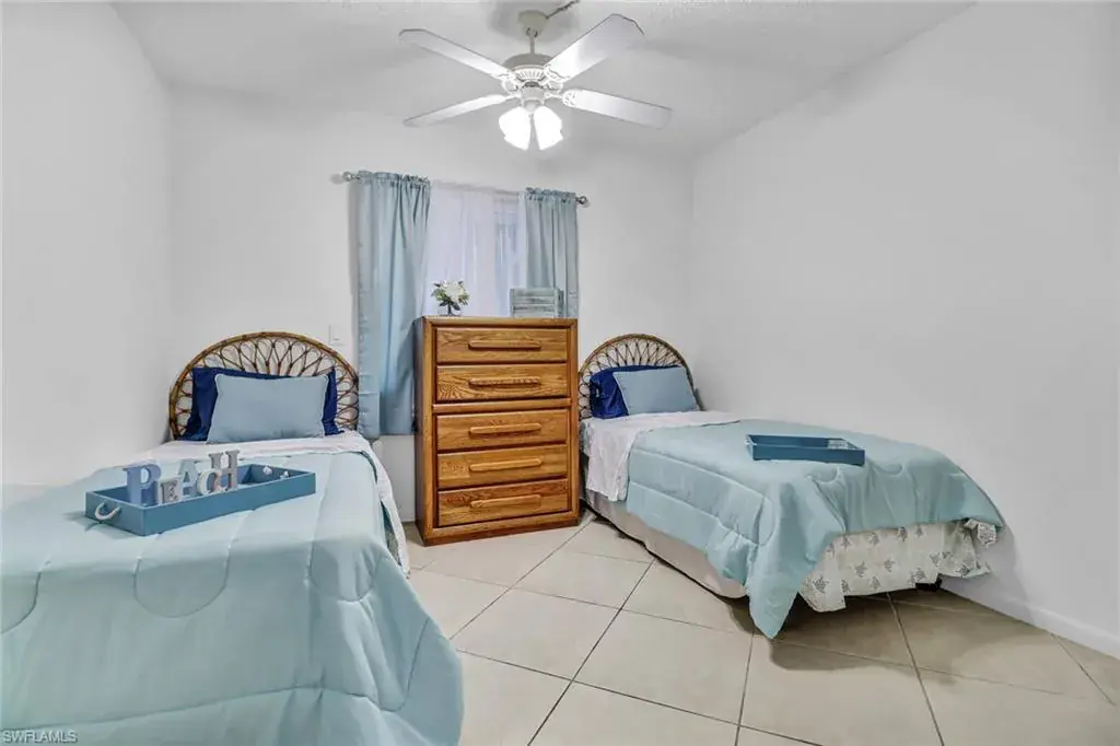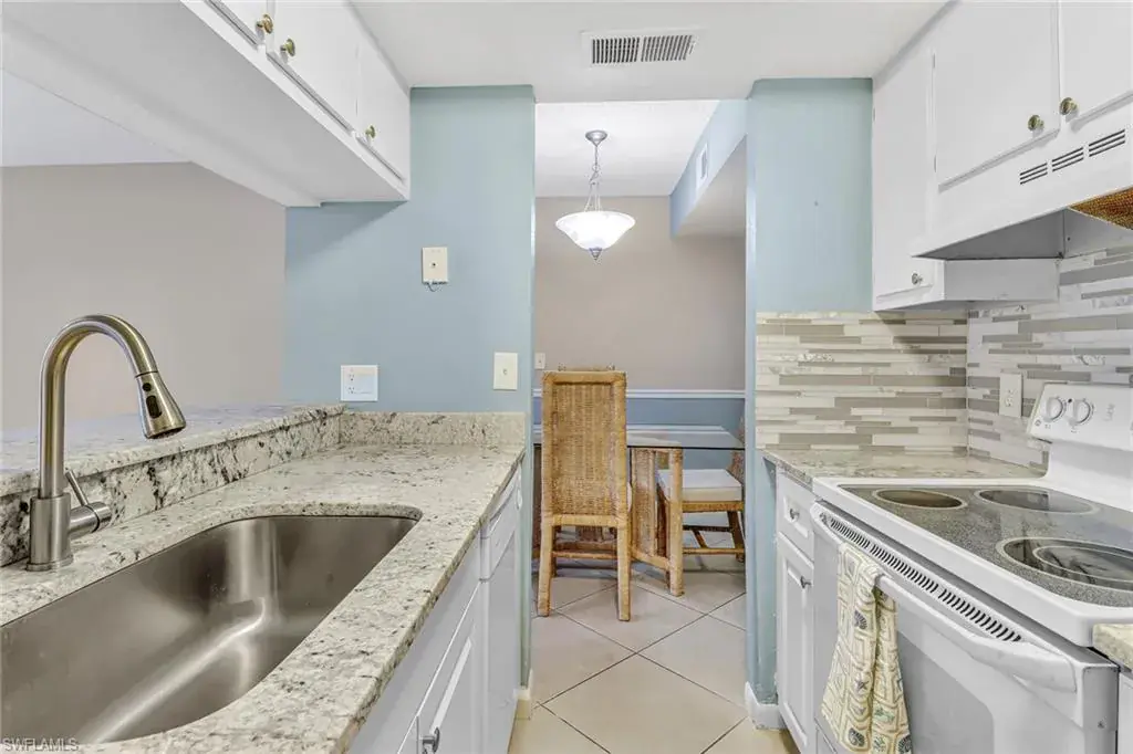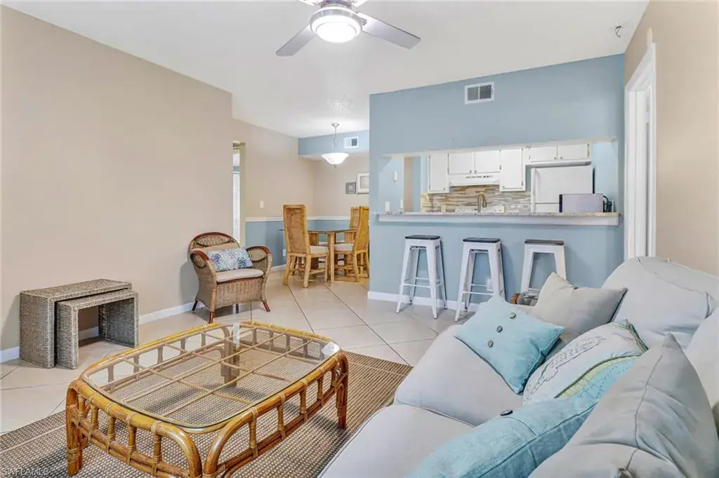 Welcome to this beautifully updated 2-bedroom, 2-bathroom first-floor end unit located in The Fairways at Par 2, a sought-after 55+ community surrounded by the upcoming, state-of-the-art “The Gate Golf Club” redevelopment. This unit features all-new tile flooring, ceiling fans, and paint throughout. The modern kitchen boasts new granite countertops, an extended bar seating 3-4, and a custom tray ceiling with a nickel finish flush mount light. Both bathrooms are upgraded with new vanity light fixtures and decorative mirrors. Enjoy peace of mind with motorized hurricane shutters and impact-resistant windows. The spacious layout includes separate living and dining areas, with a large walk-in closet in the master bedroom.  The community offers a scenic circular drive, a clubhouse, a resort-style pool, shuffleboard, pickleball, tennis, bocce, a serene lake with a fountain, and many community social events. The surrounding county-owned land will be transformed into a public golf course costing more than $21 million, expected to open in fall 2025. Enjoy golf course living without the typical fees. This like-new unit, coupled with the neighborhood’s future plans, offers unmatched value in Naples. Don’t miss out on this rare opportunity to own a move-in-ready unit in a dynamic and evolving community, perfect for immediate occupancy or leasing.