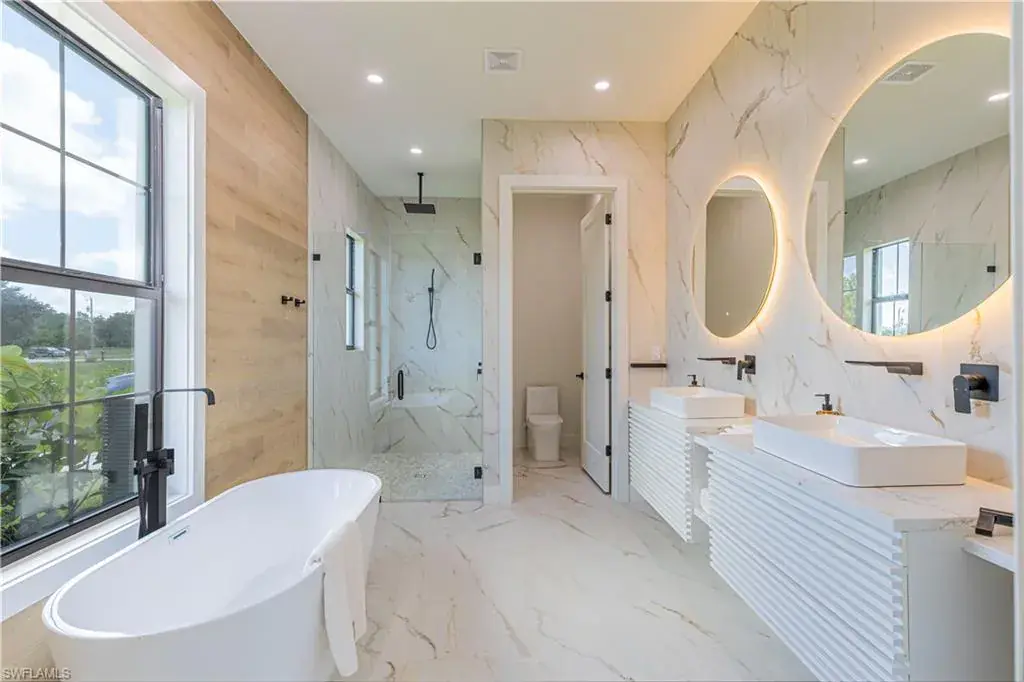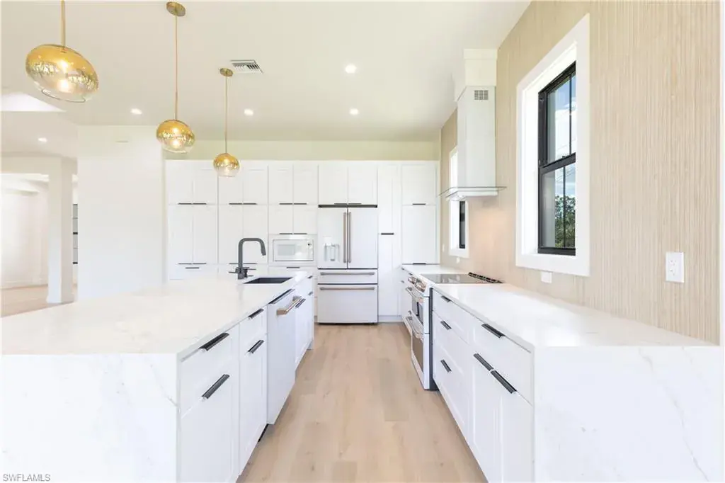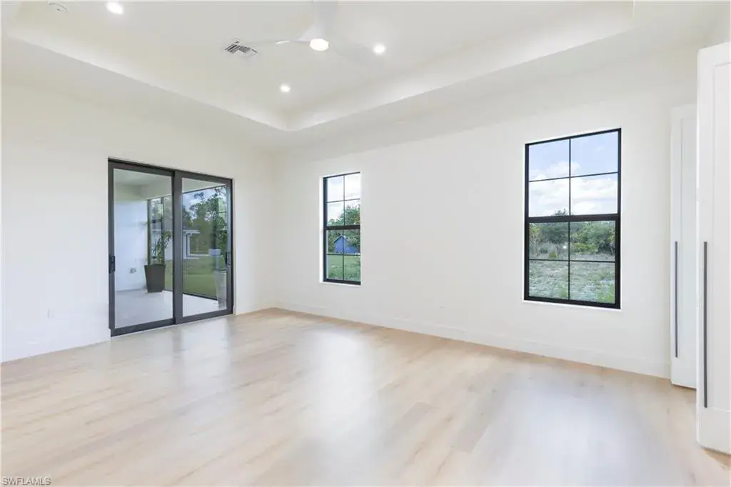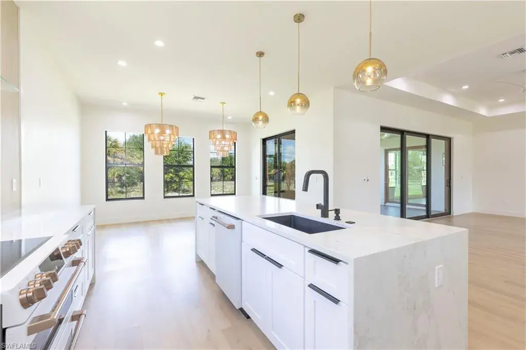 A unique New Construction Home on 2.6 acres of dry land and easy access awaits you in Naples. This sleek, contemporary, layback, open floor plan was designed with family living in mind, with its spacious living/dining/kitchen area filled with abundant natural light that opens to the screened patio is perfect for enjoying our beautiful Florida evenings. The Home features 3 bedrooms, 3 bathrooms, and a den within a spacious 2,400+ square-foot split layout with exquisite custom-designed finishes. It also has a 2-car garage, lots of closet space, custom cabinets with a sink in the laundry room, a lovely, easy-to-care landscape, and plenty of space to add a pool and build your dream warehouse or a guest apartment for your family. The Kitchen is equipped with top-of-the-line appliances, quartz countertops, and custom cabinetry. If you enjoy cooking, this is your happy playground. The Main Bedroom is airy and spacious with her/his walk-in closets, a built-in desk/vanity and a spa-like ensuite bathroom with a free-standing soaking tub, a walk-in shower and an enclosed commode. This desirable area offers privacy yet is close to shops, restaurants, schools, and the new Collier County Park, Recreation, and Aquatic Center. It is a short 25-minute/15-mile drive to the beautiful Naples Beach Delnor-Wiggins Pass State Park. Don’t miss this opportunity to own a piece of paradise.