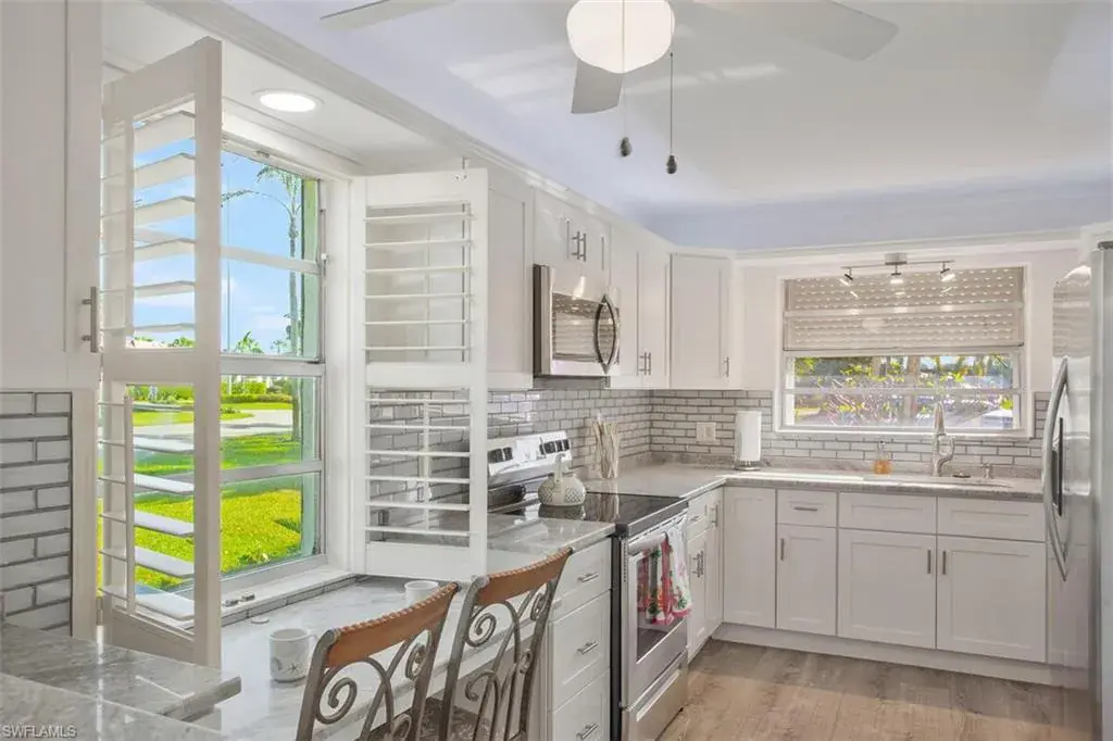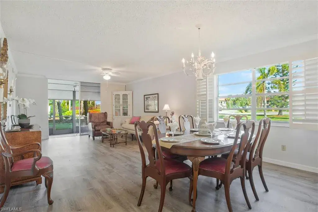 hr1 112 Rarely available largest floor plan end unit first floor. Plenty of room for all your things. No stairs to climb, short walk to pool and clubhouse. Two bed two bath furnished. Interior decorative shutters, all LV floors, main bedroom has carpet. Gorgeous New Kitchen, with luxury tile, walk in shower in main bedroom and tub shower combo in second bedroom. Located in a beautiful 55+ lushly landscaped community on a private circular road. An active and friendly group of people make it easy to join in and meet new friends. Large heated pool, pickleball, bocce, tennis and more. Get down and dirty and join the garden club. Or join yoga class, workout class, water exercise and more. Dinners, dances, happy hours, holiday events, bingo, movie nights, hot dog days, grill nights. Stay as busy and active as you wish. Close to shopping, dining, banking, medical. Soon to be surrounded by a 12 hole Jack Nicklas golf course and a Big Shots (a gold entertainment company) Everything you need or want is close by. Nine miles to world famous 5 Ave S with high end shopping and dining. 30 minutes to airport and minutes off 1-75. 9 miles to Naples Pier and one of many public beaches.