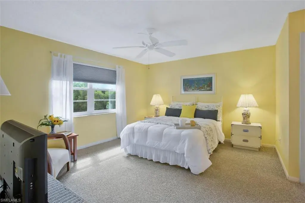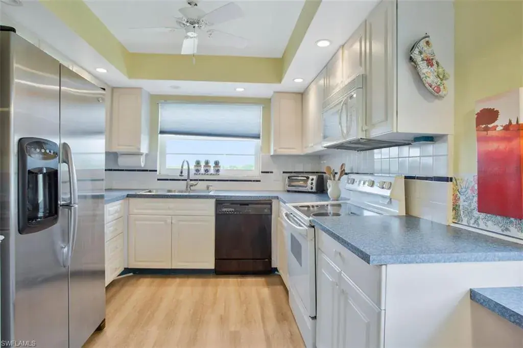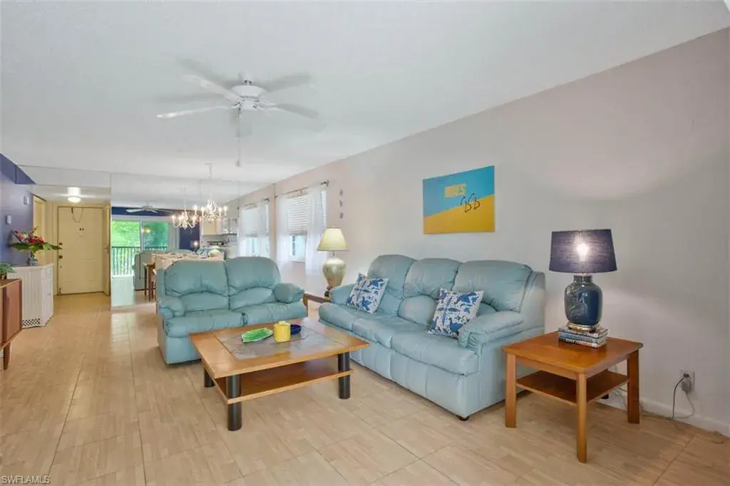 Discover this charming 2/2 condo retreat that combines comfort, style and a touch of nature’s beauty. Nestled on the top floor (4th), this end unit gem offers unparalleled privacy and a stunning view of a large lilac tree from the screened lanai-your perfect spot for morning coffee or evening relaxation. Step inside to find easy-care flooring that complements the inviting ambiance of the open living spaces. The spacious bedrooms are thoughtfully designed with carpet for added comfort. Hurricane windows provide peace of mind and keep the home quiet and serene, no matter what the weather. Additional highlights include an elevator for effortless access and there is also external storage. Parking for two cars and guest space. One small pet is allowed with approval. But it is not just the condo that makes this home special-it’s the incredible community, people and amenities! Walk to a heated pool and vibrant clubhouse where you can participate in a wide range of activities, including holiday dinners, dances, card games, pickleball, tennis, bocce, bingo, movies, yoga class, pool exercise, and more. Coming soon a County owned 9 hole golf course will surround this complex. Only pay if you play and County residents will pay a discounted rate. Come and join this fun loving, easy going, friendly community. You’ll be glad you did.