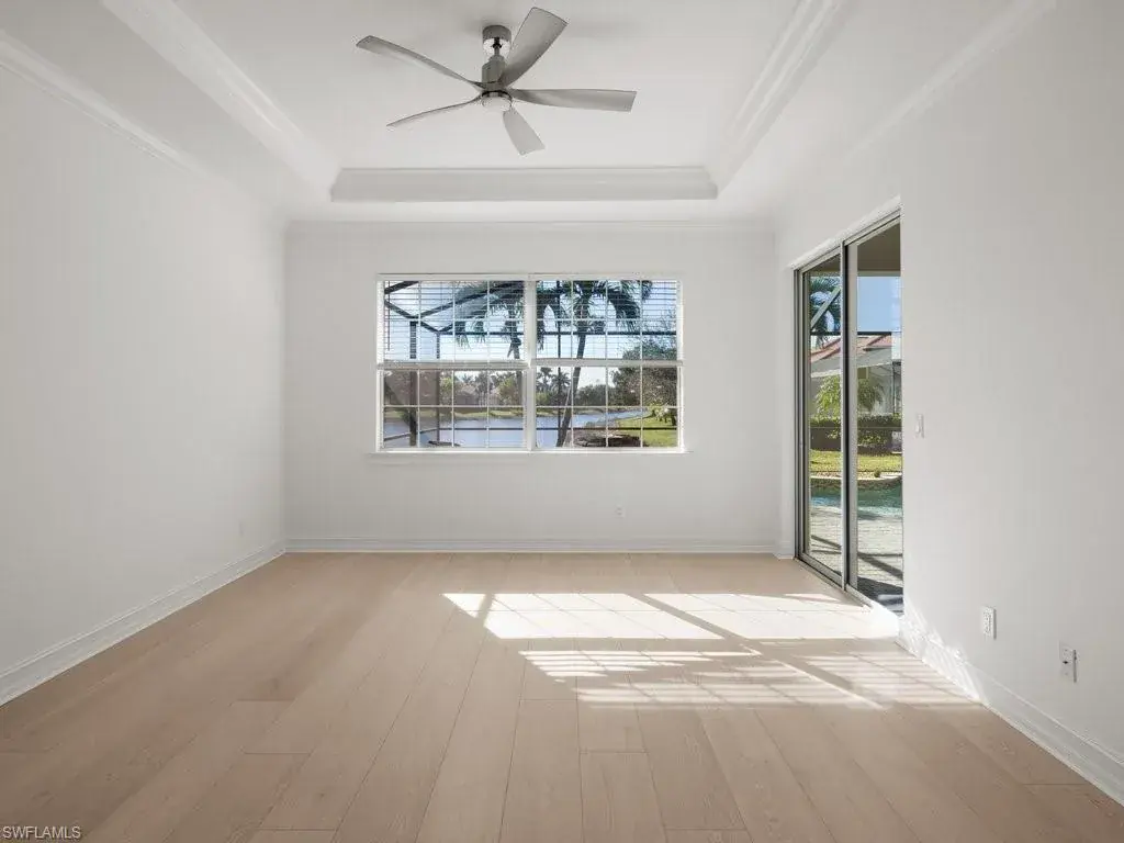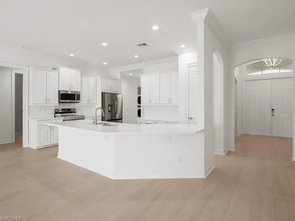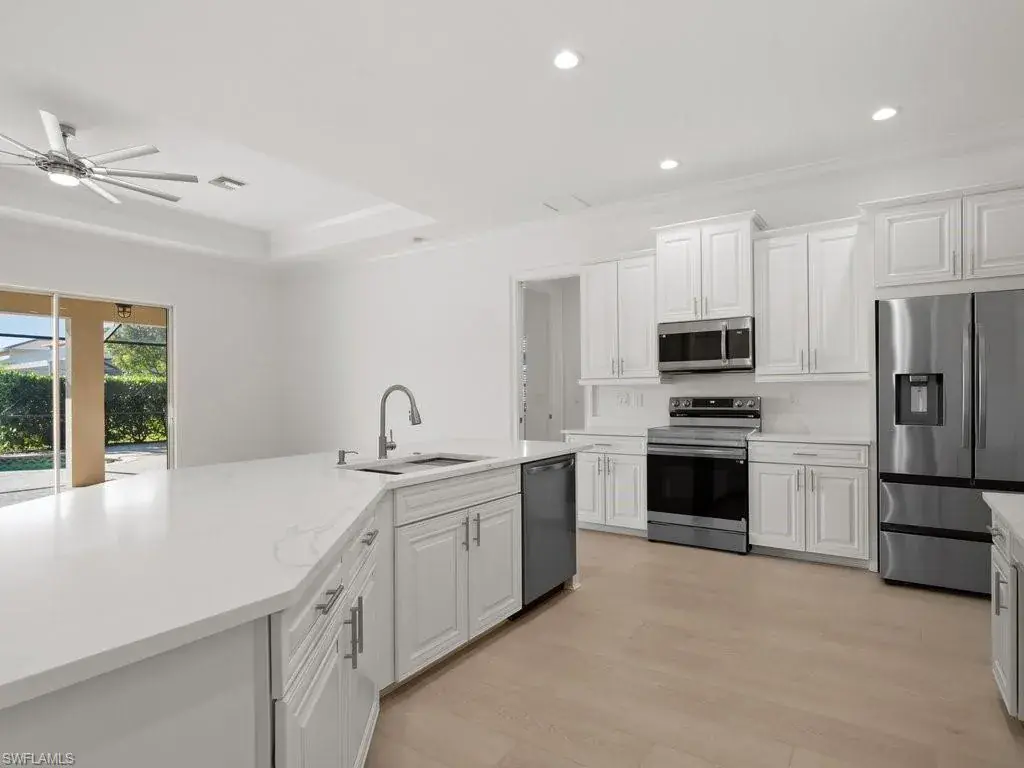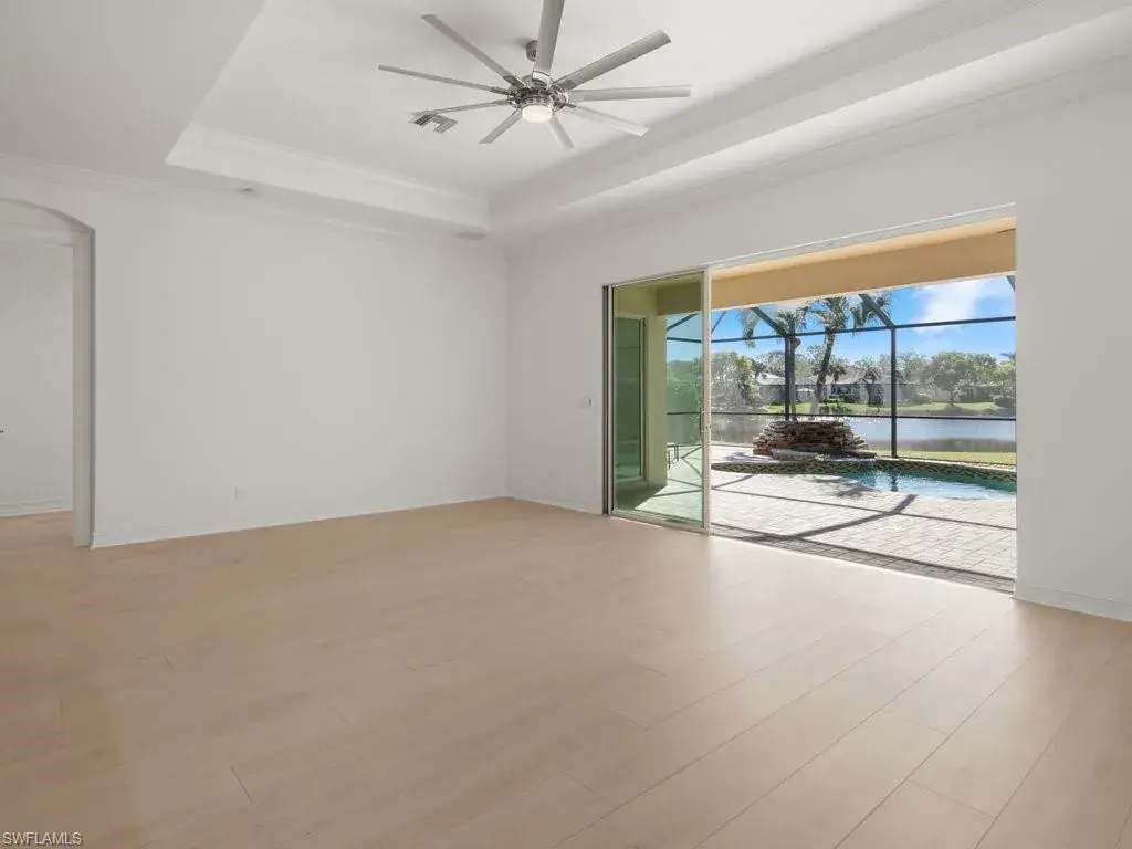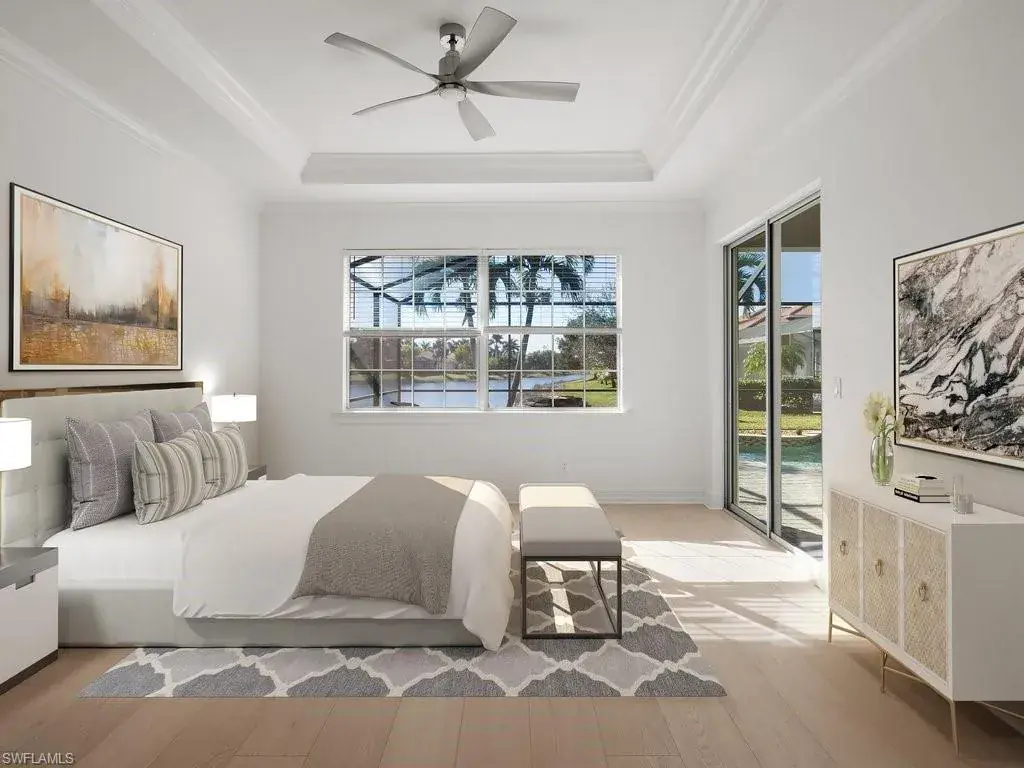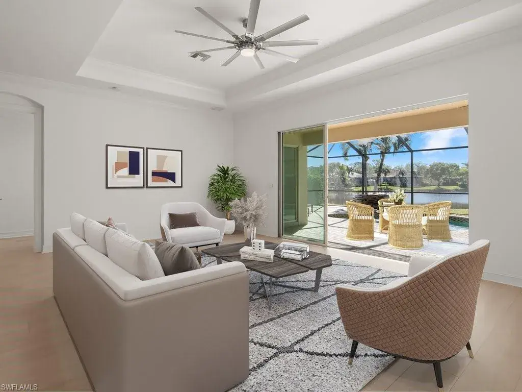A RARE FIND,in North Naples, an UPDATED 4 BR, 3 BATHROOM AND 3 CAR GARAGE, Located on a prime lakefront lot with an unobstructed water view. The floor plan is split bedrooms with crown molding throughout and tray ceiling in living room and primary bedroom. The primary-bathroom has a toilet closet, two vanities, and a separate tub and shower. The large open Kitchen has quartz counters, SS appliances, and large breakfast bar for 6. The ceilings are 9′ with 8′ doors throughout. The extended screened patio with SOUTHERN Exposure has a large covered and uncovered area offering plenty of space for outdoor cooking, dining, and enjoying Florida sunshine. The pool has a rock waterfall and paver deck. Horse Creek Estates is located close to A rated schools and Highway 41, Mercato, Vanderbilt Beach, and many shops and fine-dining restaurants. Also is located in FEMA zone X-500 which is not in a Special Fl Hazard Area. Low HOA Fees.
