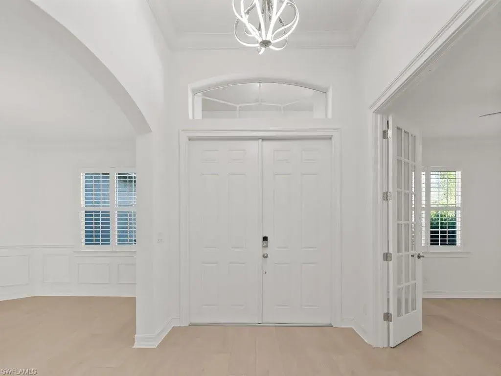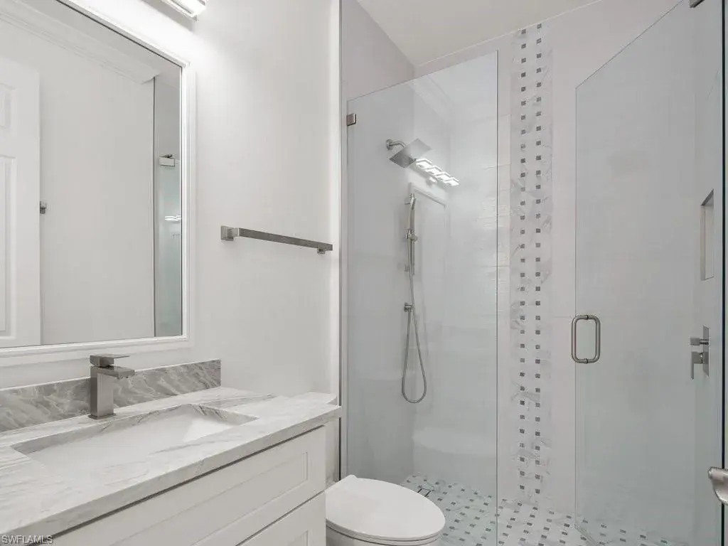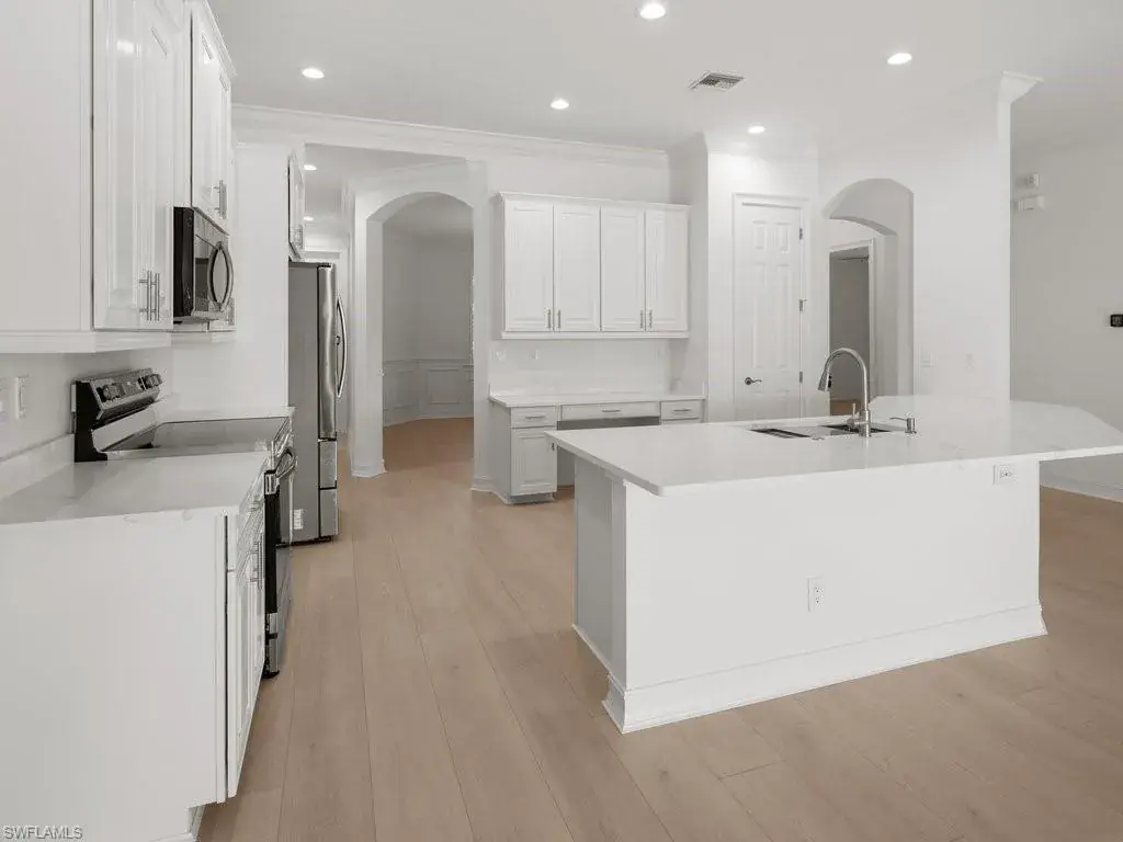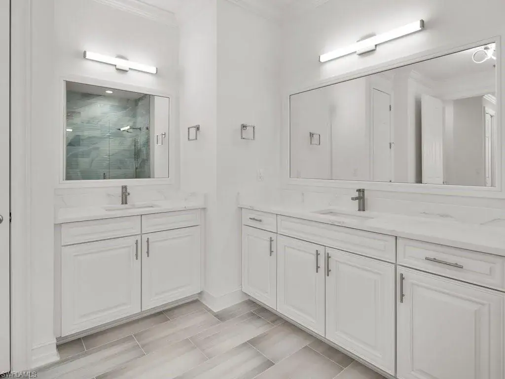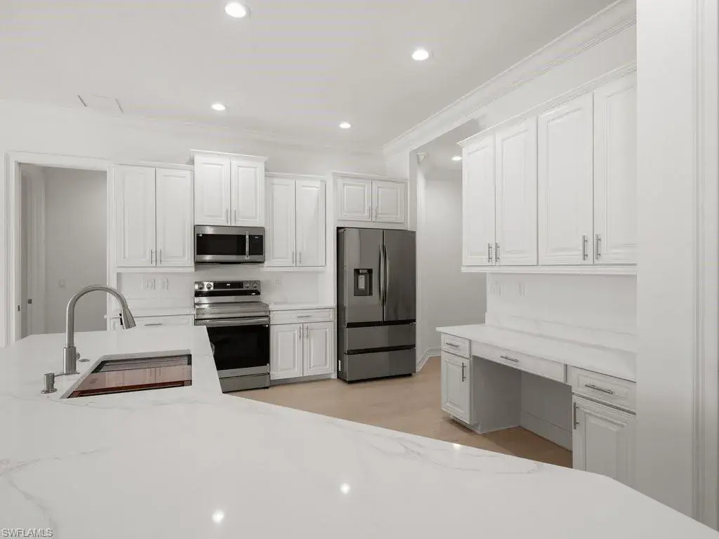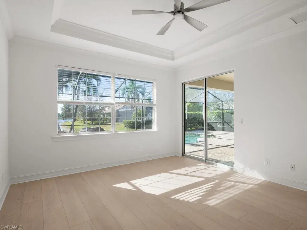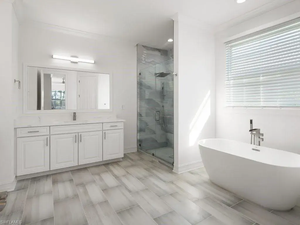 A RARE FIND,in North Naples, an UPDATED 4 BR, 3 BATHROOM AND 3 CAR GARAGE, Located on a prime lakefront lot with an unobstructed water view. The floor plan is split bedrooms with crown molding throughout and tray ceiling in living room and primary bedroom. The primary-bathroom has a toilet closet, two vanities, and a separate tub and shower. The large open Kitchen has quartz counters, SS appliances, and large breakfast bar for 6. The ceilings are 9′ with 8′ doors throughout. The extended screened patio with SOUTHERN Exposure has a large covered and uncovered area offering plenty of space for outdoor cooking, dining, and enjoying Florida sunshine. The pool has a rock waterfall and paver deck. Horse Creek Estates is located close to A rated schools and Highway 41, Mercato, Vanderbilt Beach, and many shops and fine-dining restaurants. Also is located in FEMA zone X-500 which is not in a Special Fl Hazard Area. Low HOA Fees.