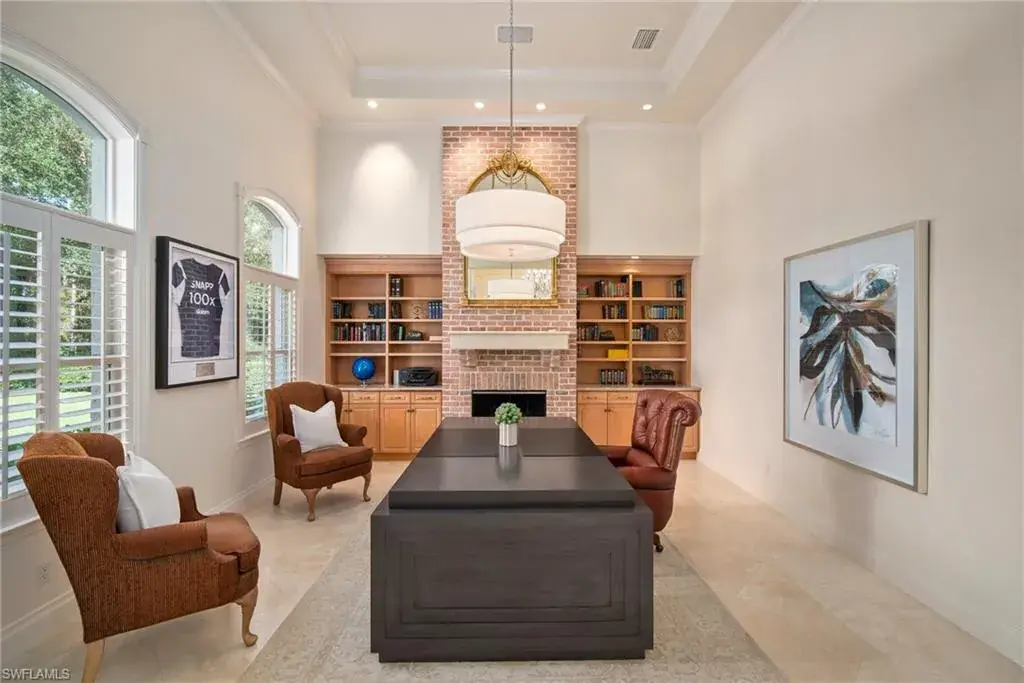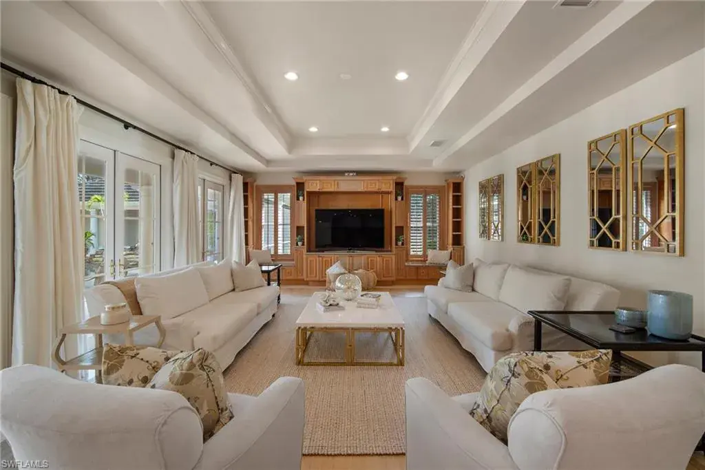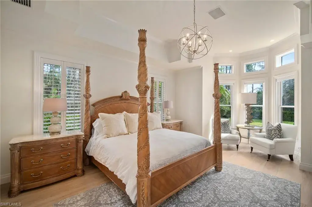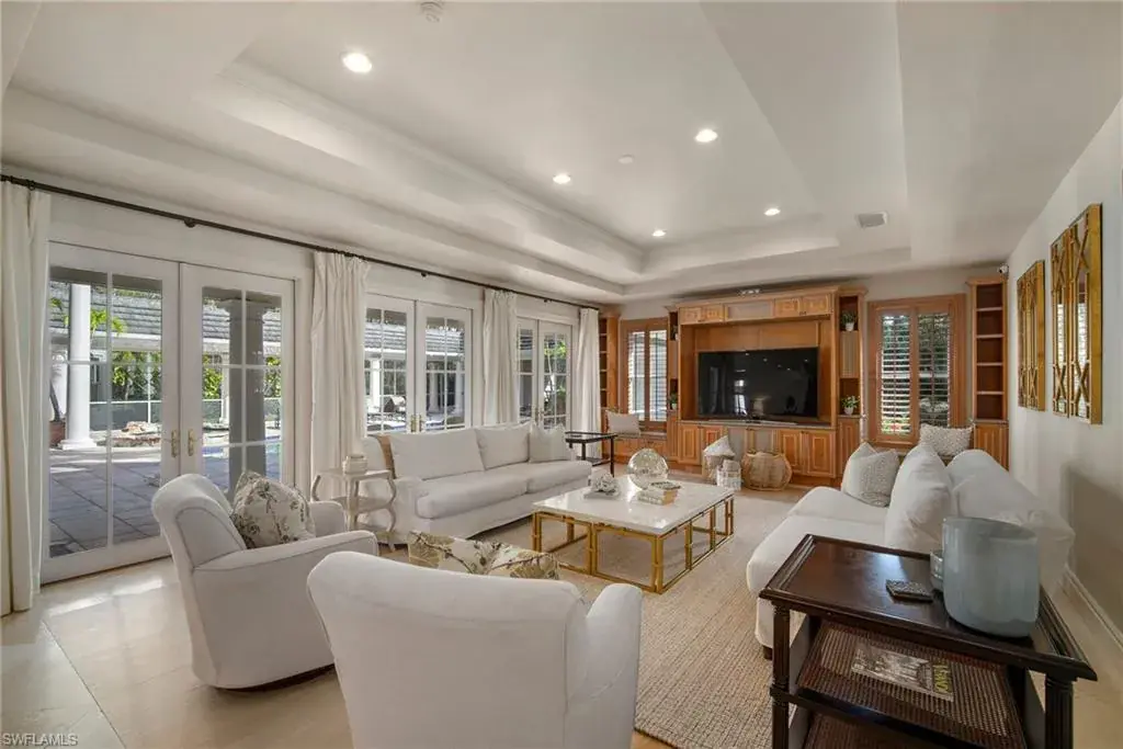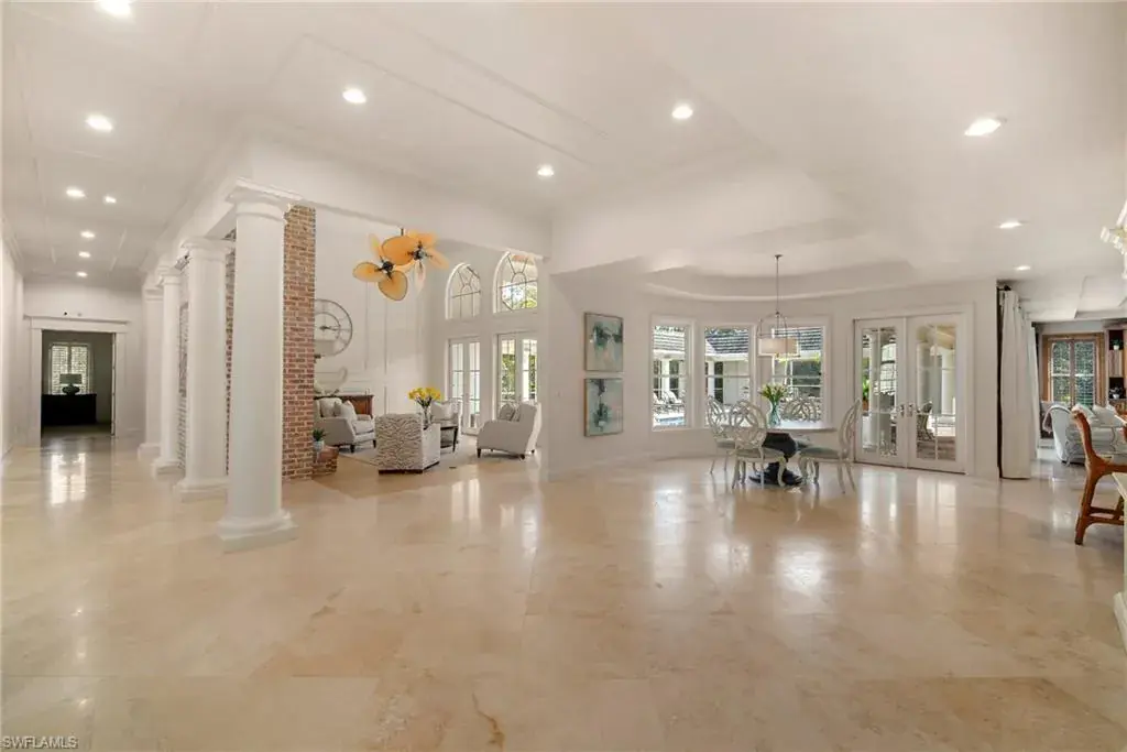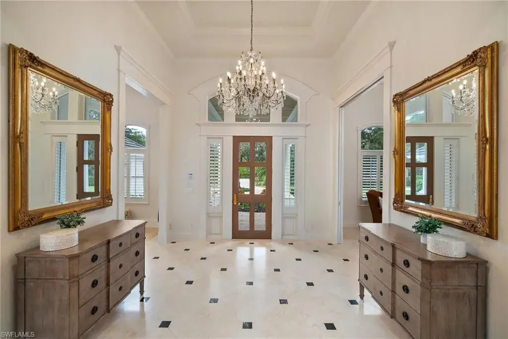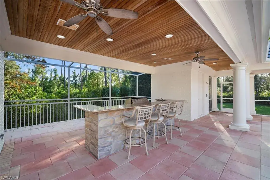 Classic Luxury meets a beautiful location and privacy! Nestled in the prestigious gated community of Naples Club Estates, adjacent to Naples National Golf Club, with only 28 private 3/4 acre homesites! This unique neighborhood is situated around man made lakes and walking paths. A classic meticulously maintained home with soaring ceilings, travertine marble, wood look tile floors, beautiful chandeliers and plantation shutters! In addition, the 4 spacious bedrooms all have full private baths, an oversized den with fireplace, living room with fireplace, dining room with fireplace, large family room and 3 half baths to include a pool bath! With over 5300 Sq Ft. there is plenty of space to entertain all of your family and friends. The open floor plan allows owners and guests to appreciate the extraordinary view throughout the living room, family room, kitchen, breakfast nook, primary bedroom and of course the lanai!! Enjoy very minute of the spectacular oversized landscaped yard and lanai with custom pool and spa! Naples Club Estates offers exclusive private gate access to the award winning Naples National Golf Club, where memberships are optional. Perfectly located only 15 minutes to downtown 5th Ave Naples and 25 minutes to the beautiful Marco Island. This IS where you want to live!
