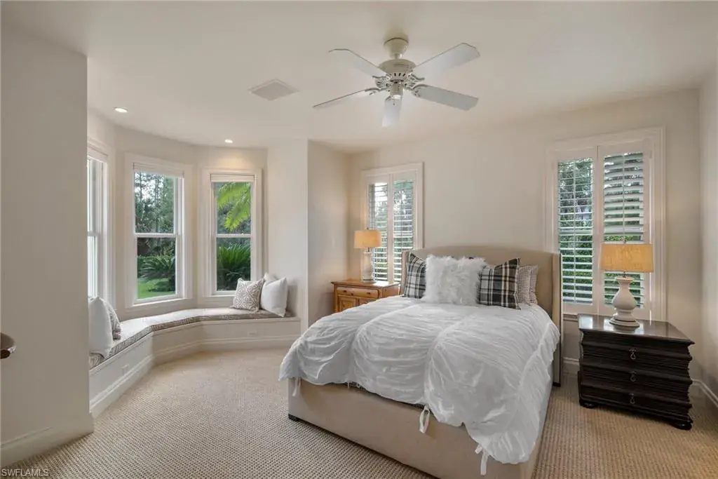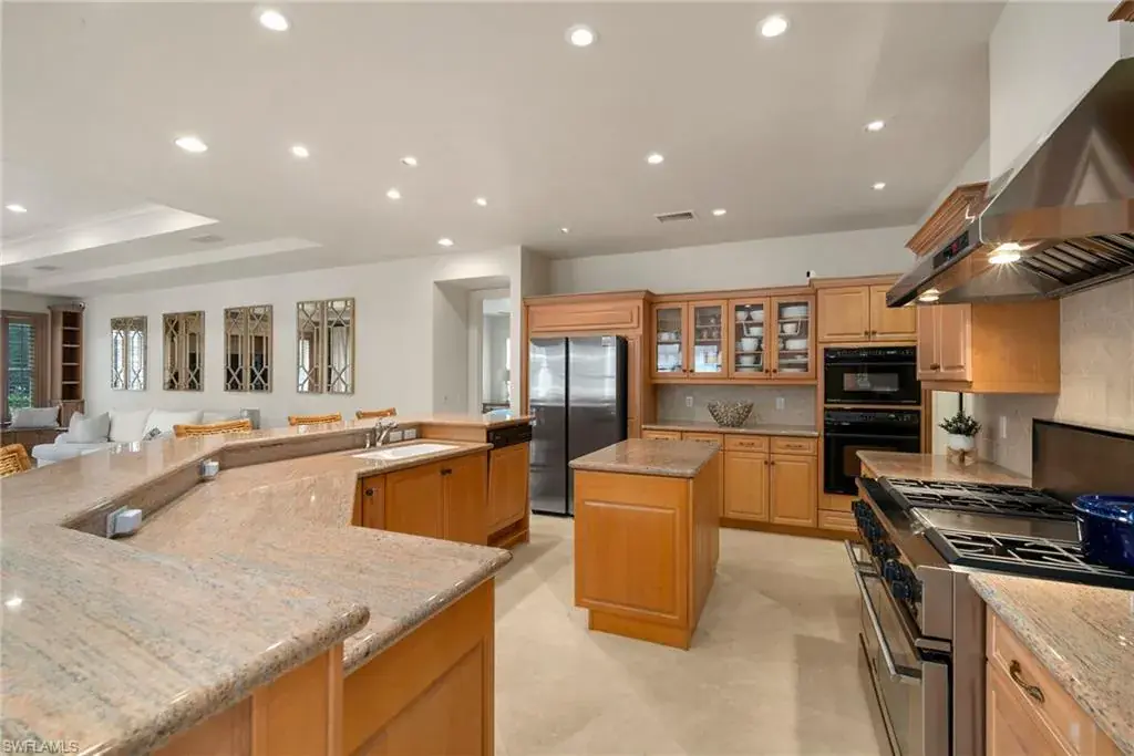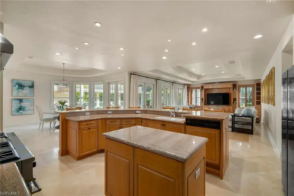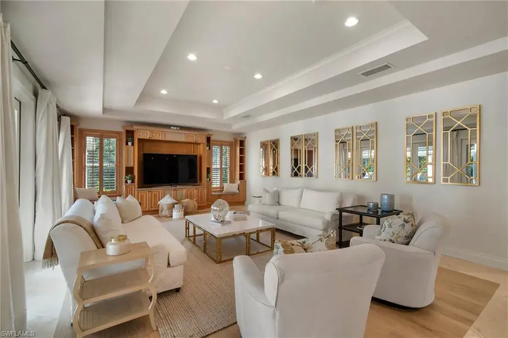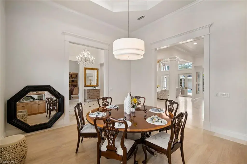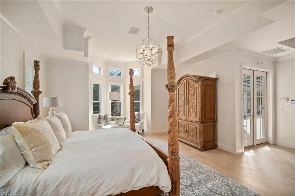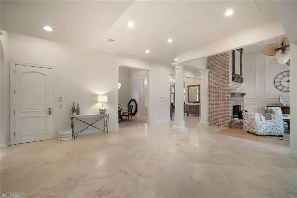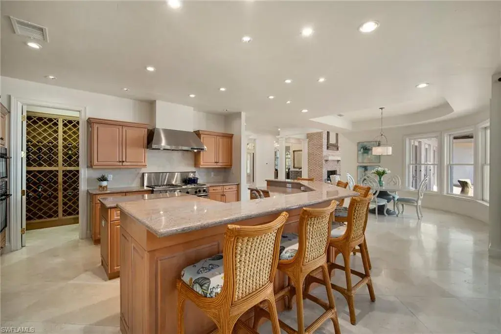 Classic Luxury meets a beautiful location and privacy! Nestled in the prestigious gated community of Naples Club Estates, adjacent to Naples National Golf Club, with only 28 private 3/4 acre homesites! This unique neighborhood is situated around man made lakes and walking paths. A classic meticulously maintained home with soaring ceilings, travertine marble, wood look tile floors, beautiful chandeliers and plantation shutters! In addition, the 4 spacious bedrooms all have full private baths, an oversized den with fireplace, living room with fireplace, dining room with fireplace, large family room and 3 half baths to include a pool bath! With over 5300 Sq Ft. there is plenty of space to entertain all of your family and friends. The open floor plan allows owners and guests to appreciate the extraordinary view throughout the living room, family room, kitchen, breakfast nook, primary bedroom and of course the lanai!! Enjoy very minute of the spectacular oversized landscaped yard and lanai with custom pool and spa! Naples Club Estates offers exclusive private gate access to the award winning Naples National Golf Club, where memberships are optional. Perfectly located only 15 minutes to downtown 5th Ave Naples and 25 minutes to the beautiful Marco Island. This IS where you want to live!